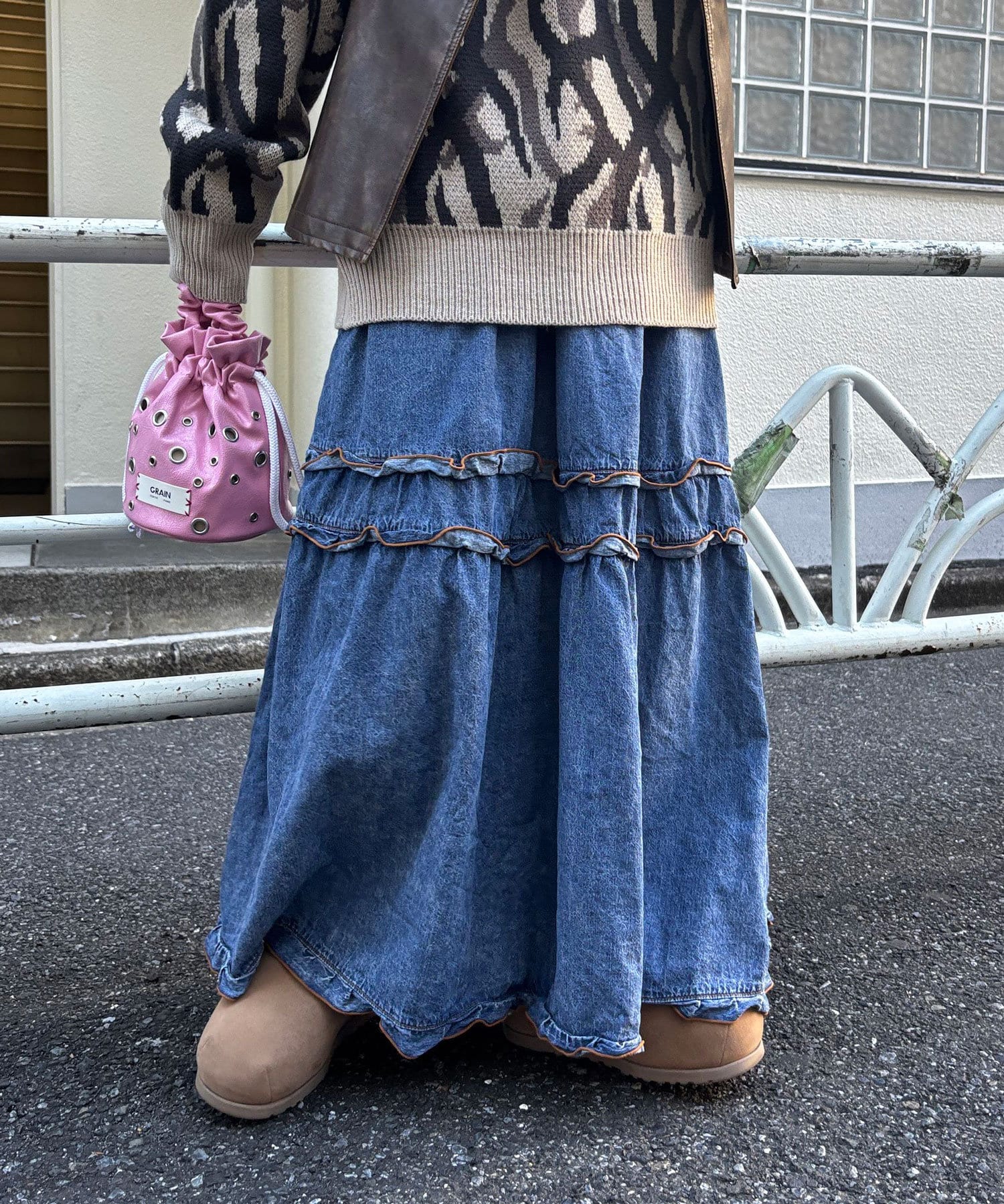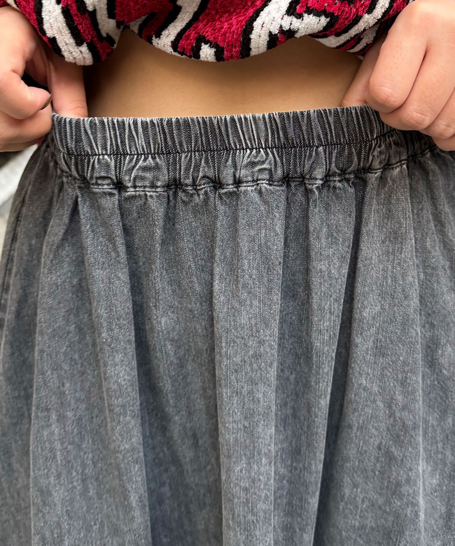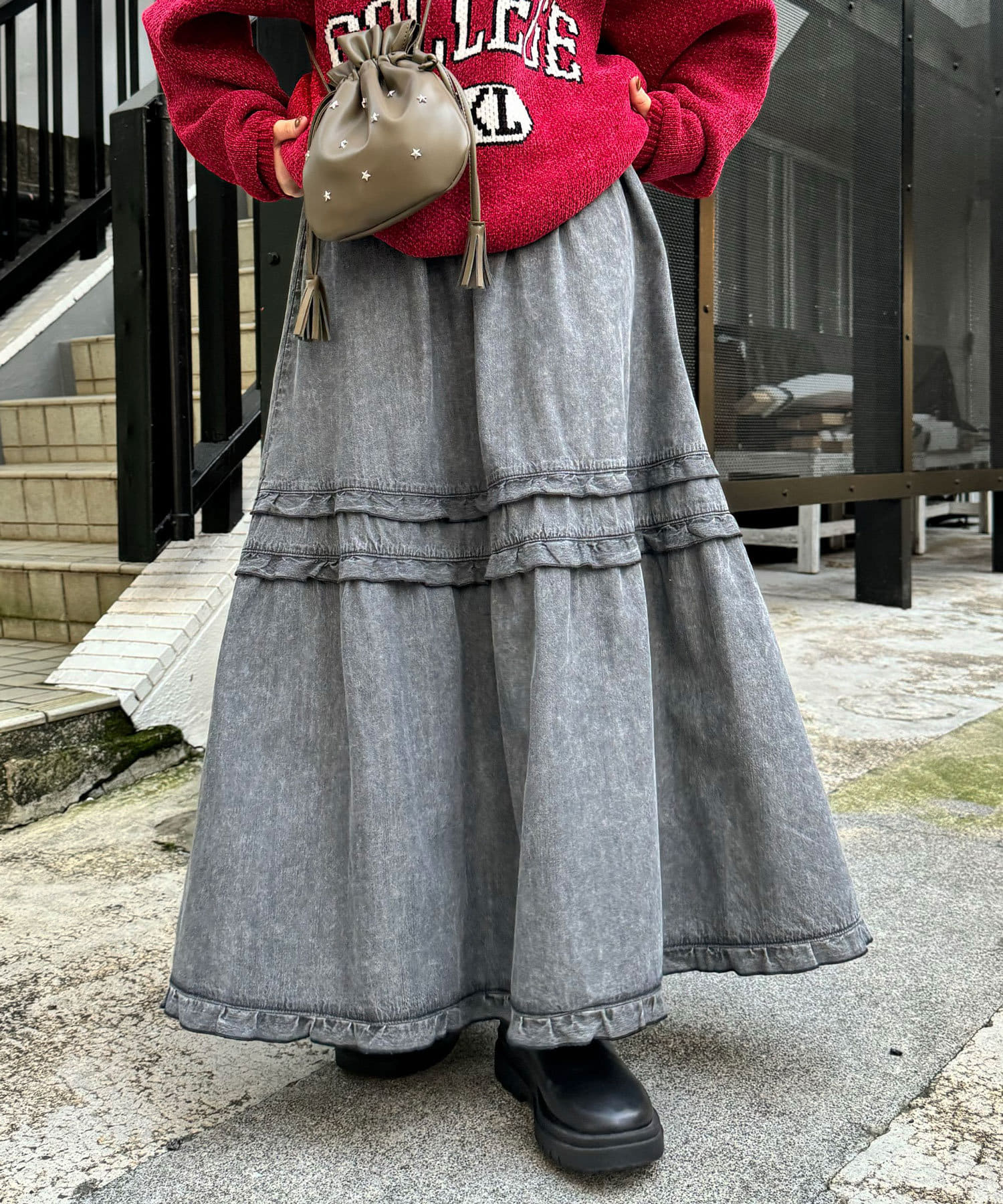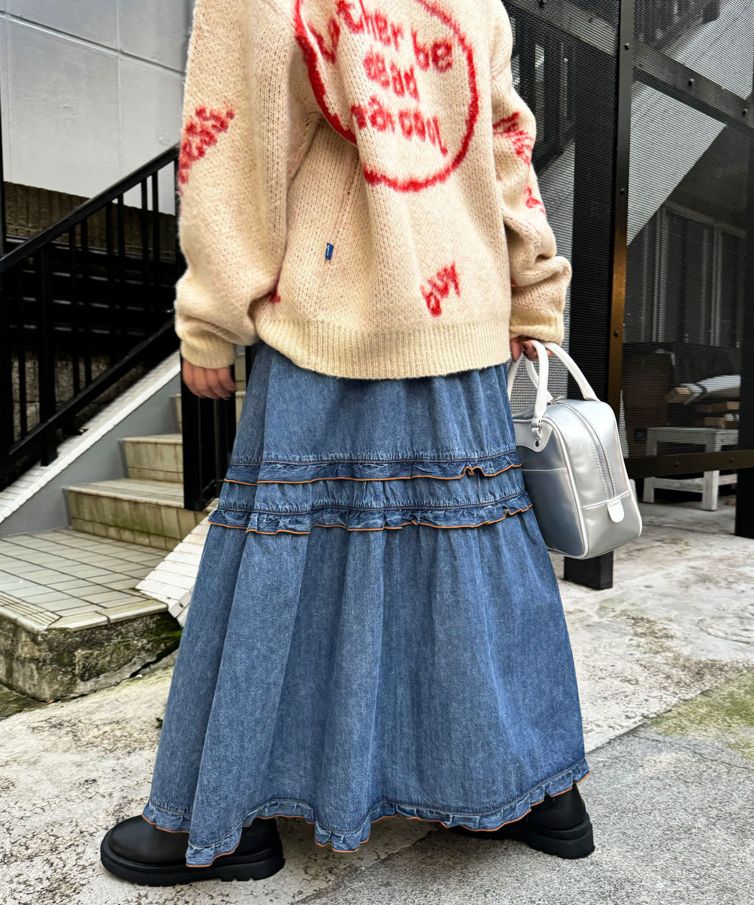 ビンテージライク加工デニムティアードスカート