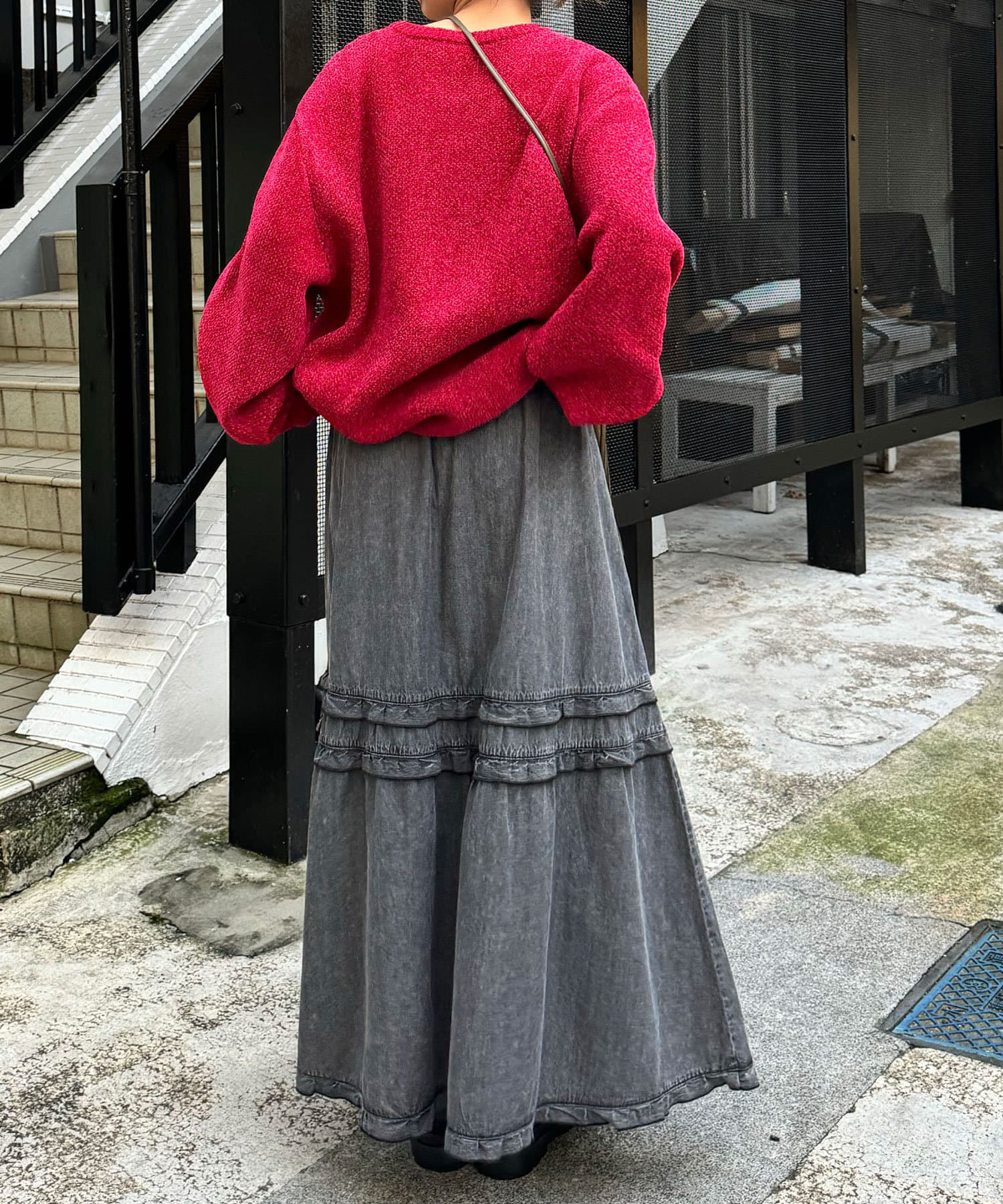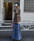 ヴィンテージ感たっぷりの加工デニムを使用したティアードスカート。
