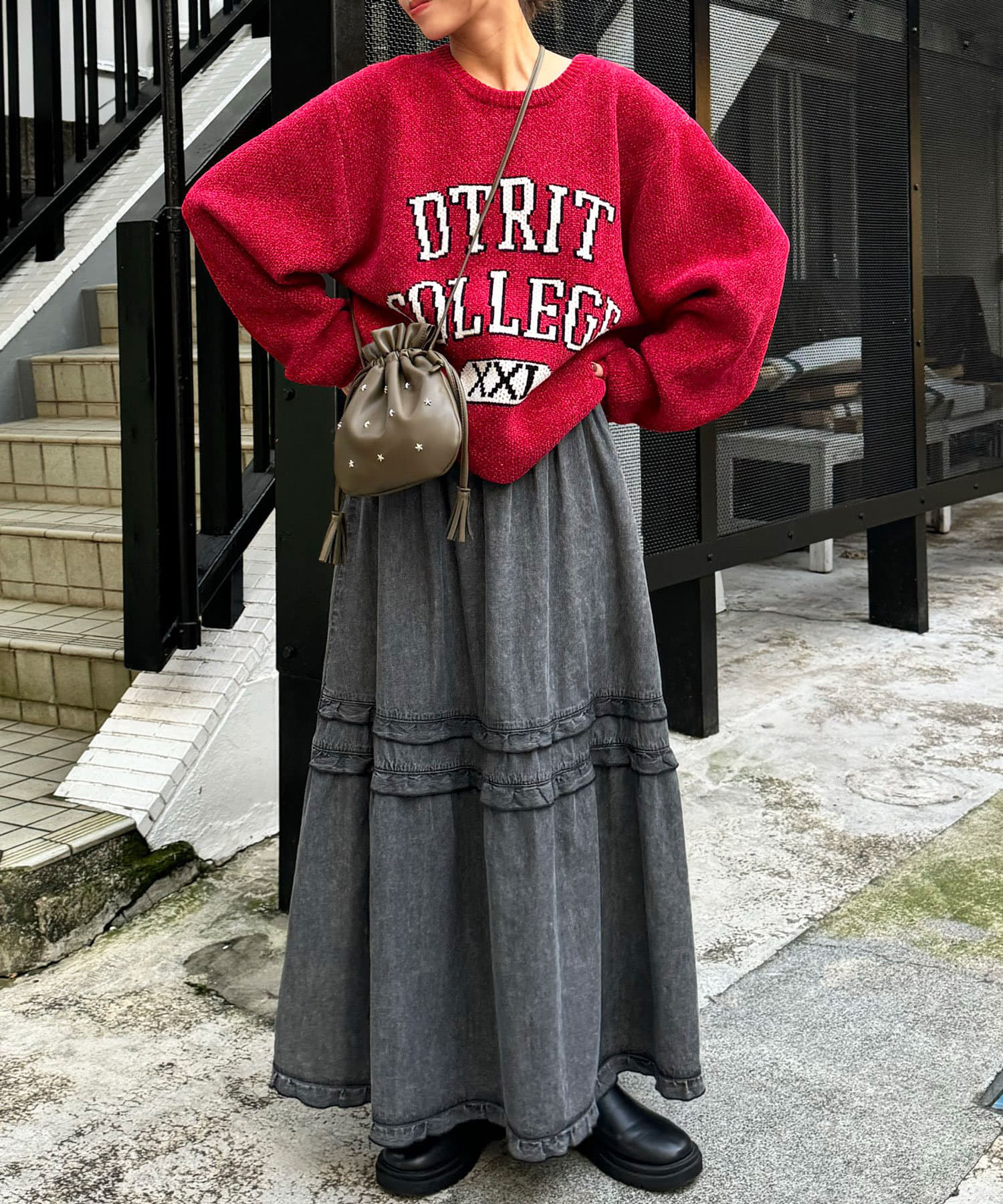オーバーサイズのニットやスウェットを組み合わせたずるっとしたスタイリングが◎
