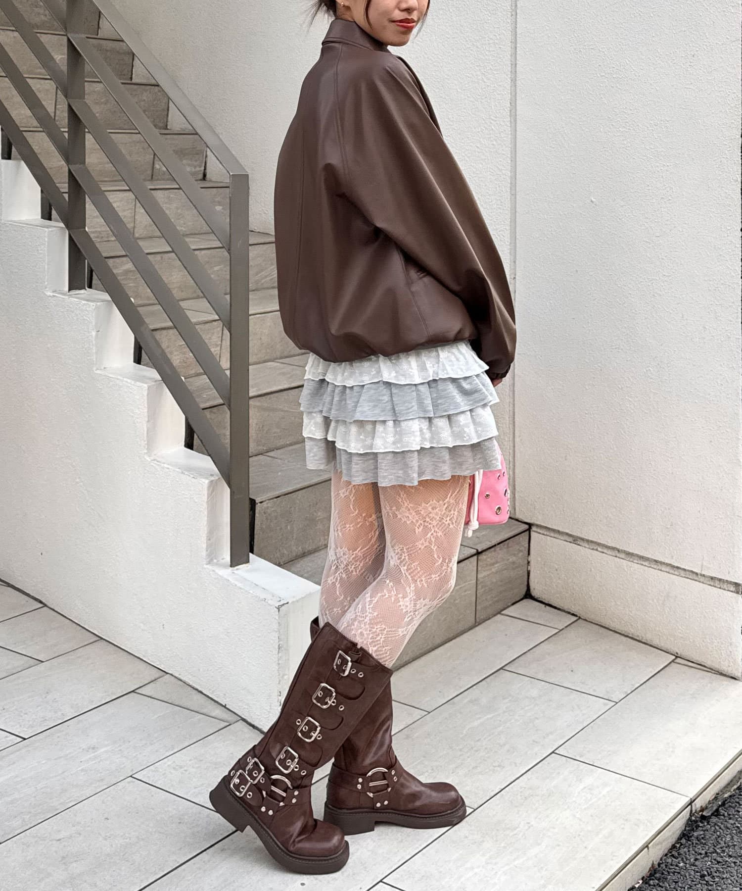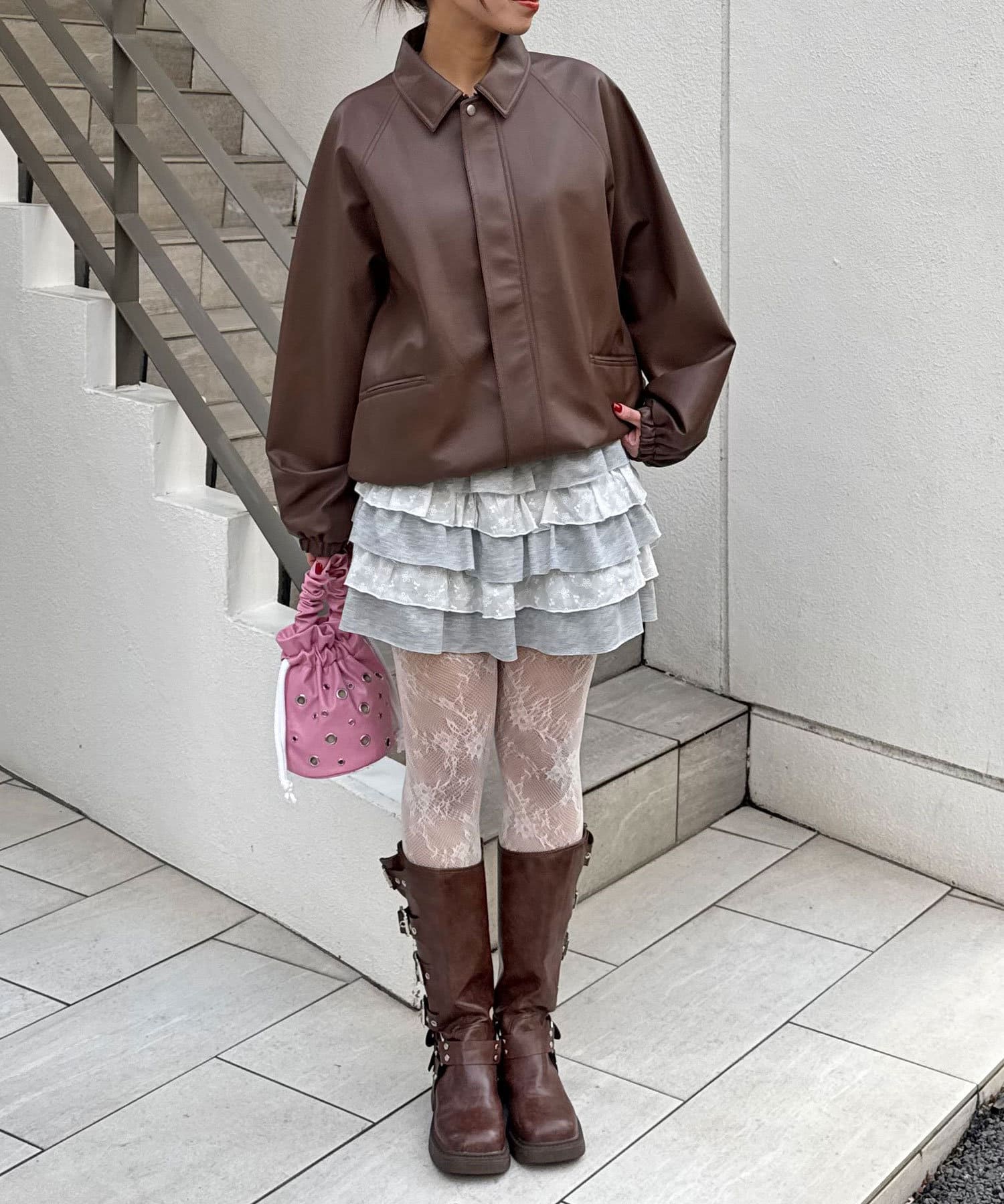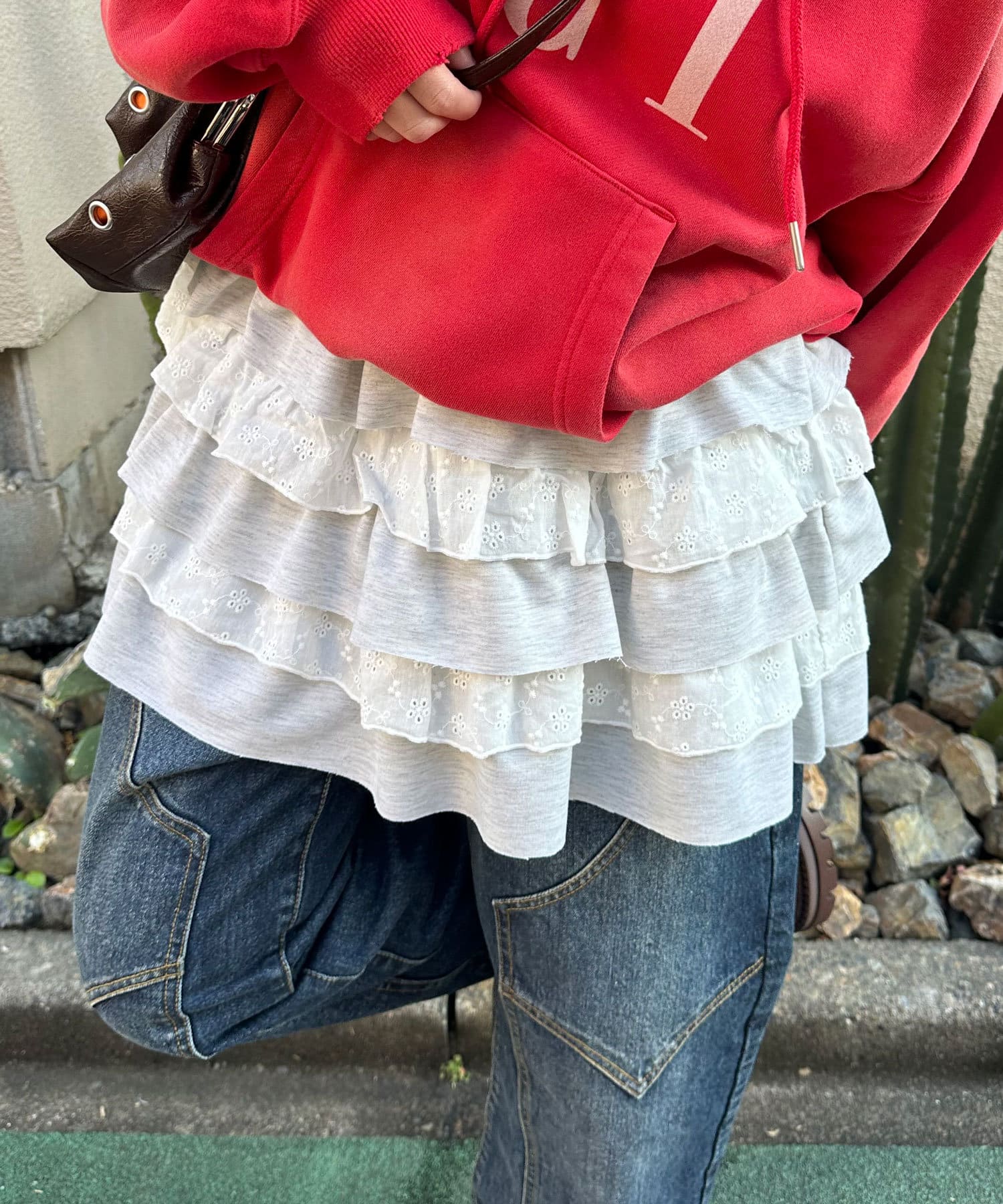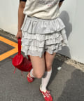 ティアードデザインが動くたびに揺れて、立体感のあるシルエットを作り出し、カットフリルがアクセントになって、さらに可愛さをアップ。