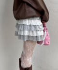 軽やかでかわいらしさ満点のフリルレースティアードミニスカート。