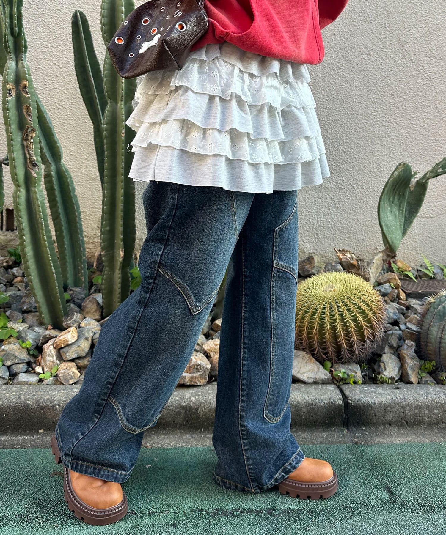 トレンド感のある短丈のアイテムとも相性抜群◎