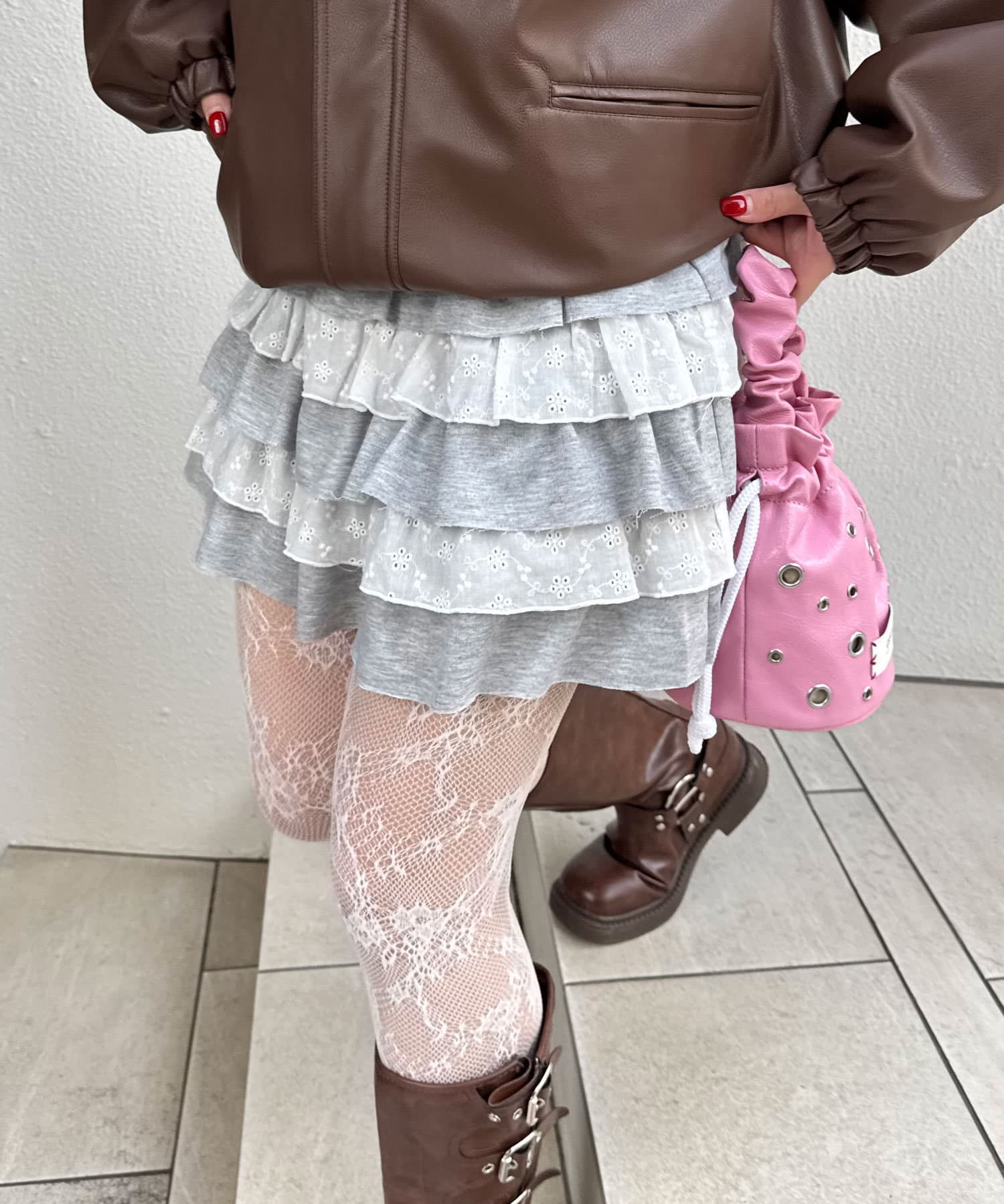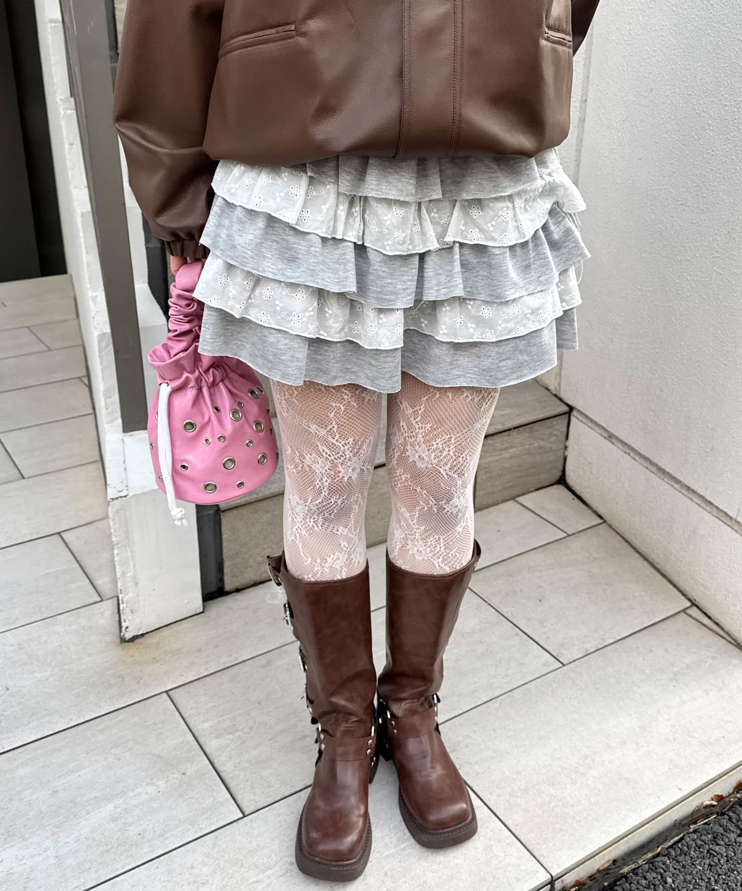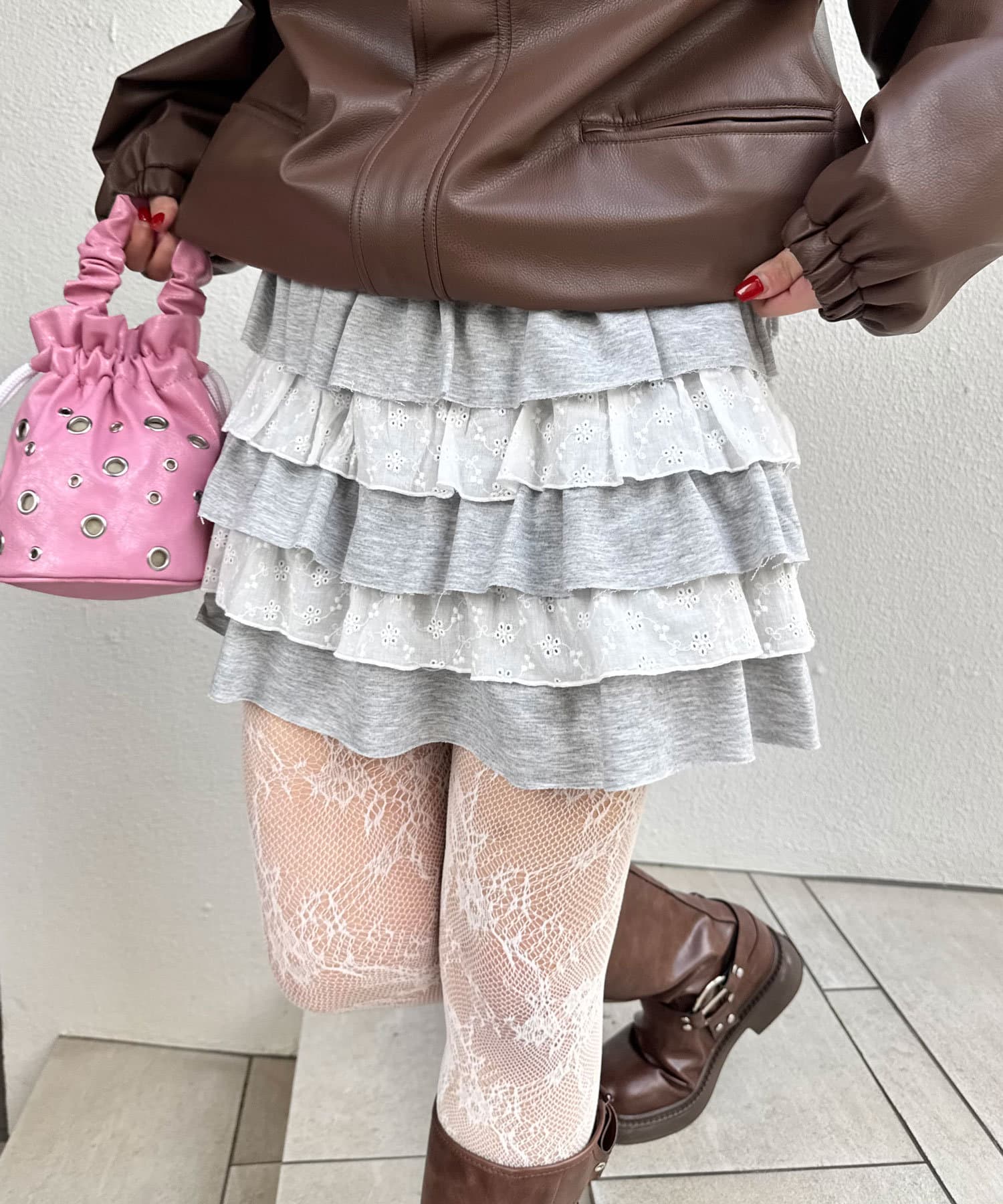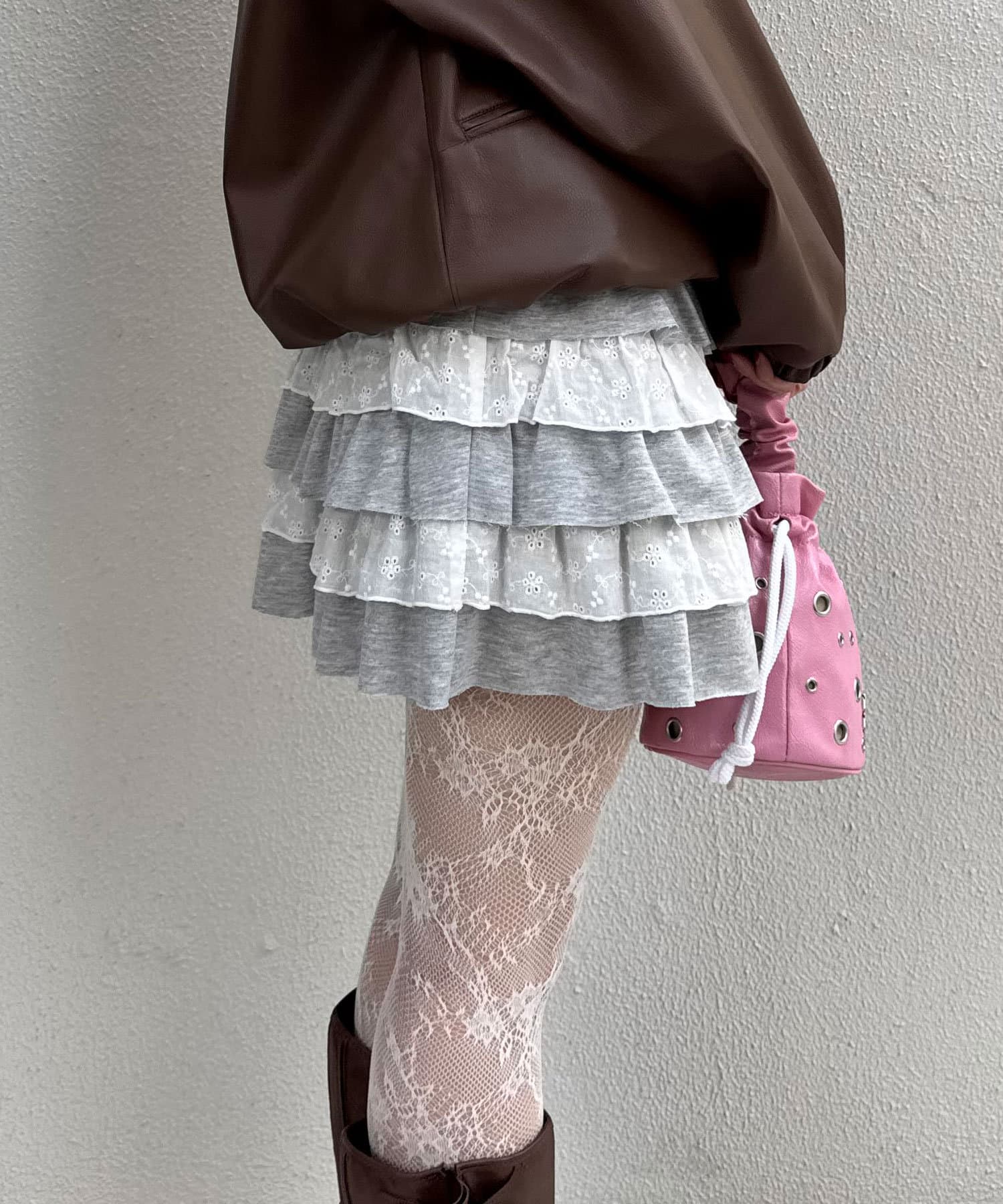 スウェットレースティアードミニスカート