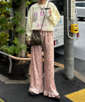 総柄デザインを活かした、スカートやシャツをレイヤードさせるのも相性抜群◎