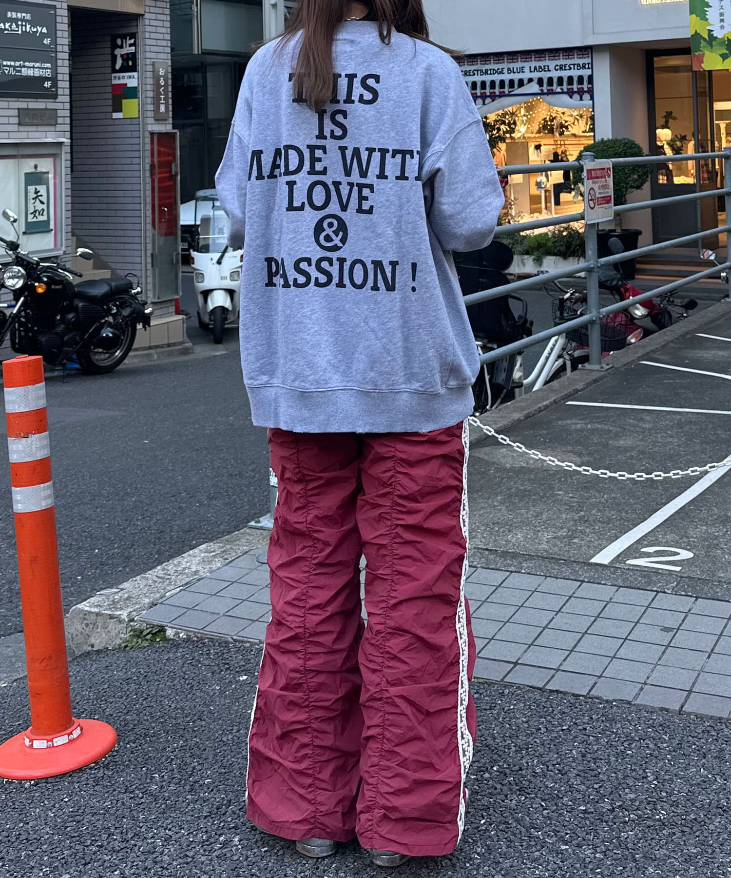 オーバーサイズのスウェットやロングTシャツと合わせてストリートライクに。