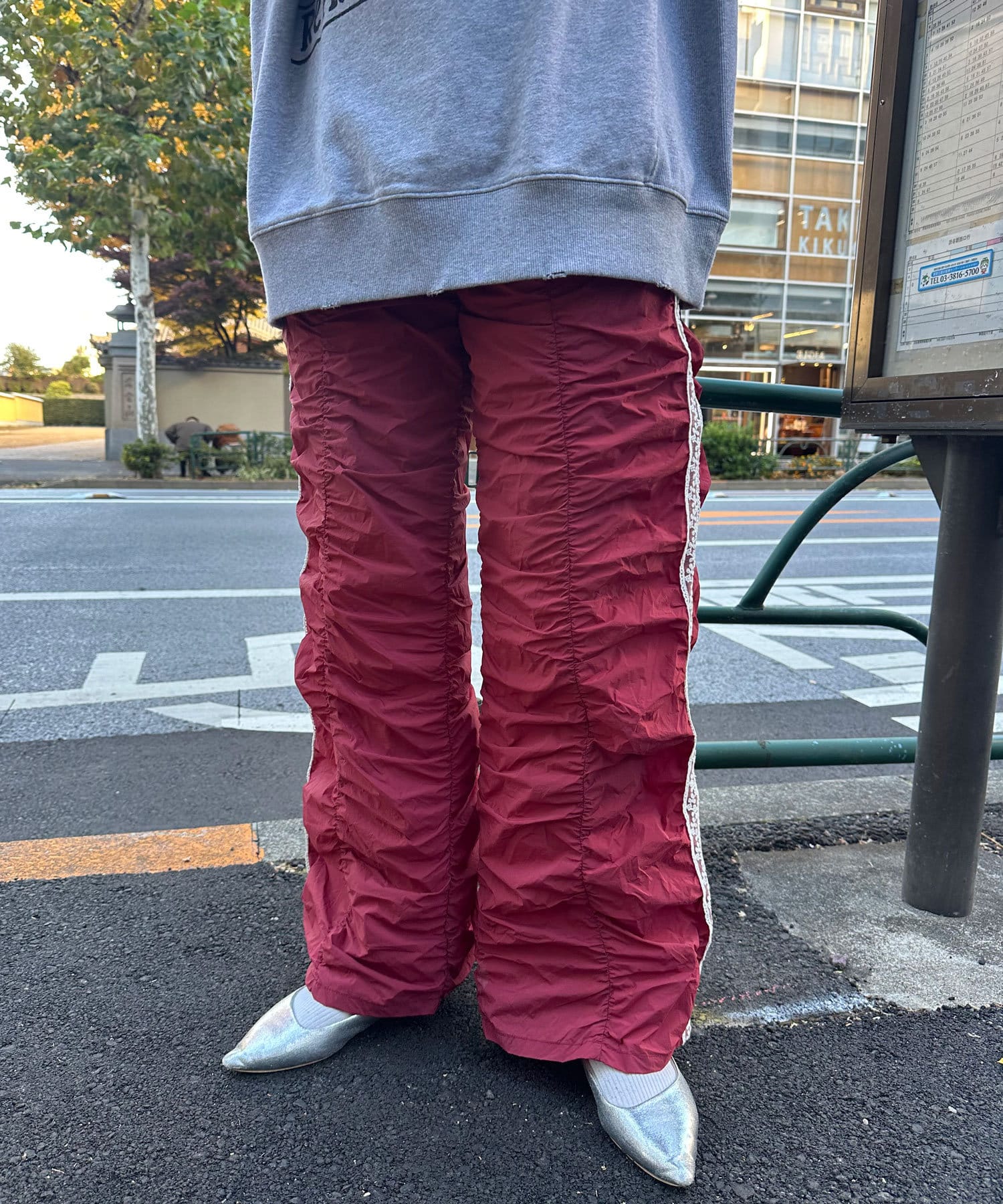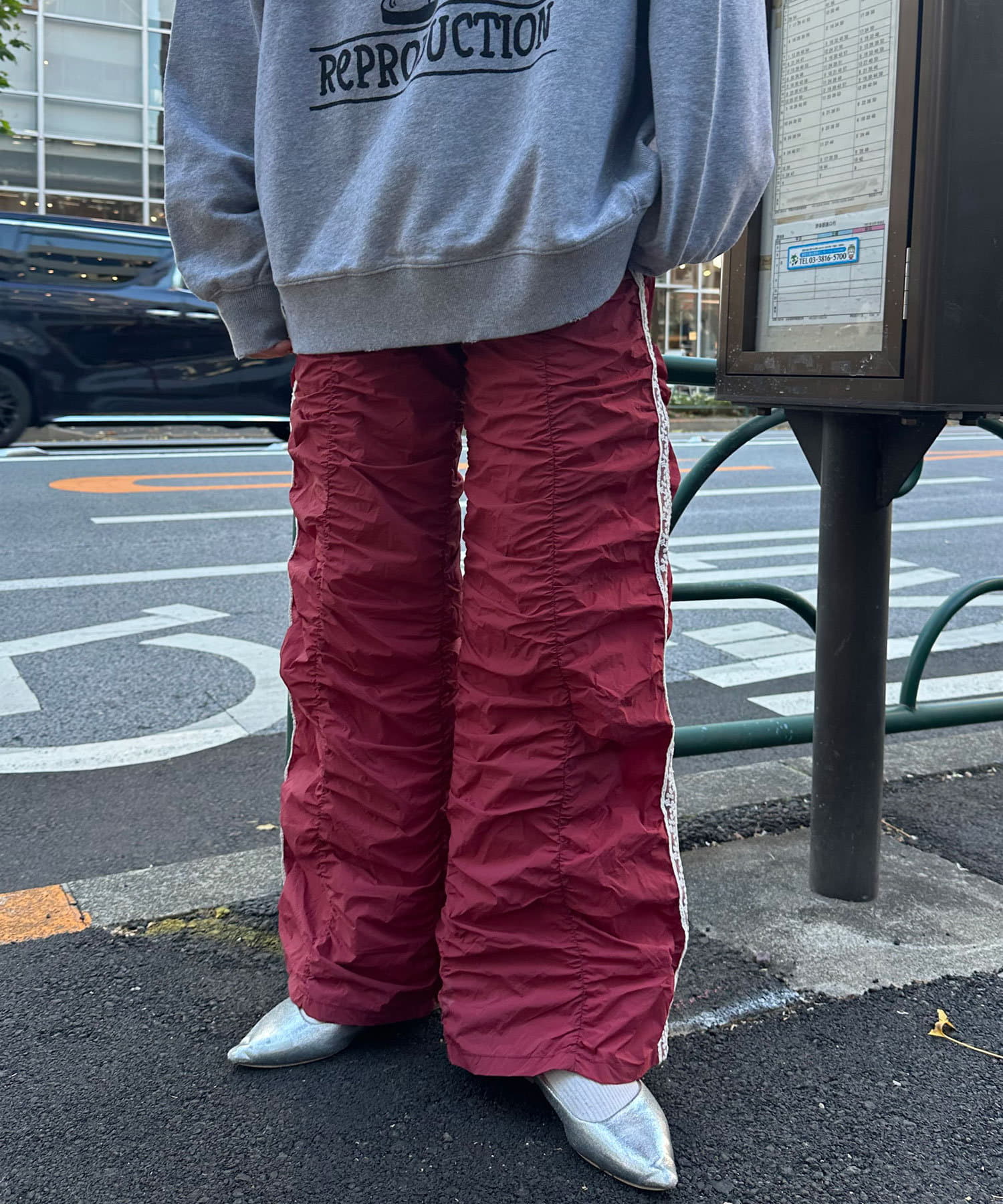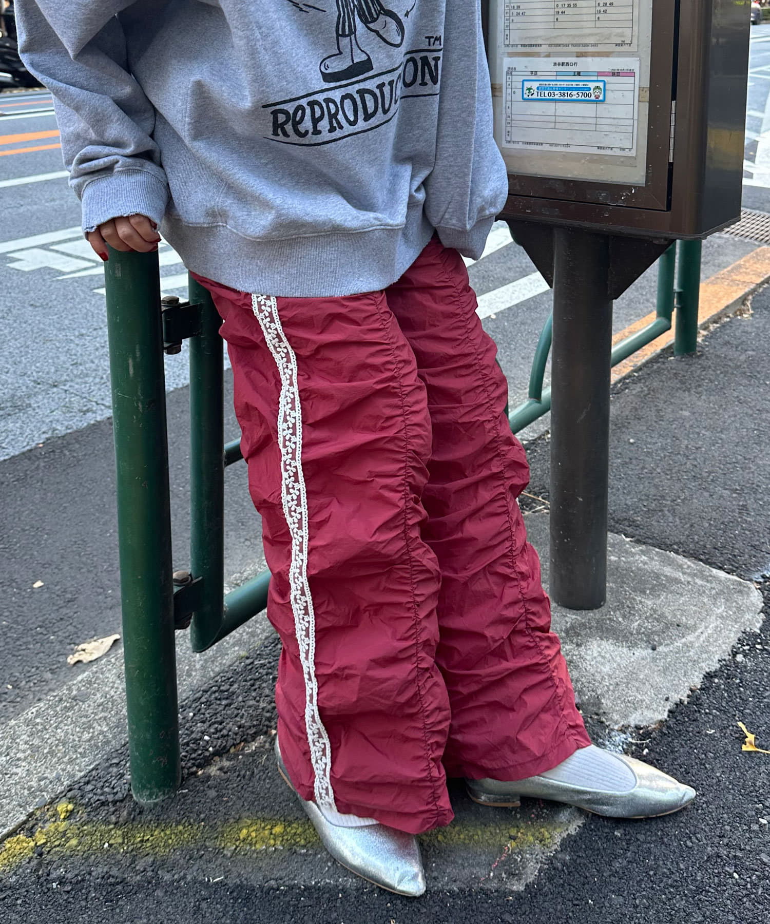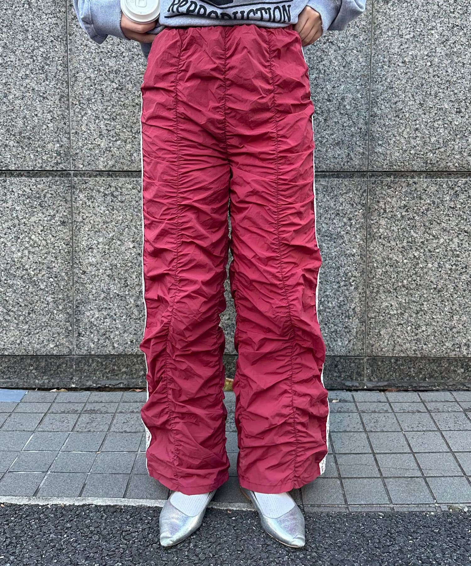 甘辛ミックスなシャーリングナイロンパンツ