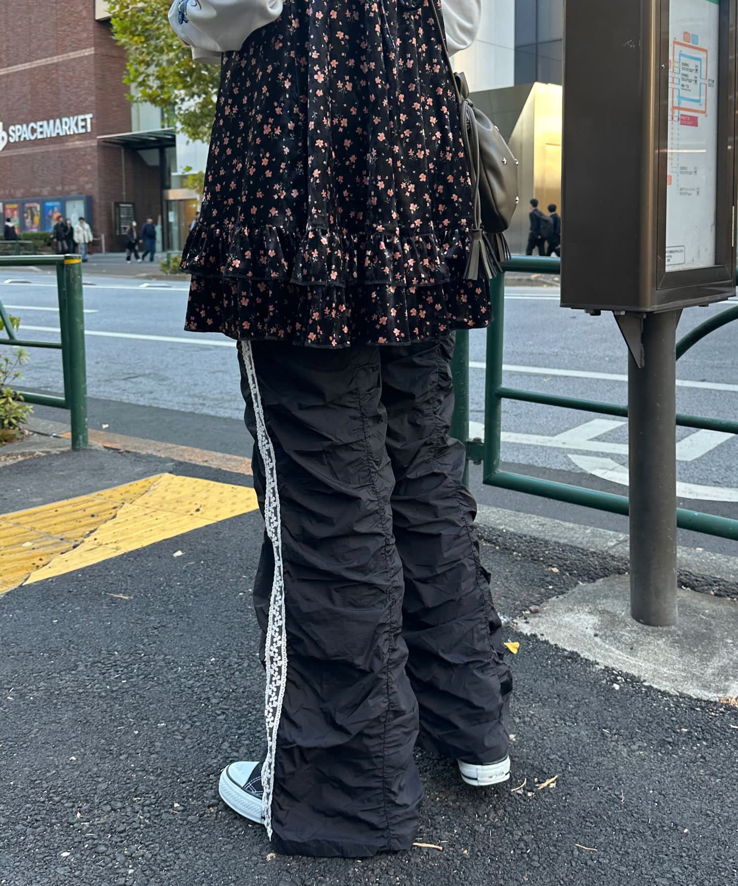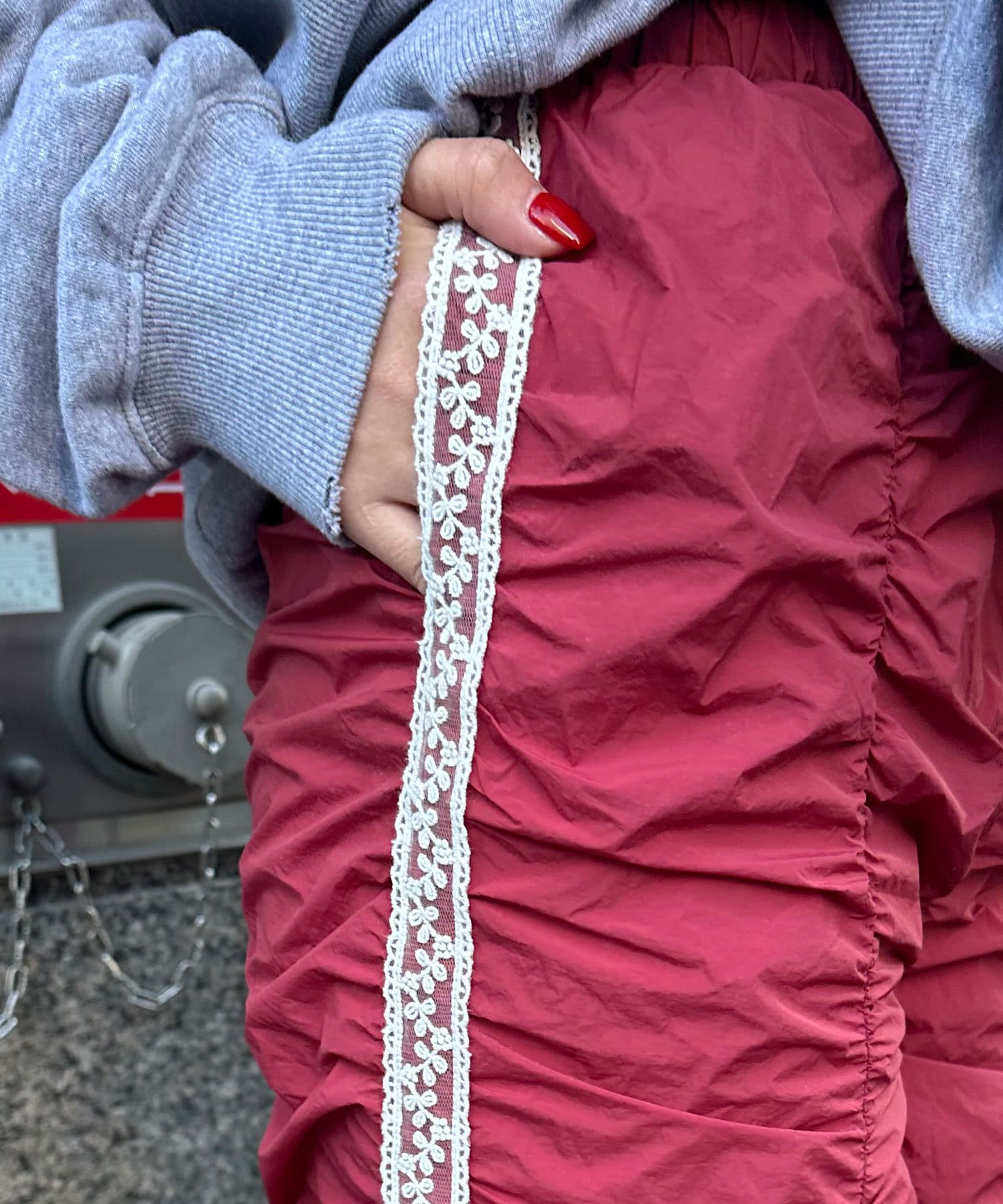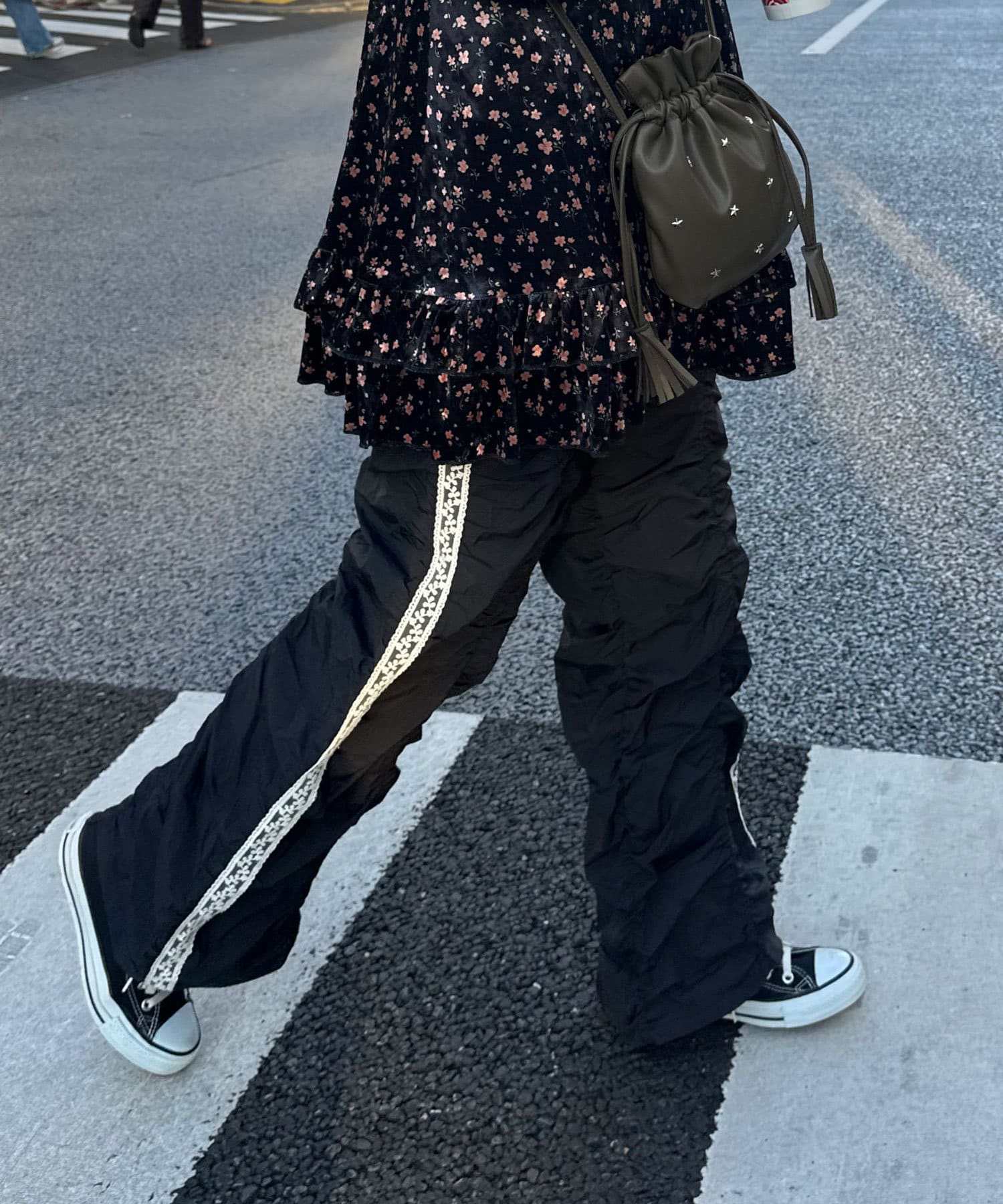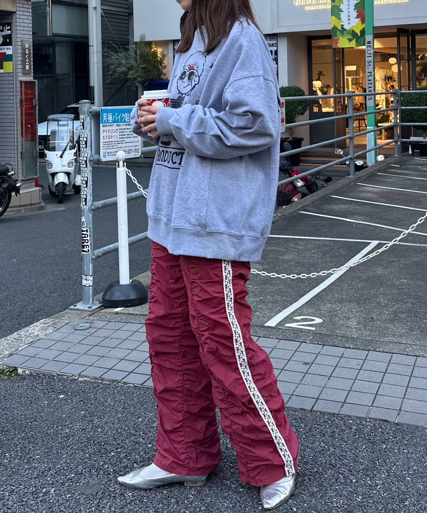 甘辛ミックスなシャーリングナイロンパンツ