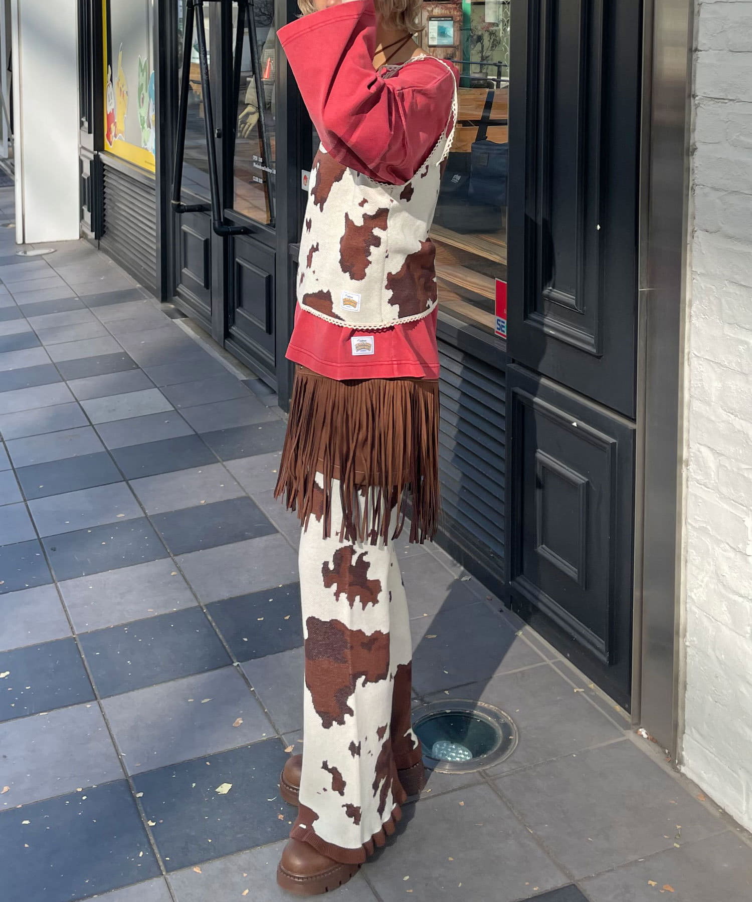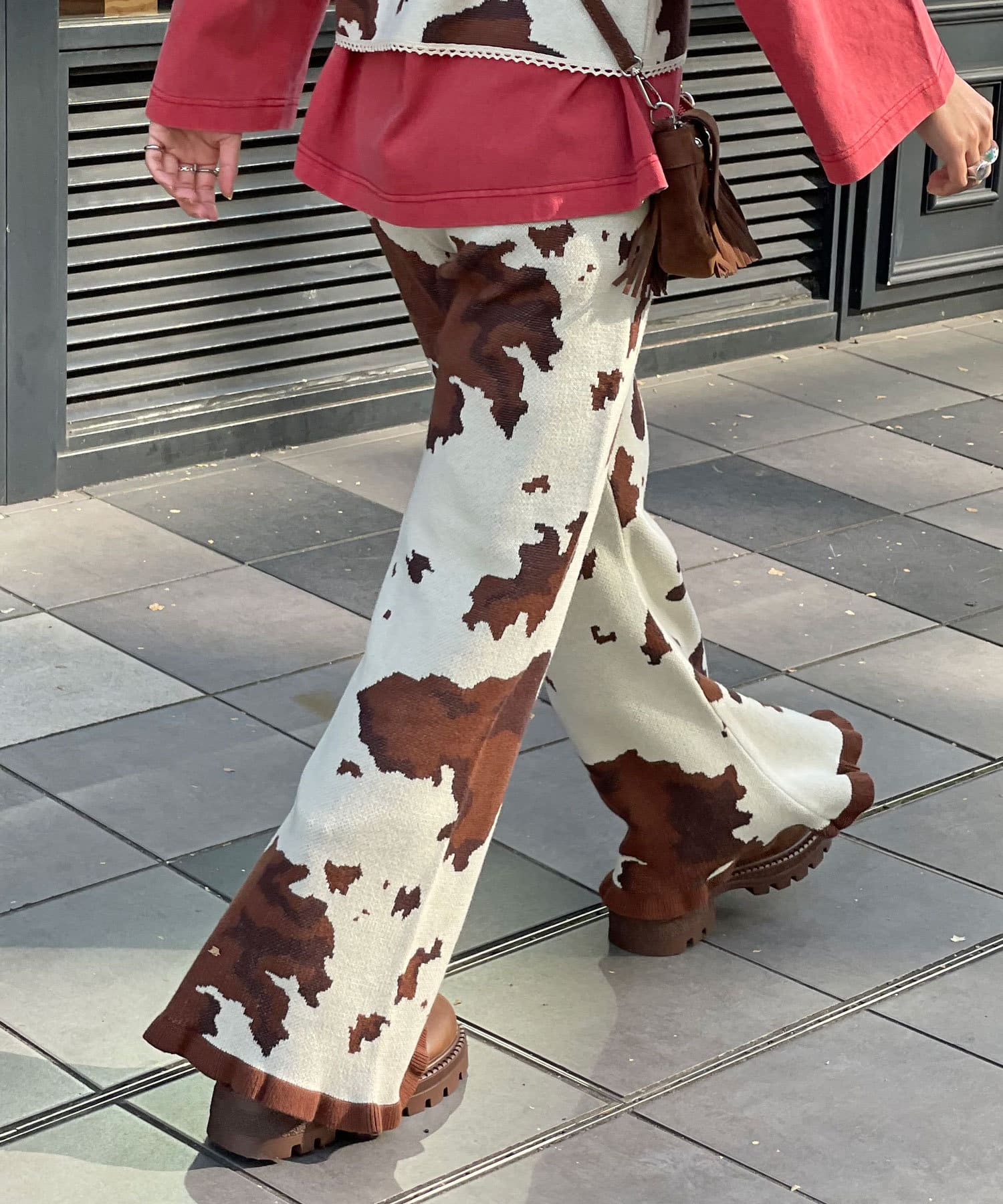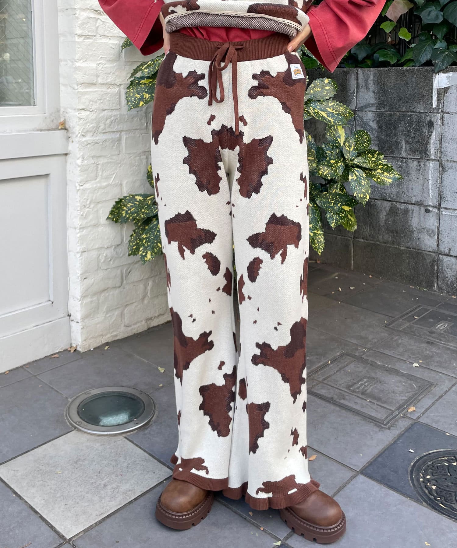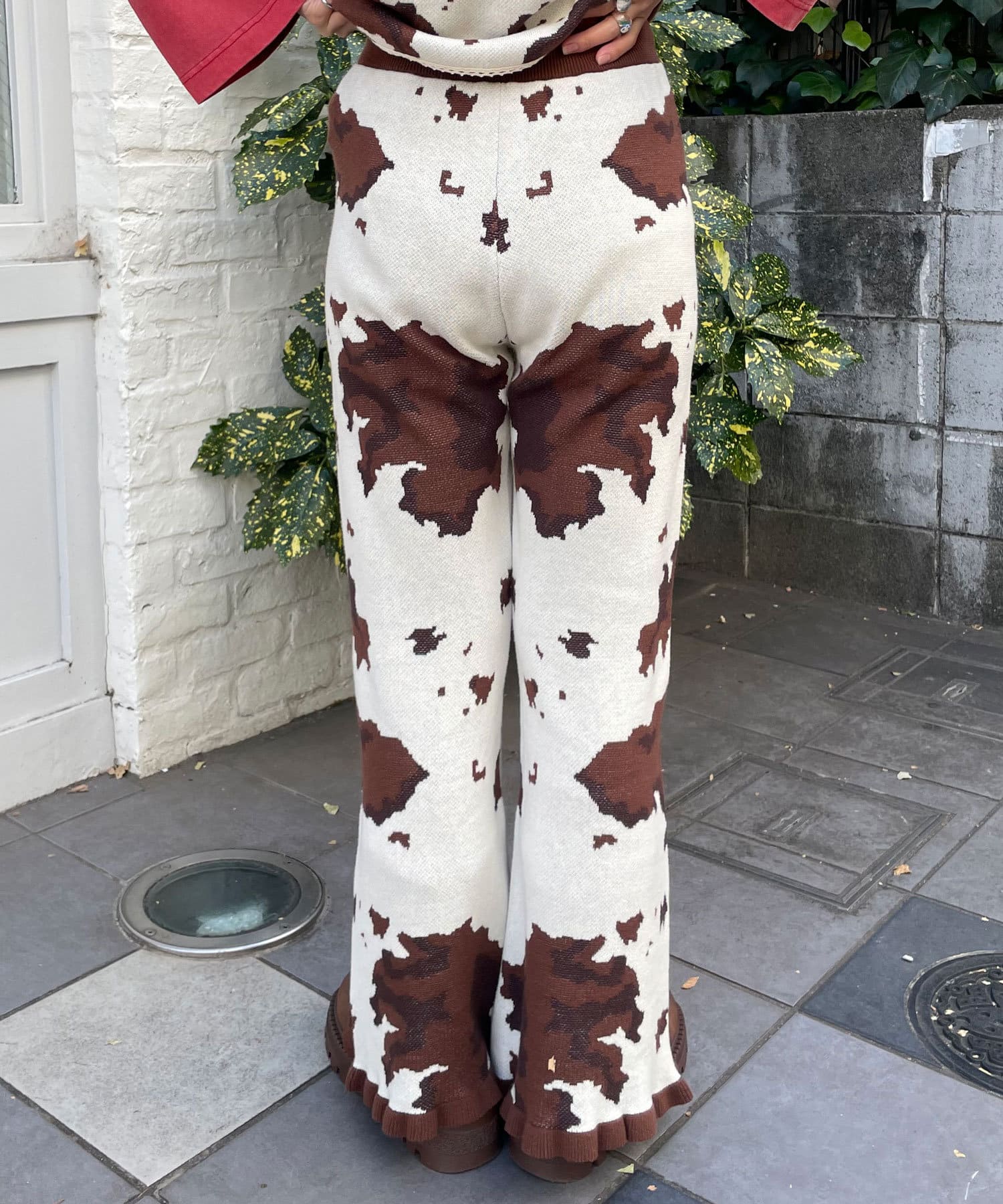 コーデの主役になるCOW柄ニットフレアパンツ