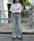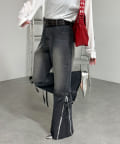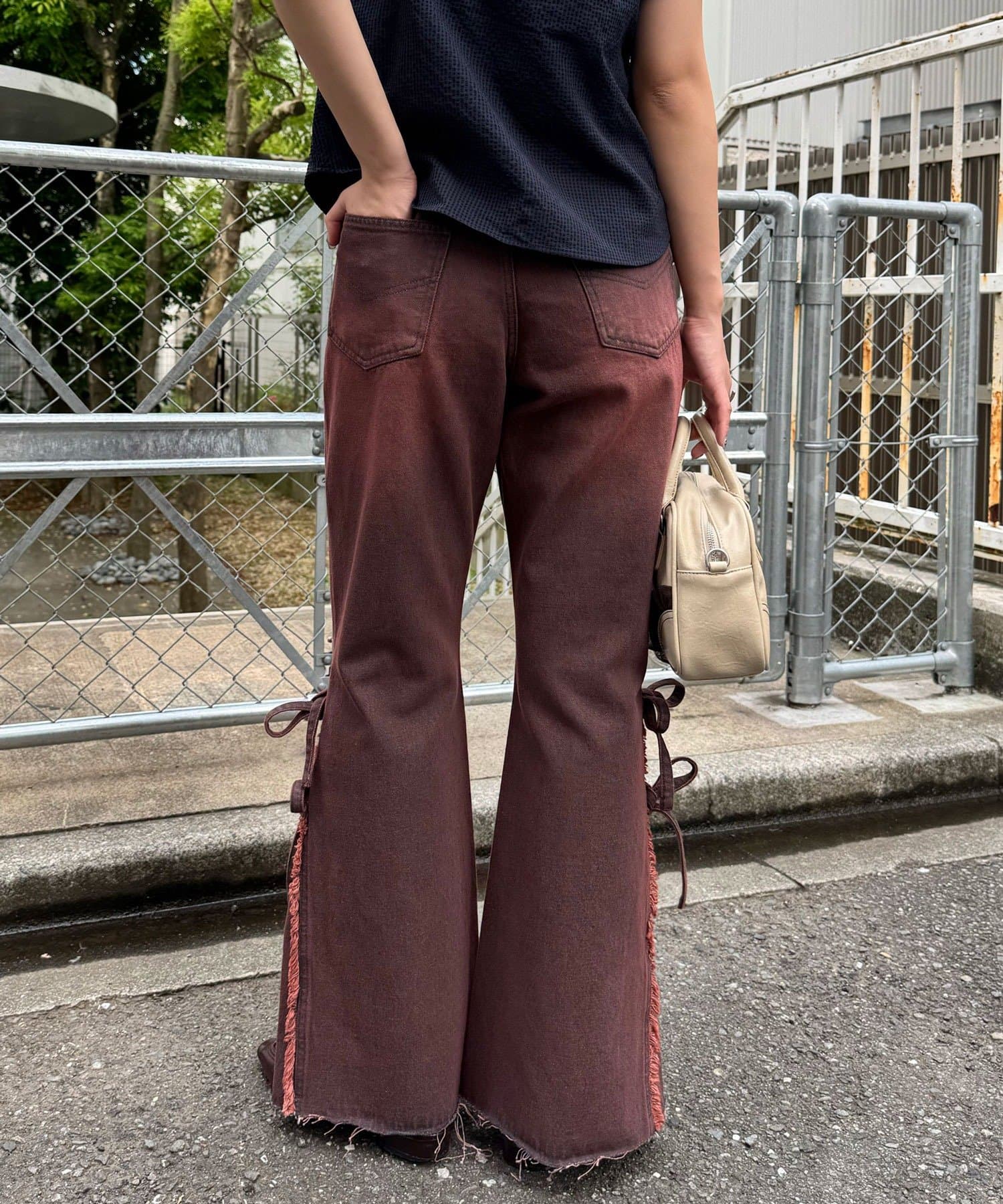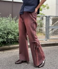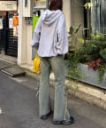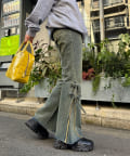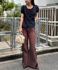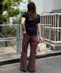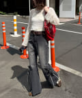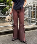ハイウエストデザインでスタイルアップを実現し、フレアシルエットが脚をきれいに見せてくれます。