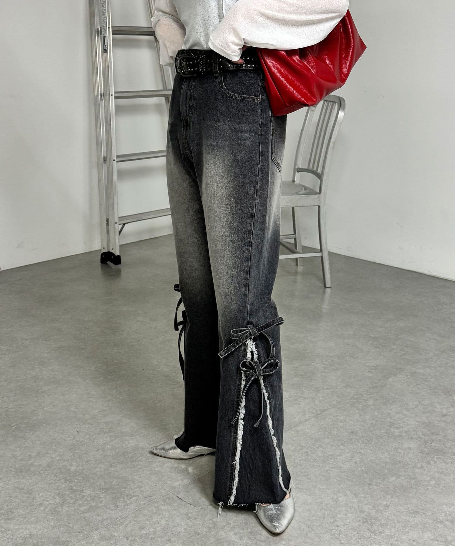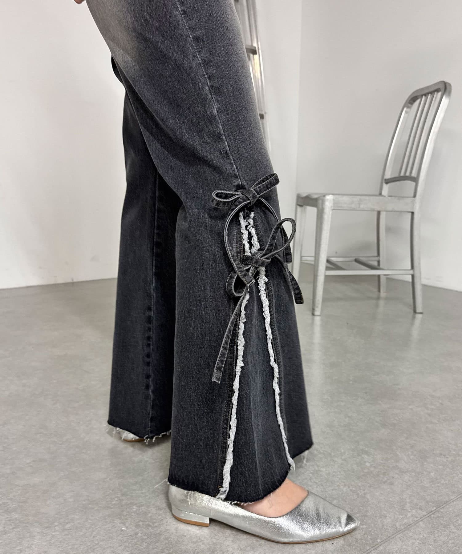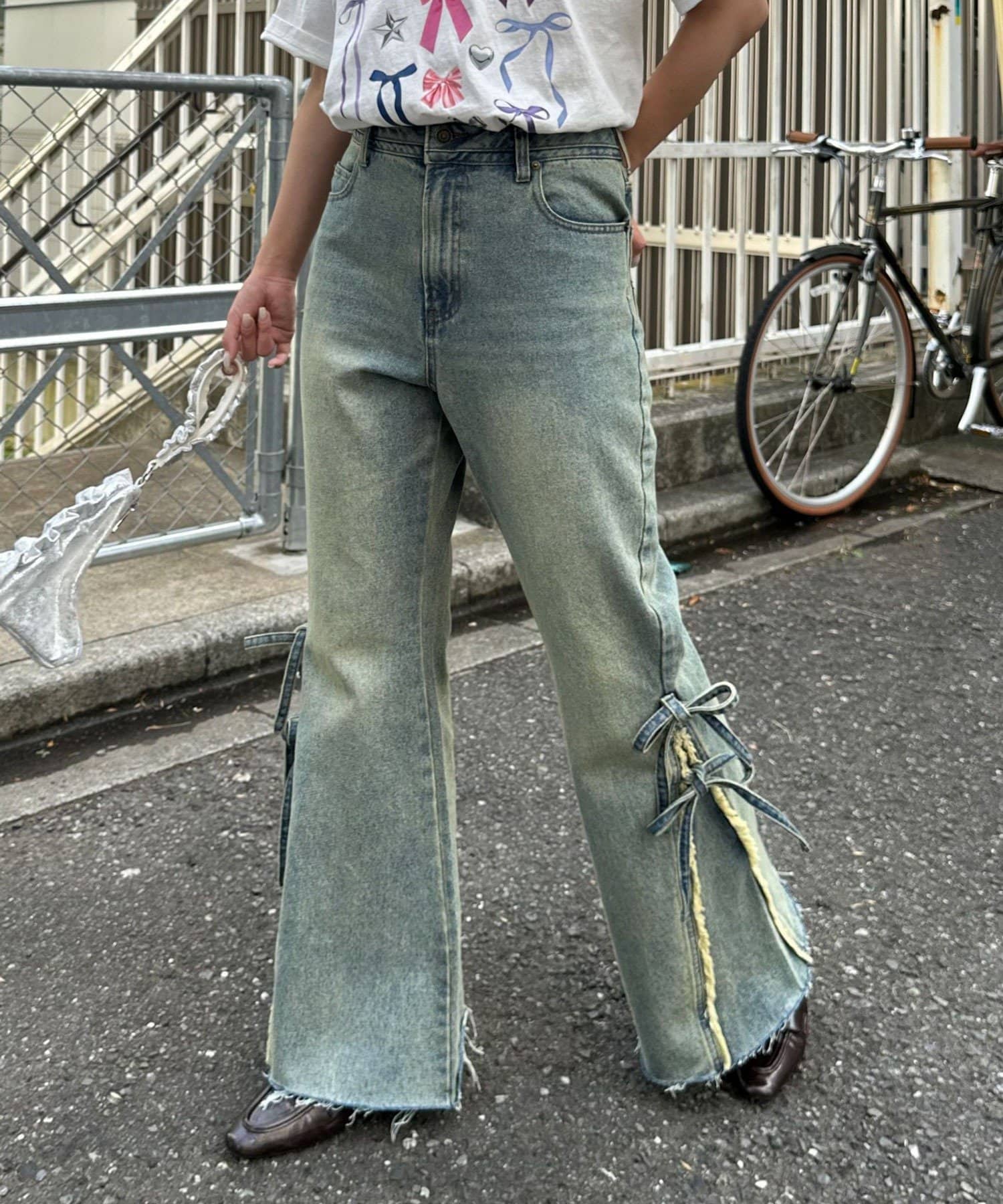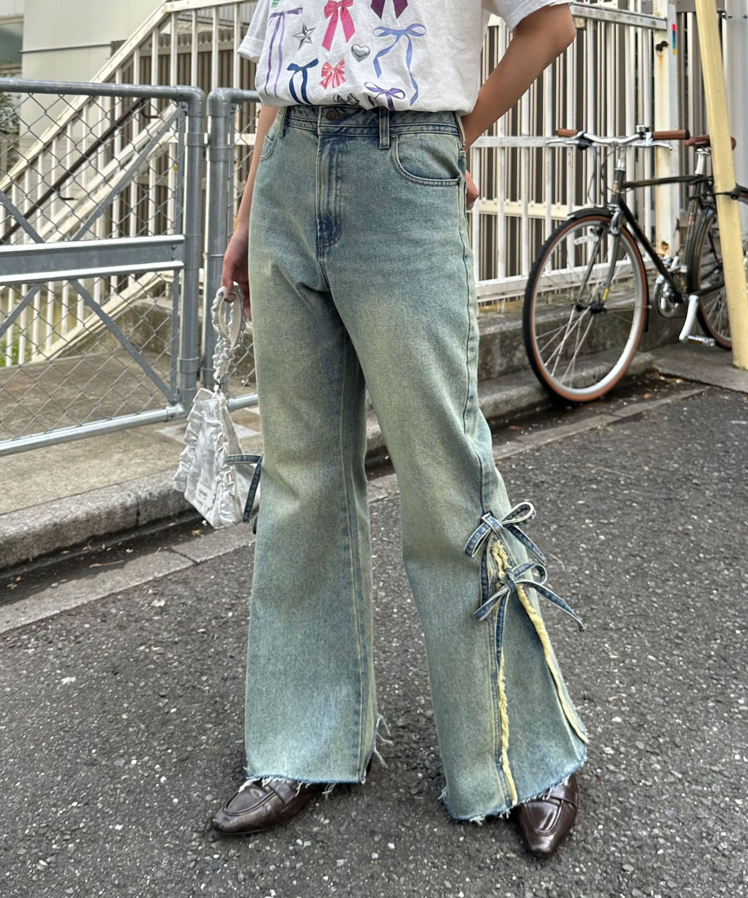 可愛くて上品な雰囲気が楽しめるダブルウエストリボンデニム。