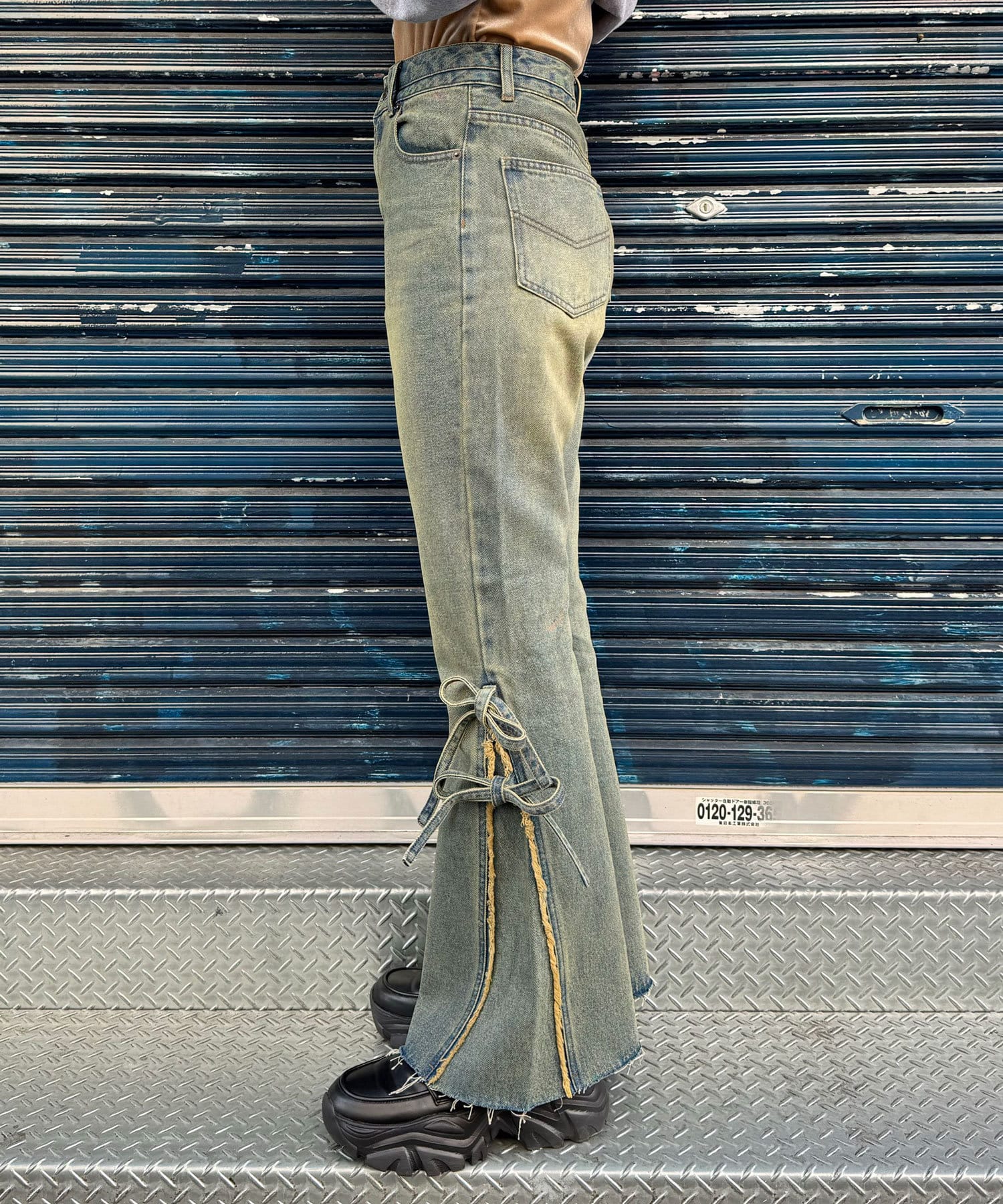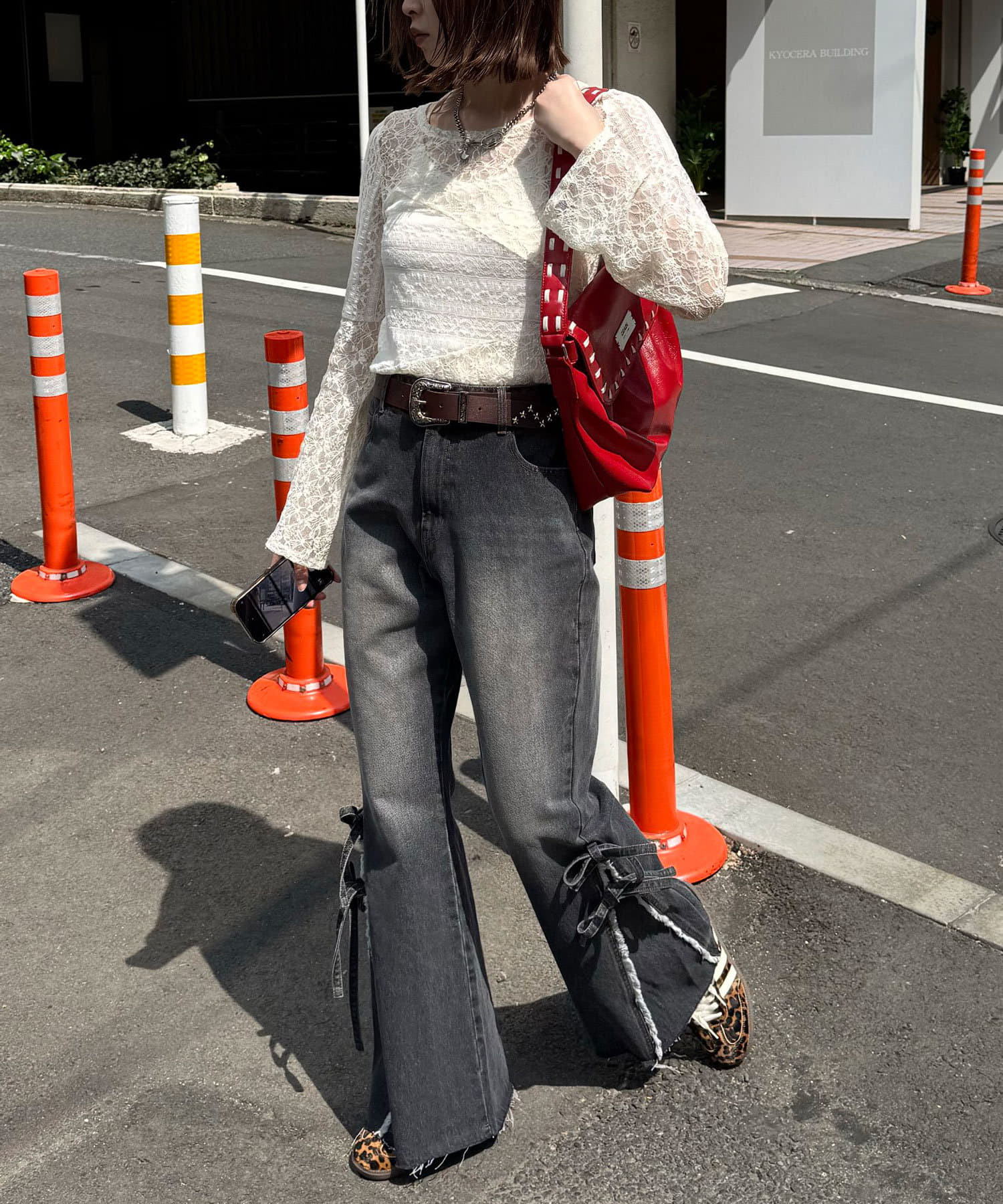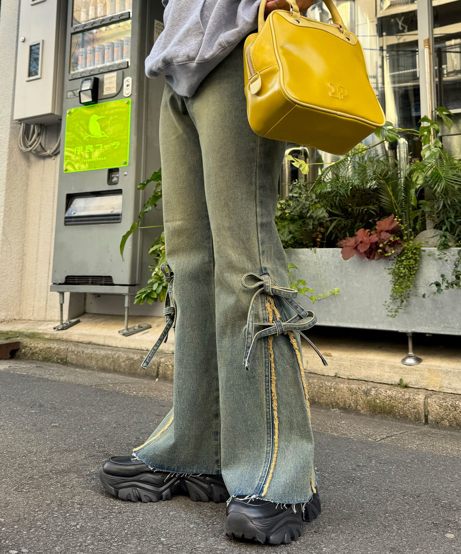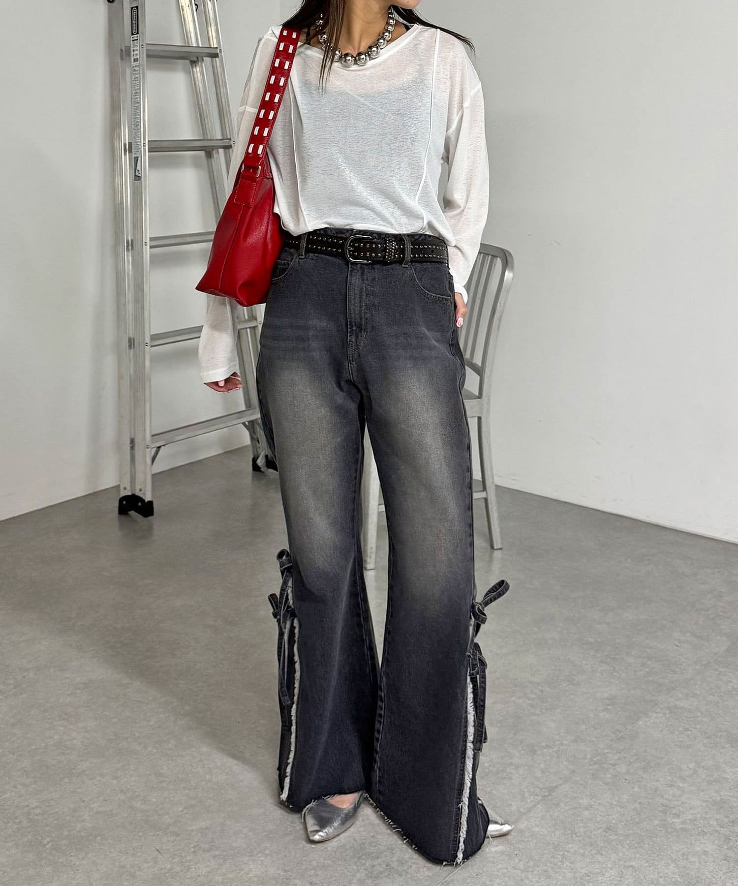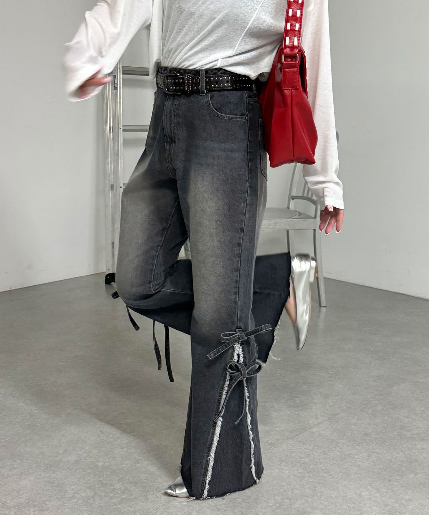 可愛くて上品な雰囲気が楽しめるダブルウエストリボンデニム。