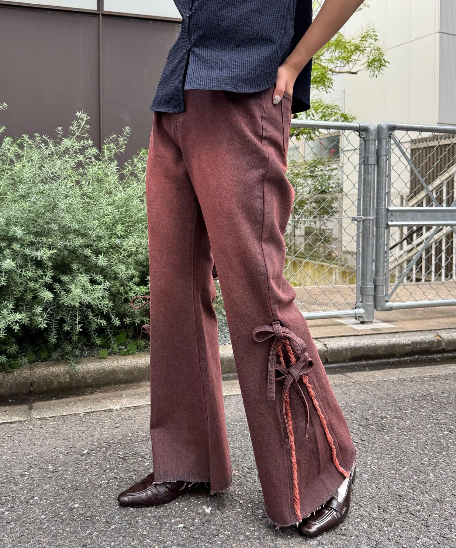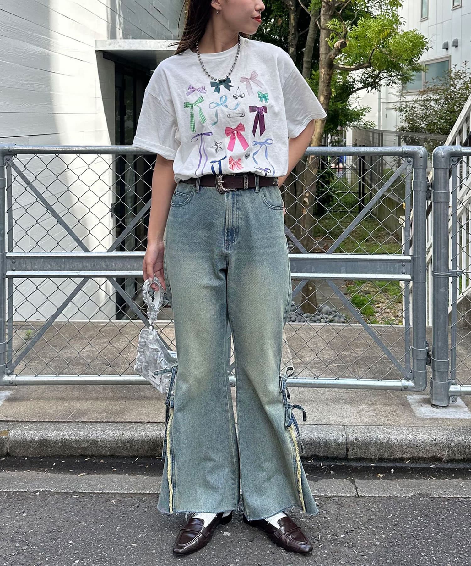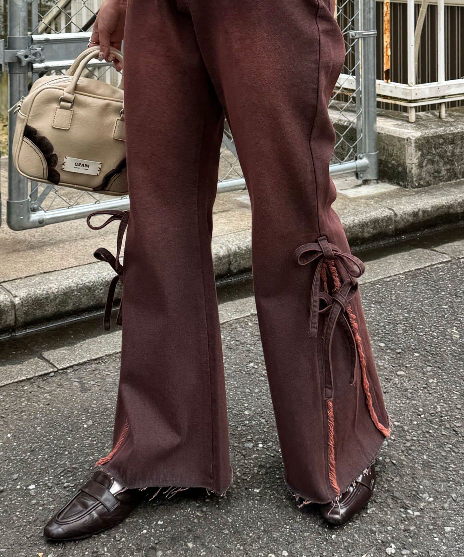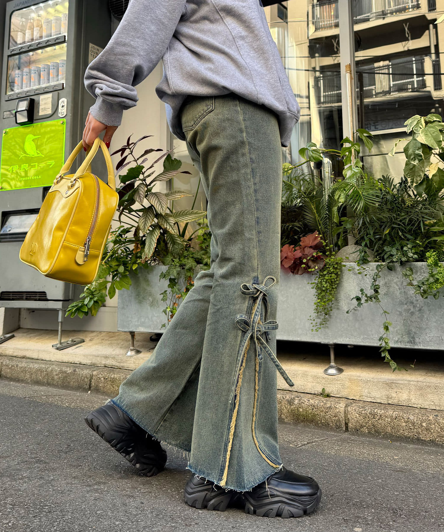 可愛くて上品な雰囲気が楽しめるダブルウエストリボンデニム。