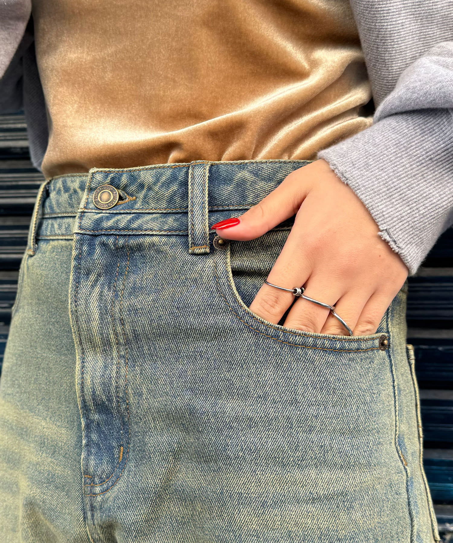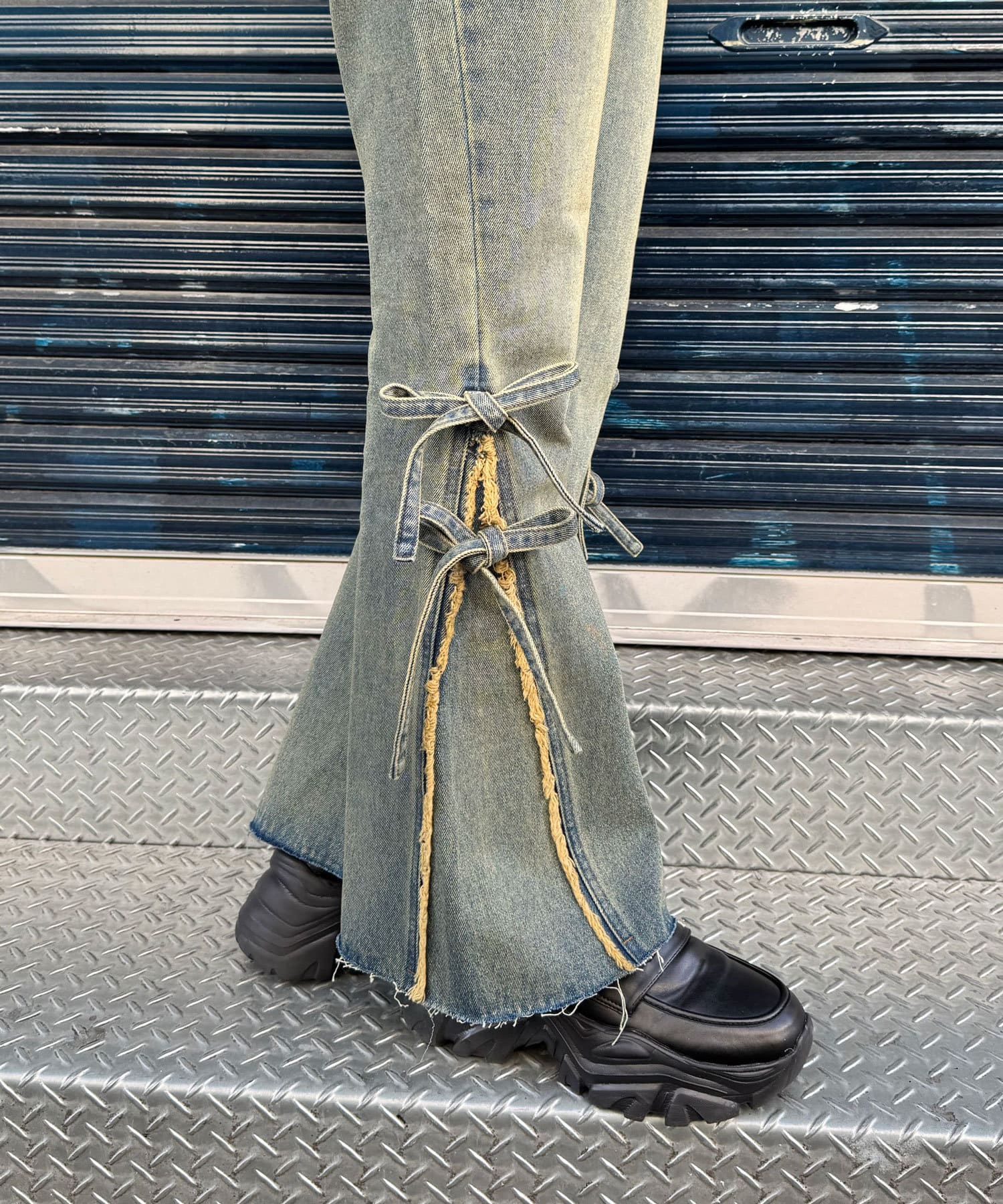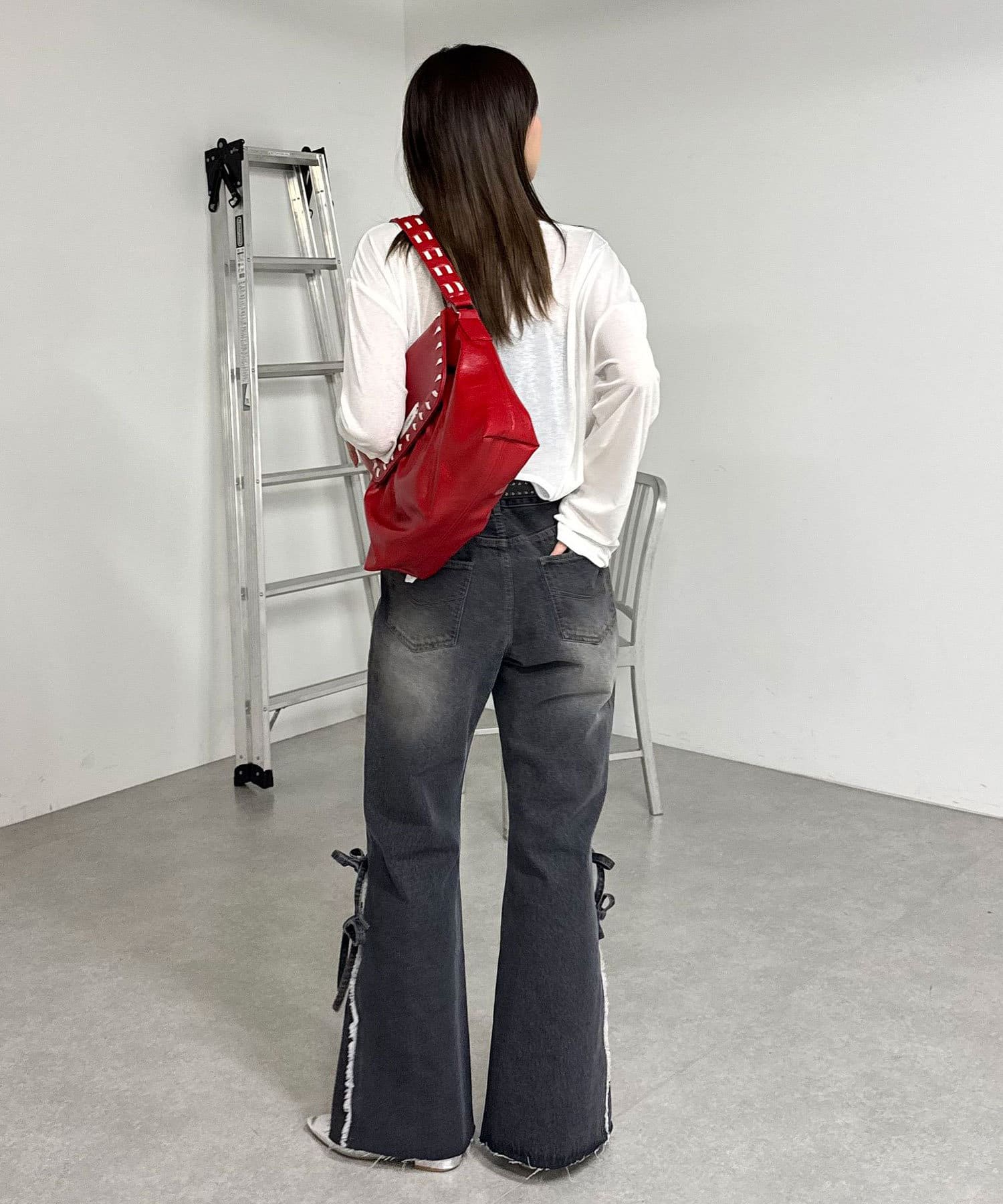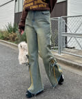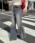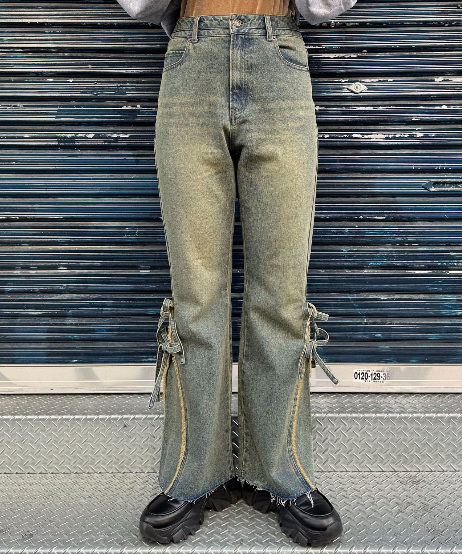 可愛くて上品な雰囲気が楽しめるダブルウエストリボンデニム。