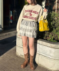デニムやカーゴパンツと合わせてストリート感を楽しんだり、ミニスカートやショートパンツで甘辛MIXに仕上げても!