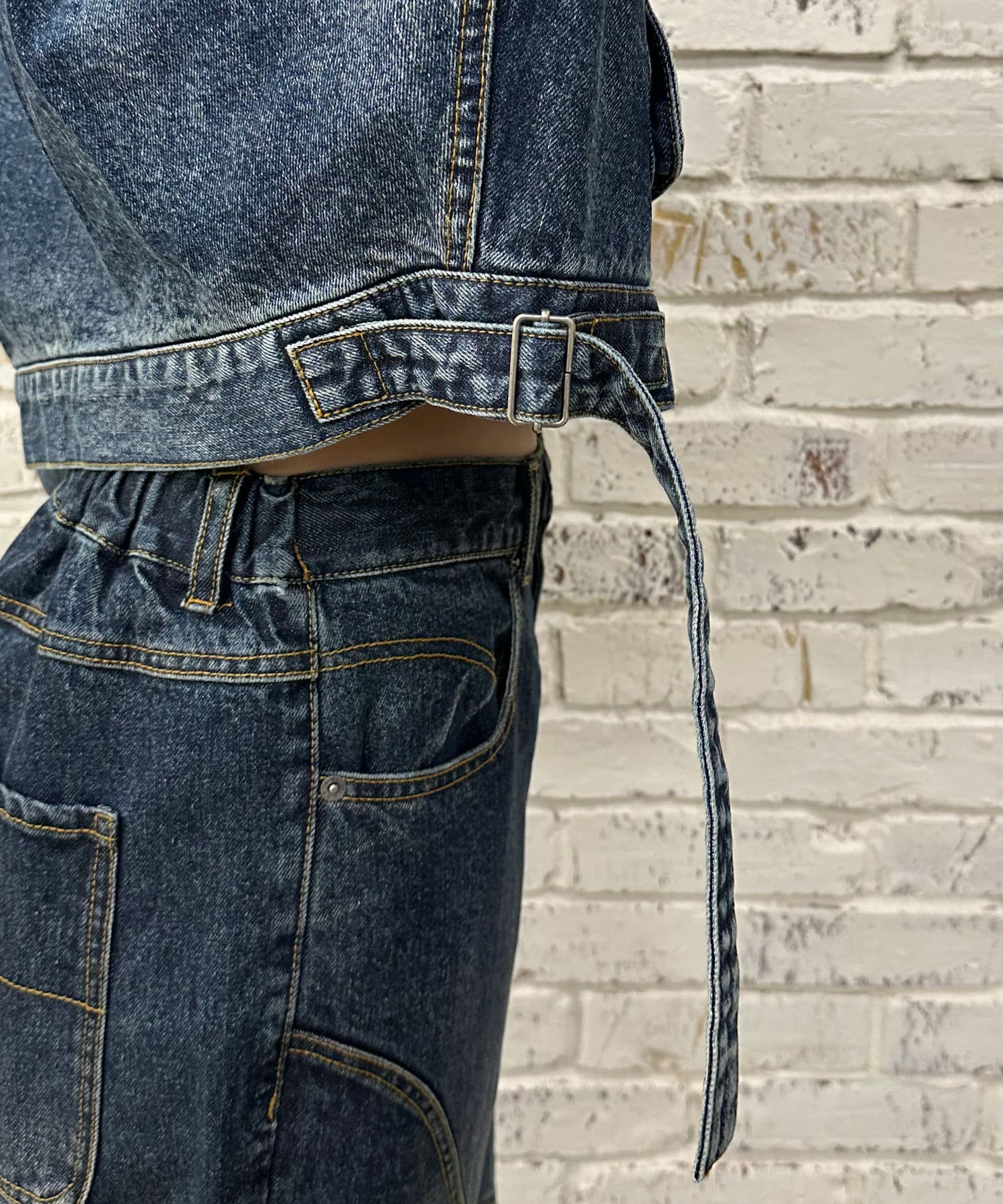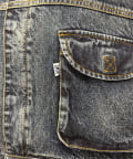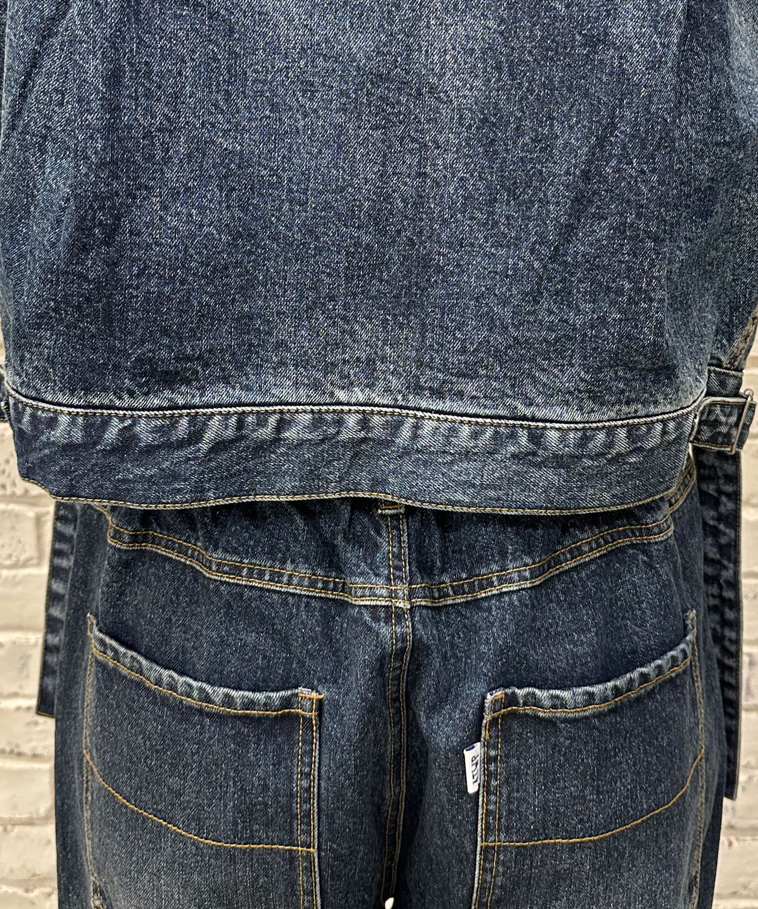 デニム素材にオーバーダイ加工を施し、ヴィンテージライクな風合いと立体感を表現。