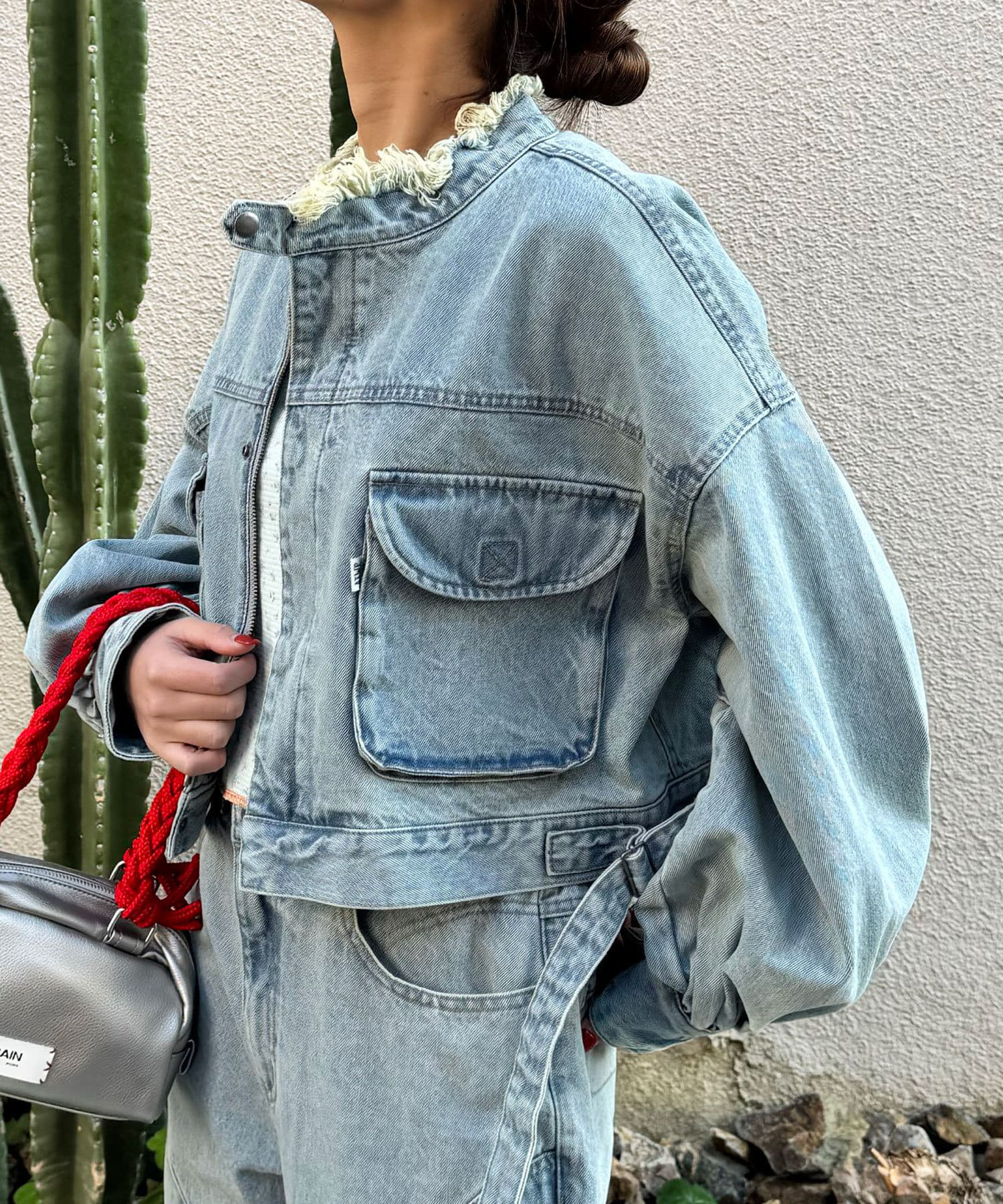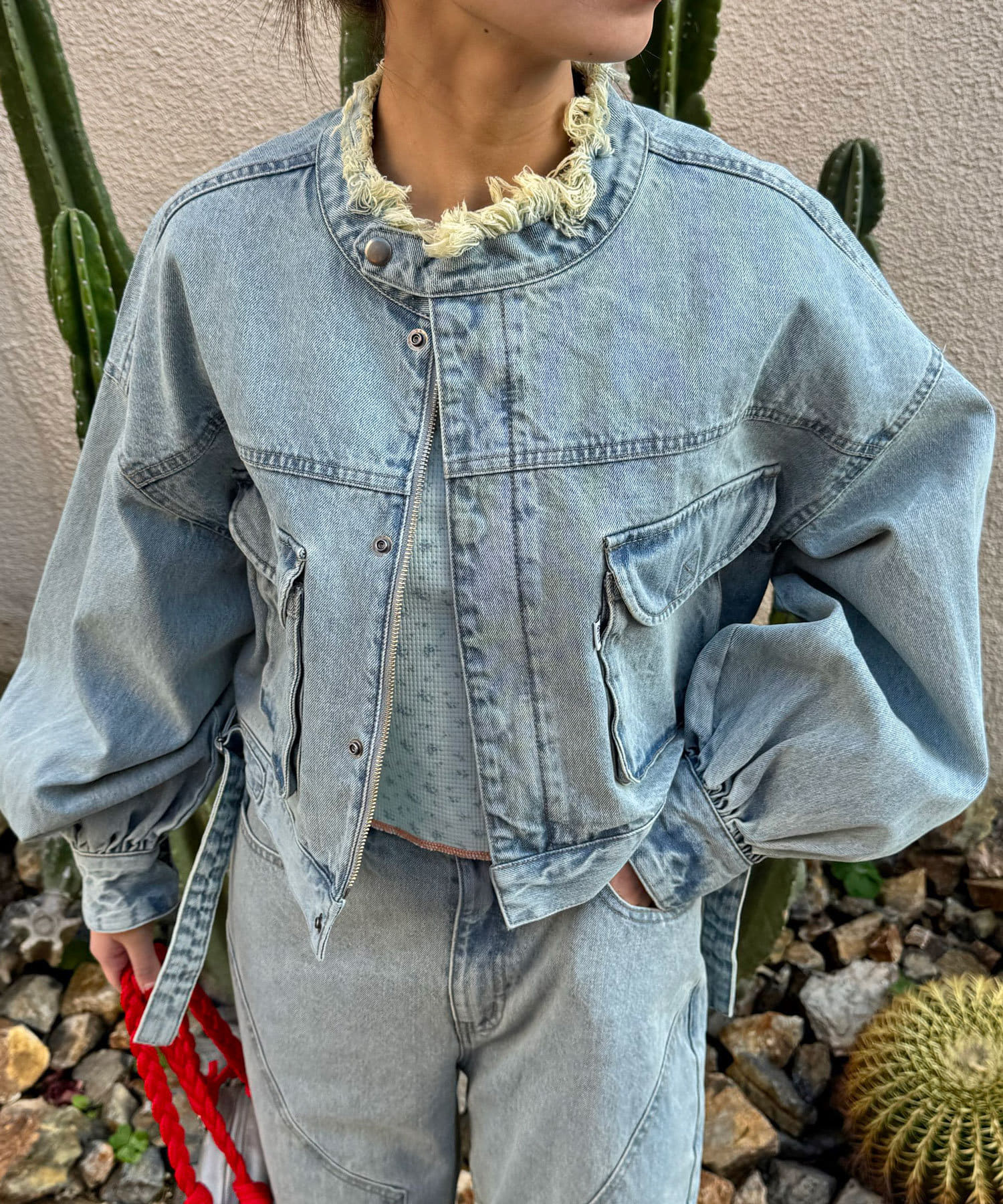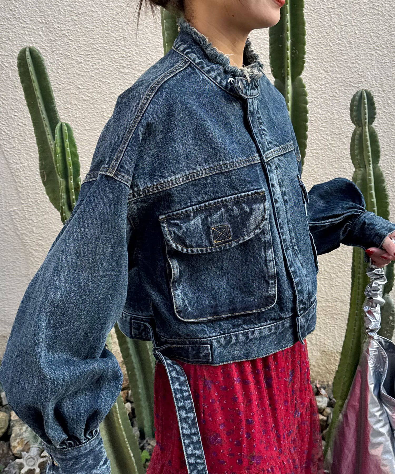 たっぷりな袖口が可愛らしいショート丈デニムジャケット