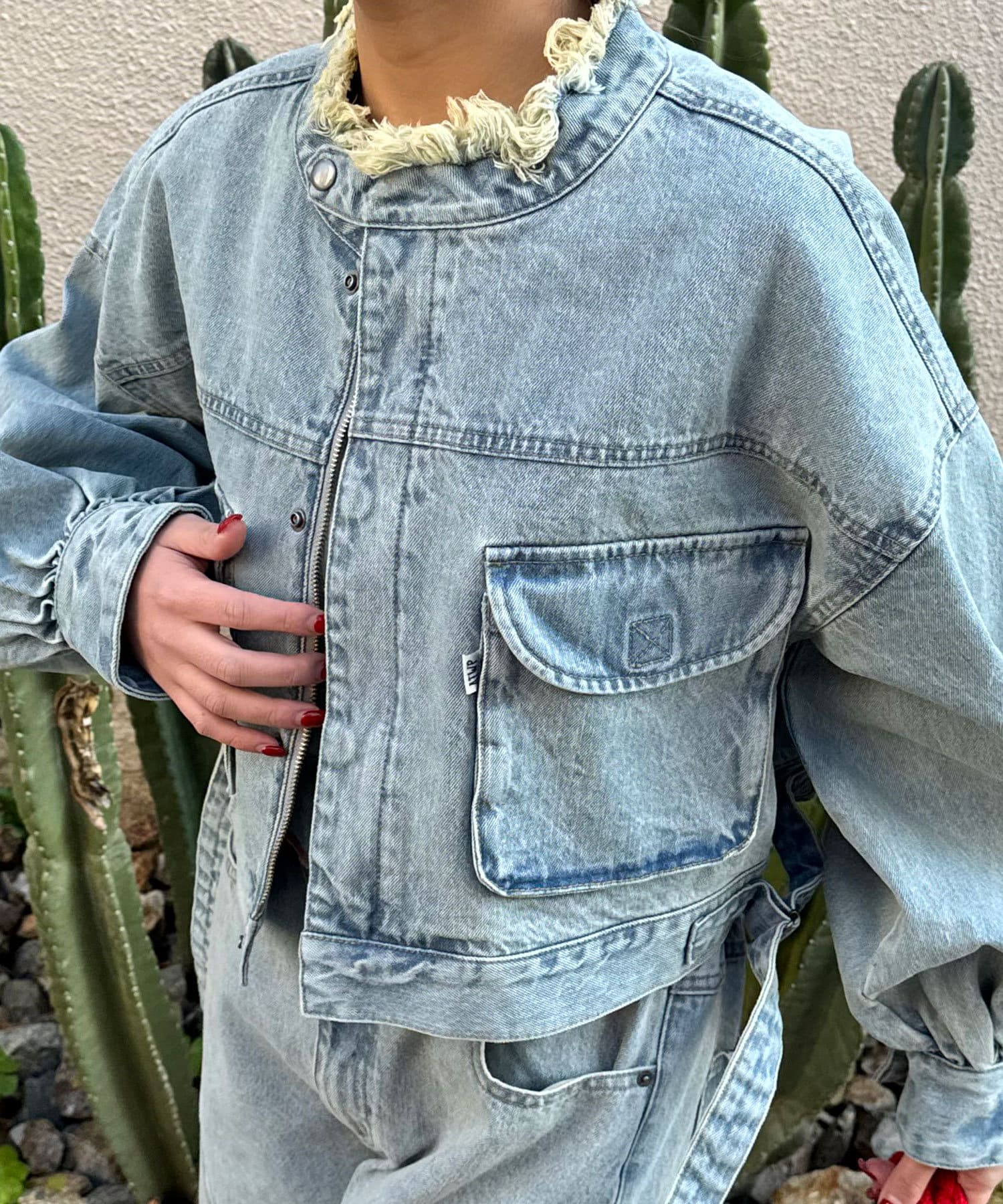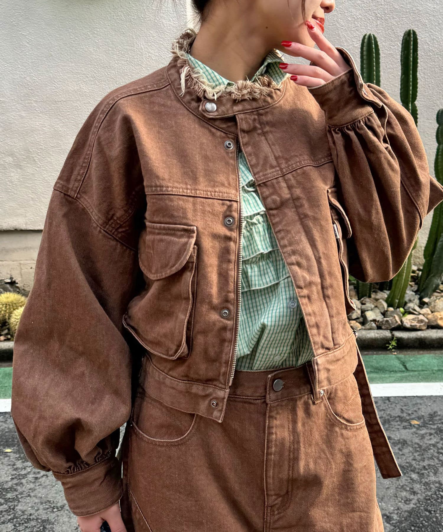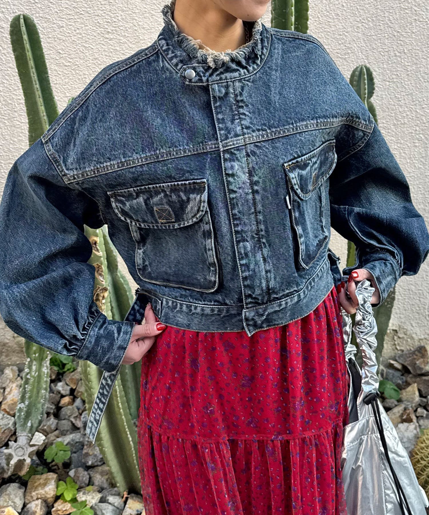 たっぷりな袖口が可愛らしいショート丈デニムジャケット