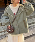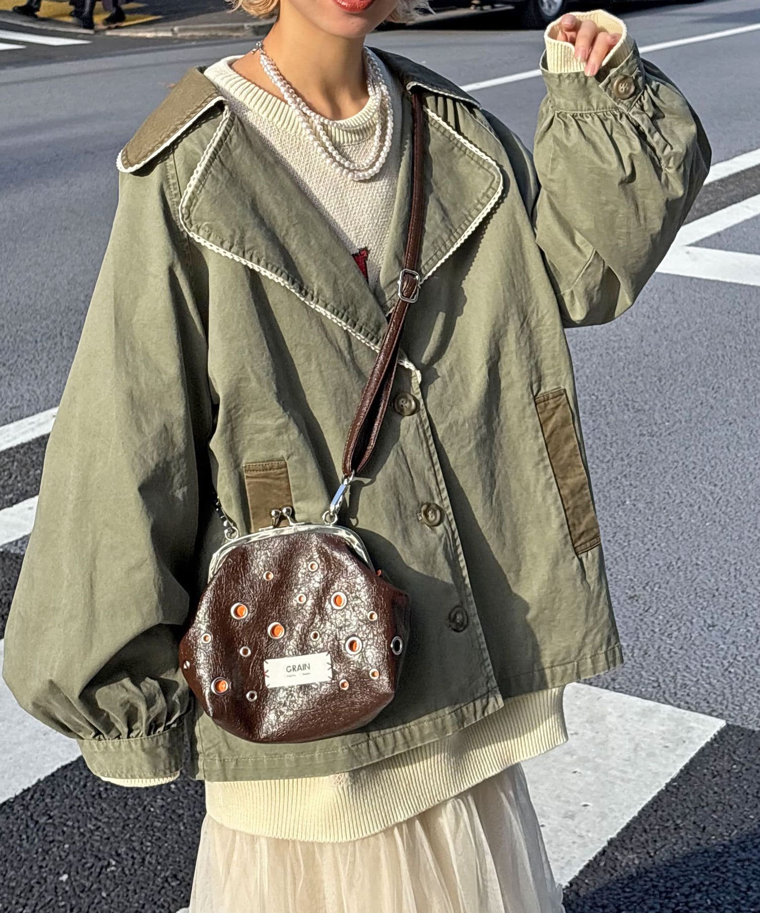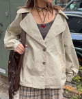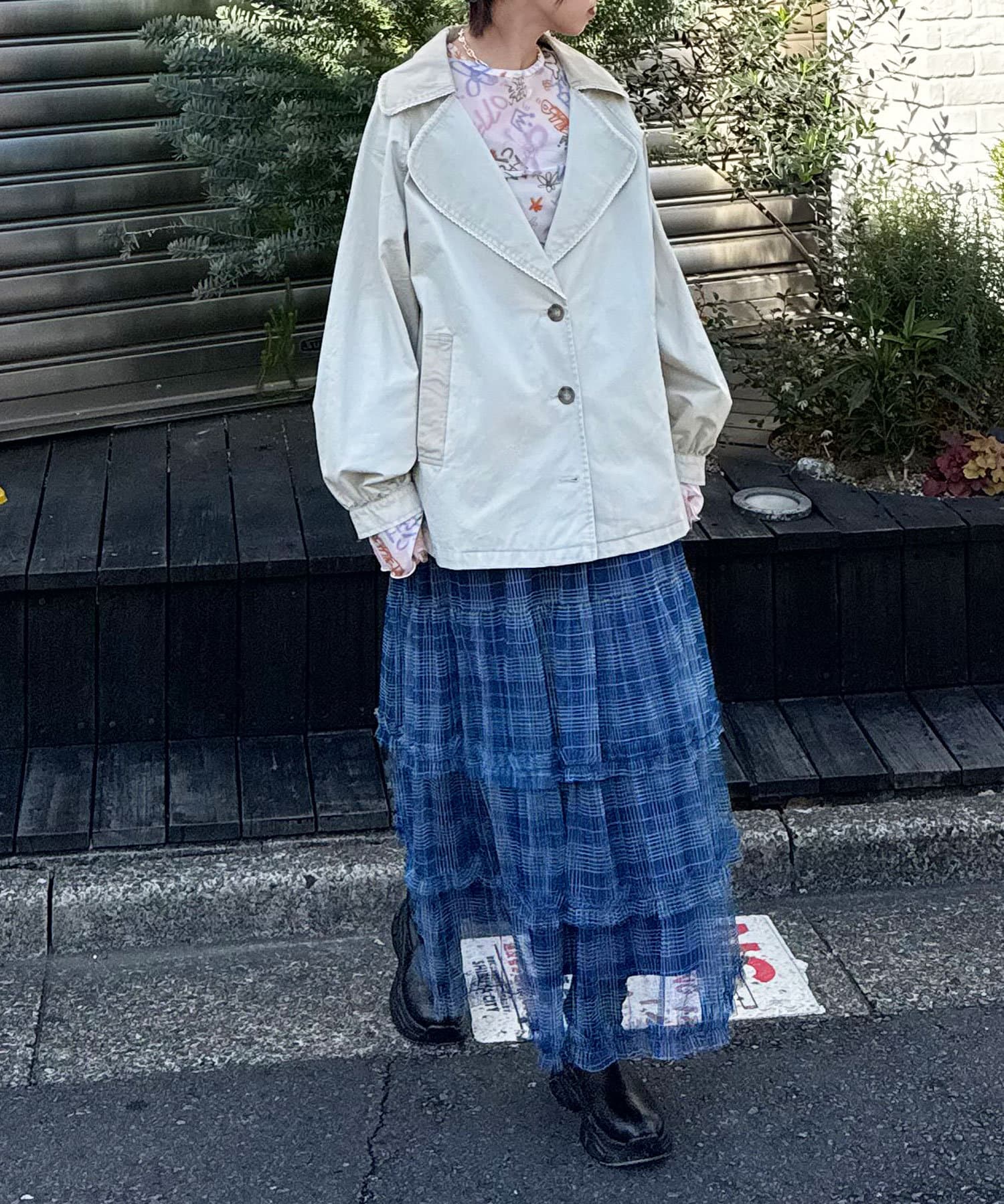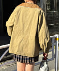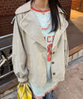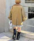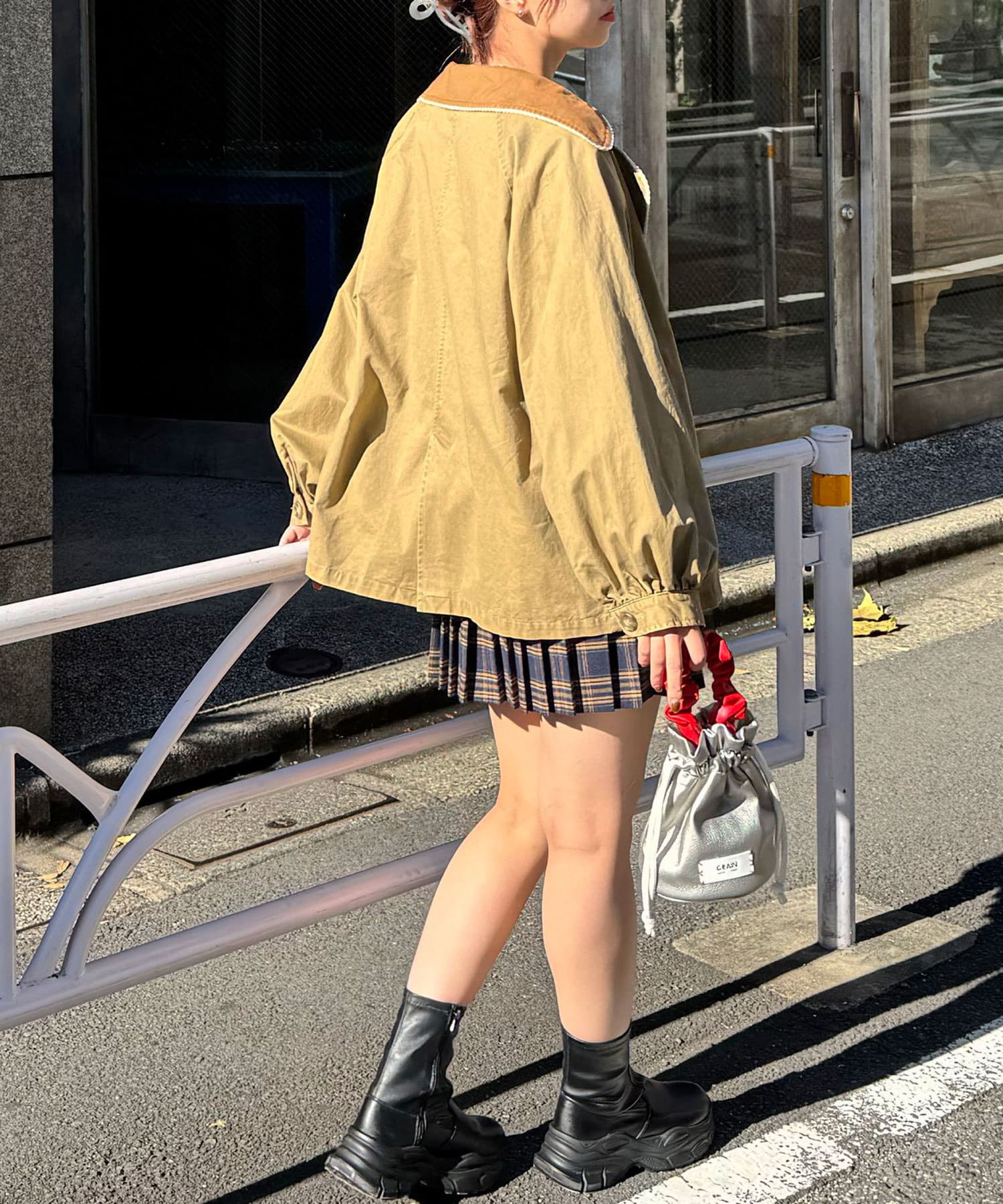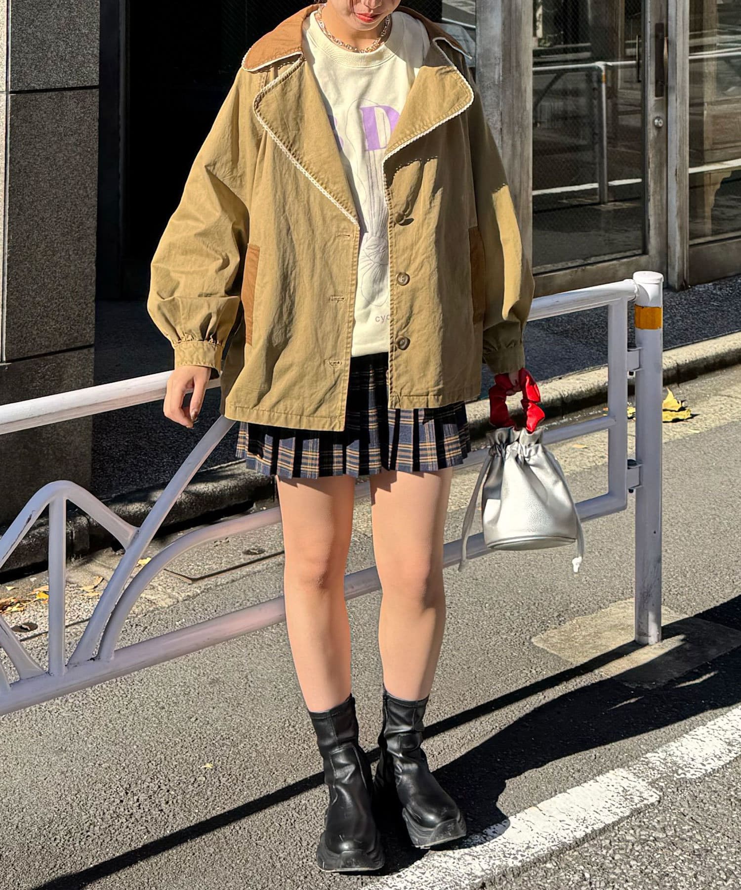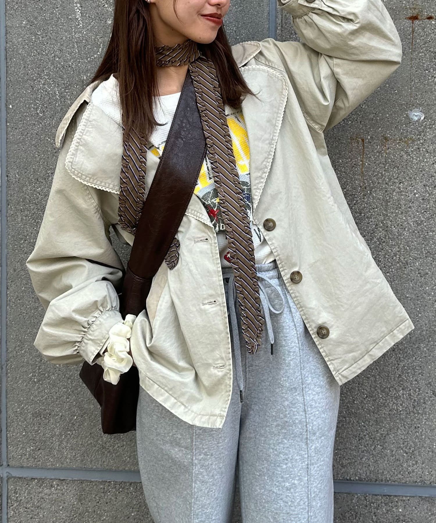 ビッグカラーと配色レースが効いた、古着ライクなトレンチジャケット。