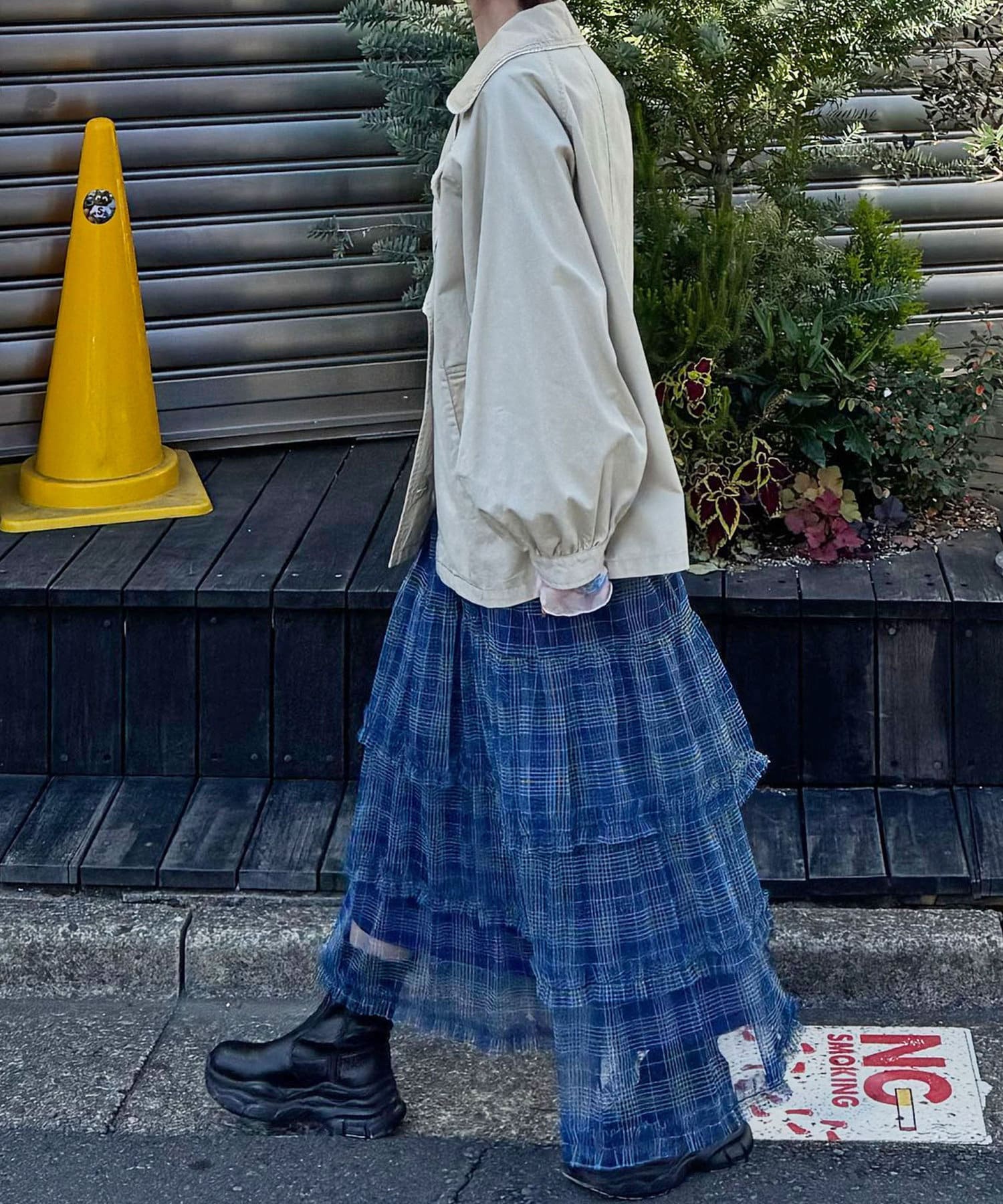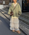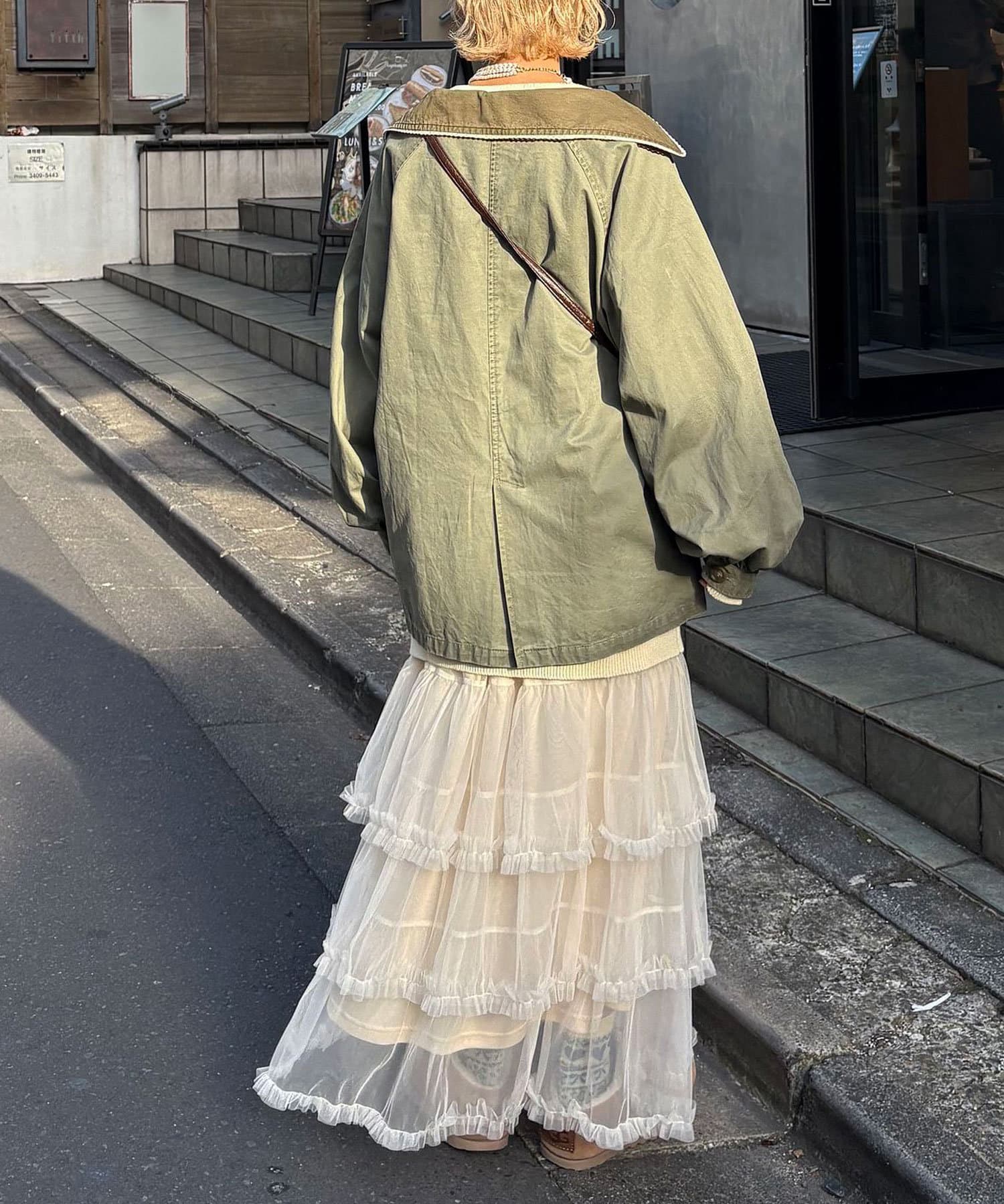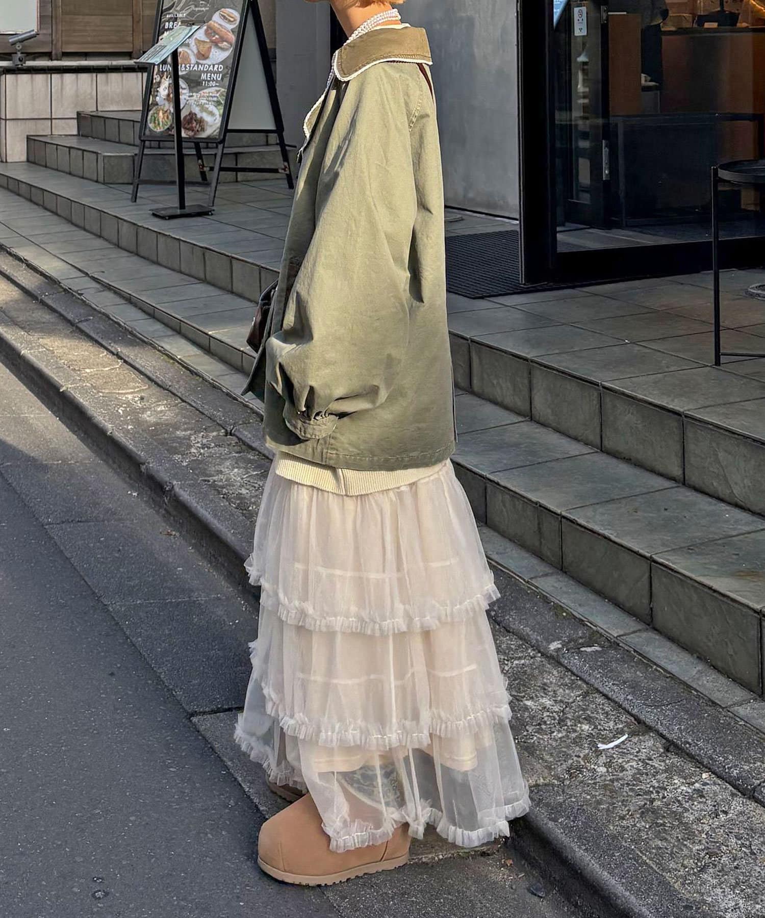 チュールスカートやレーススカート、ワンピースなどと合わせたフェミニンなスタイリングがおすすめです。