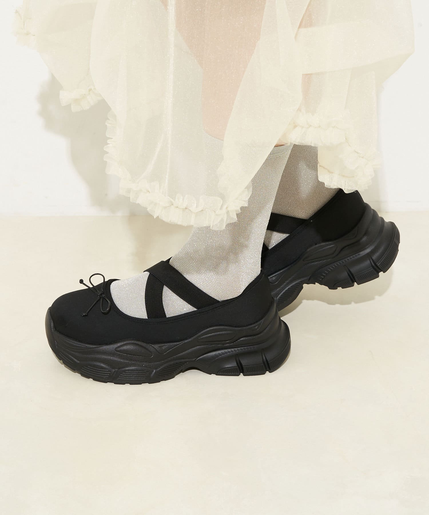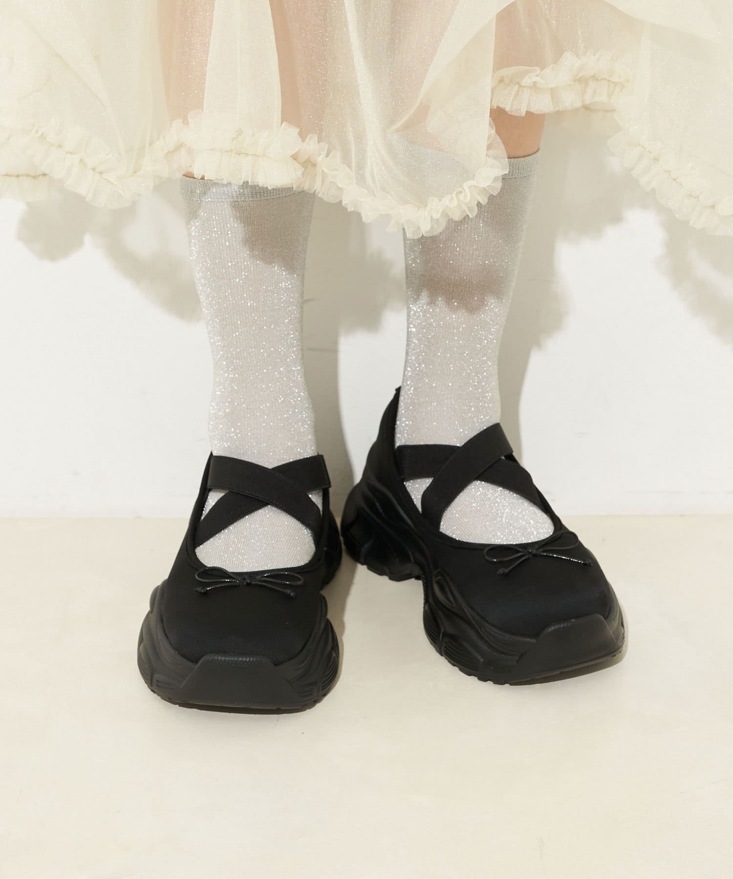 バレエコアルックが叶うクロスリボンメリージェーン