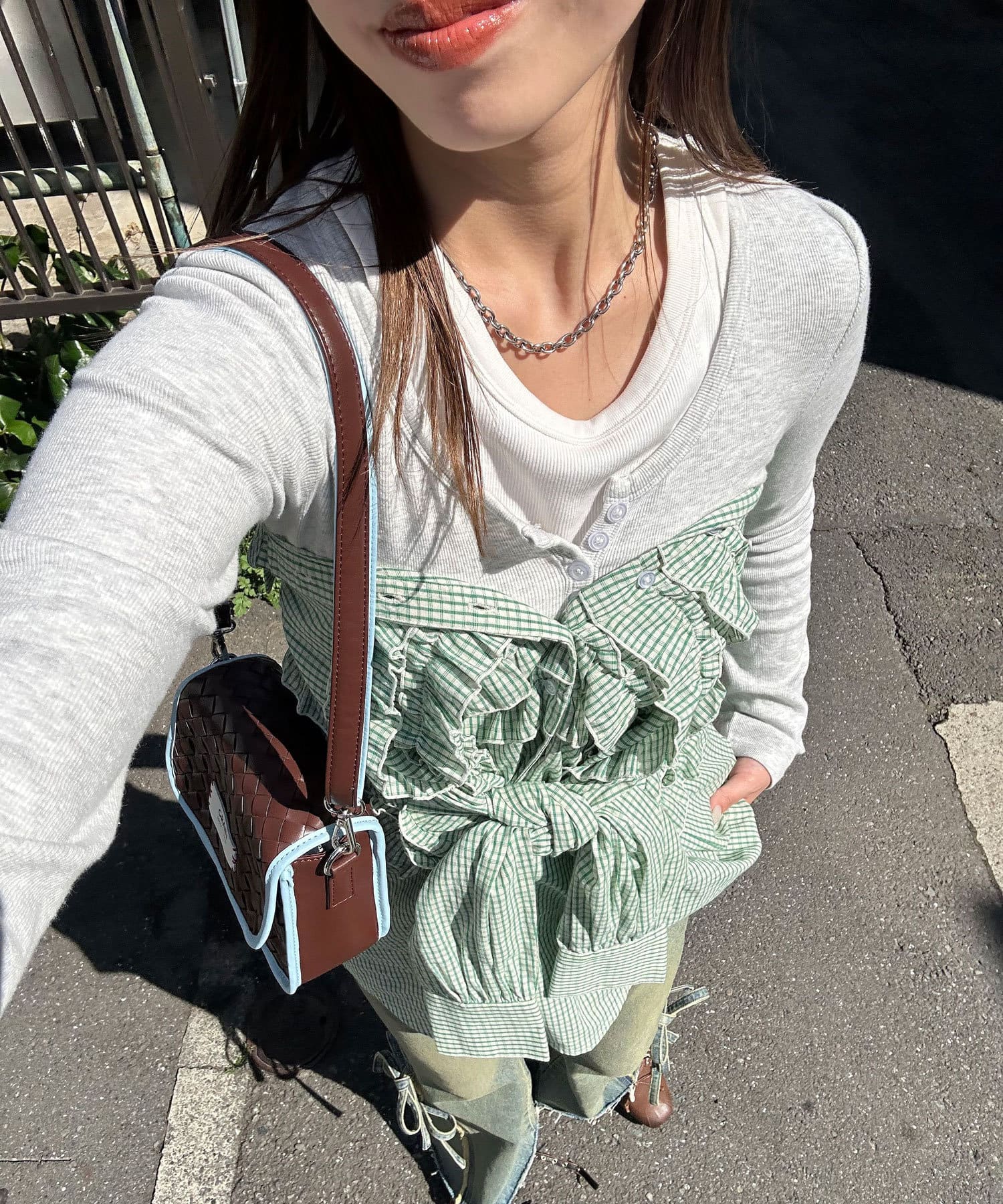 1枚でお洒落見えするフリルシャツ