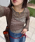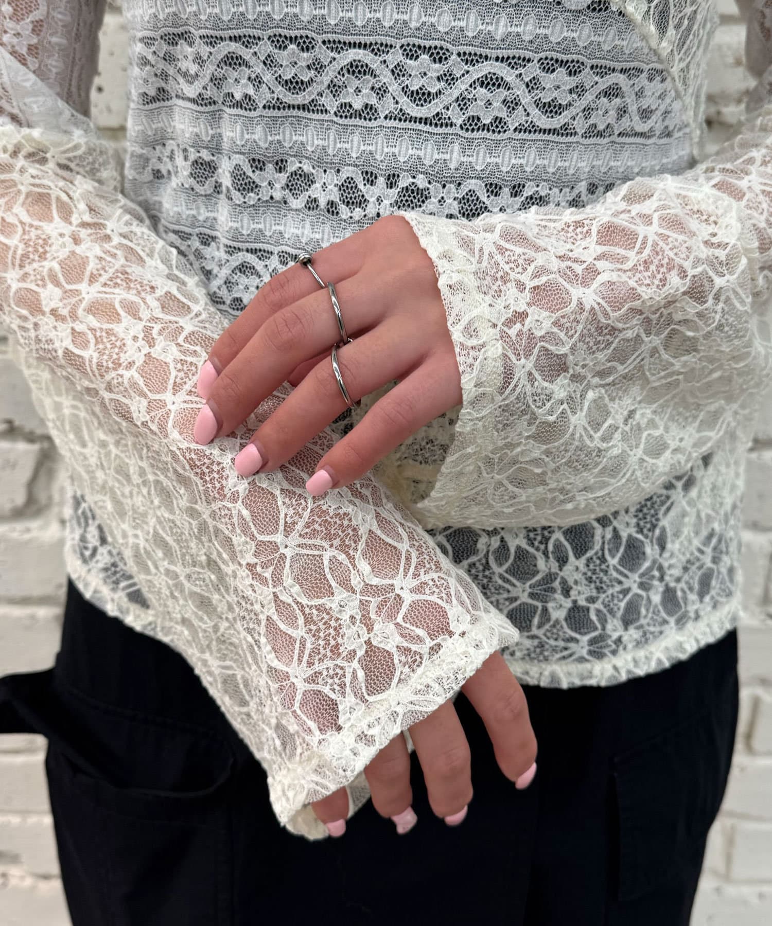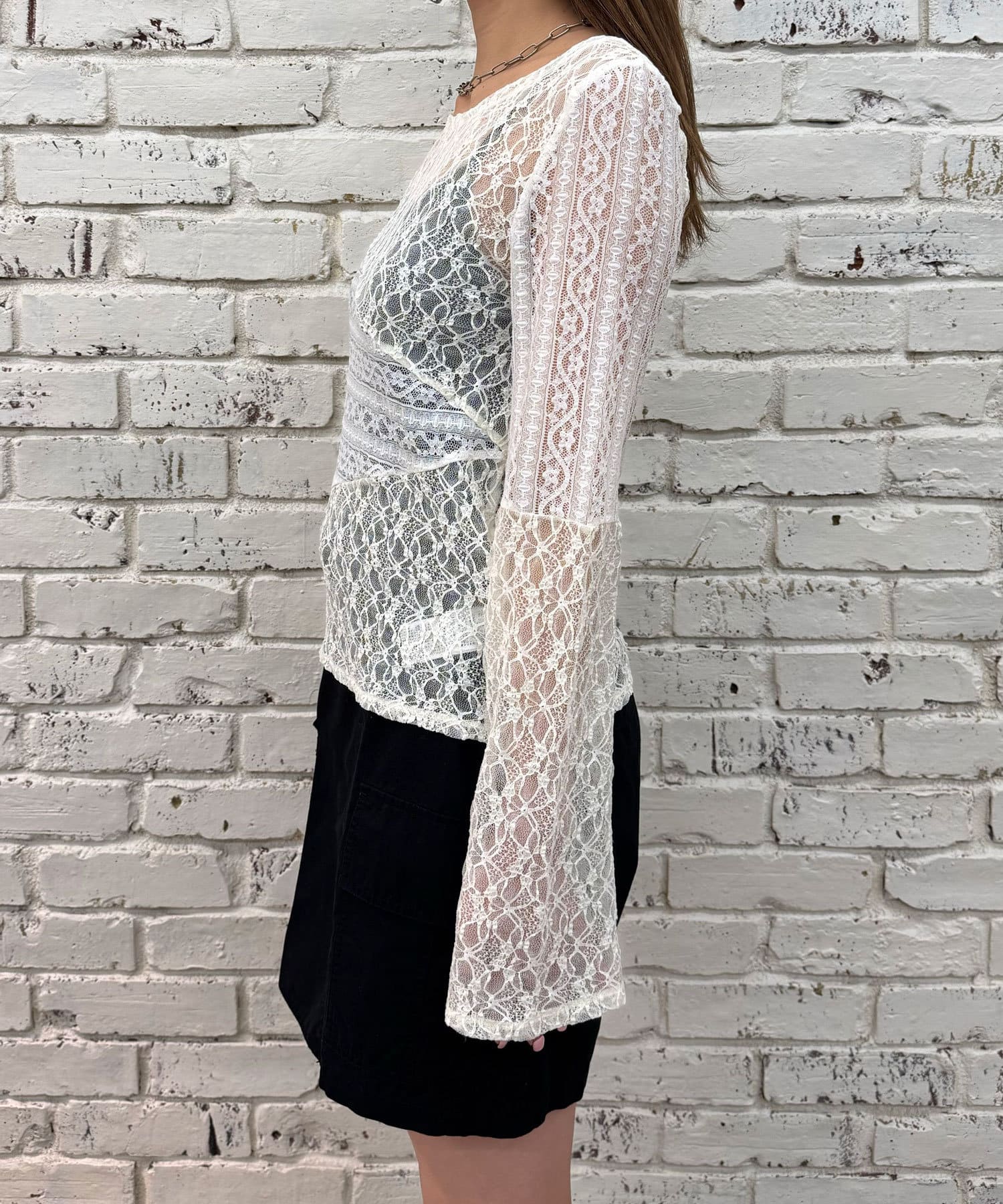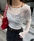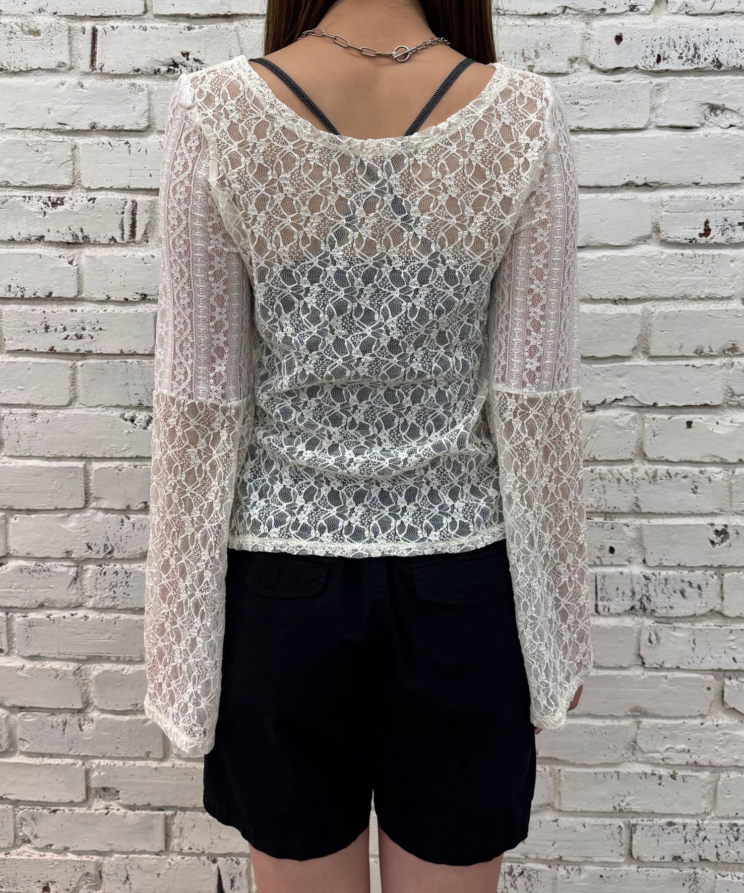繊細なレースが贅沢にあしらわれたロングスリーブトップス。