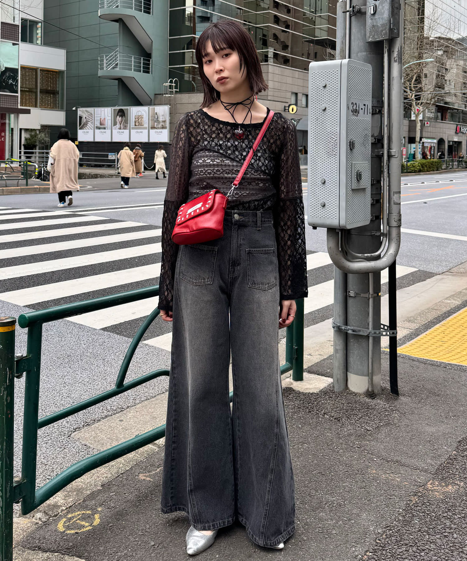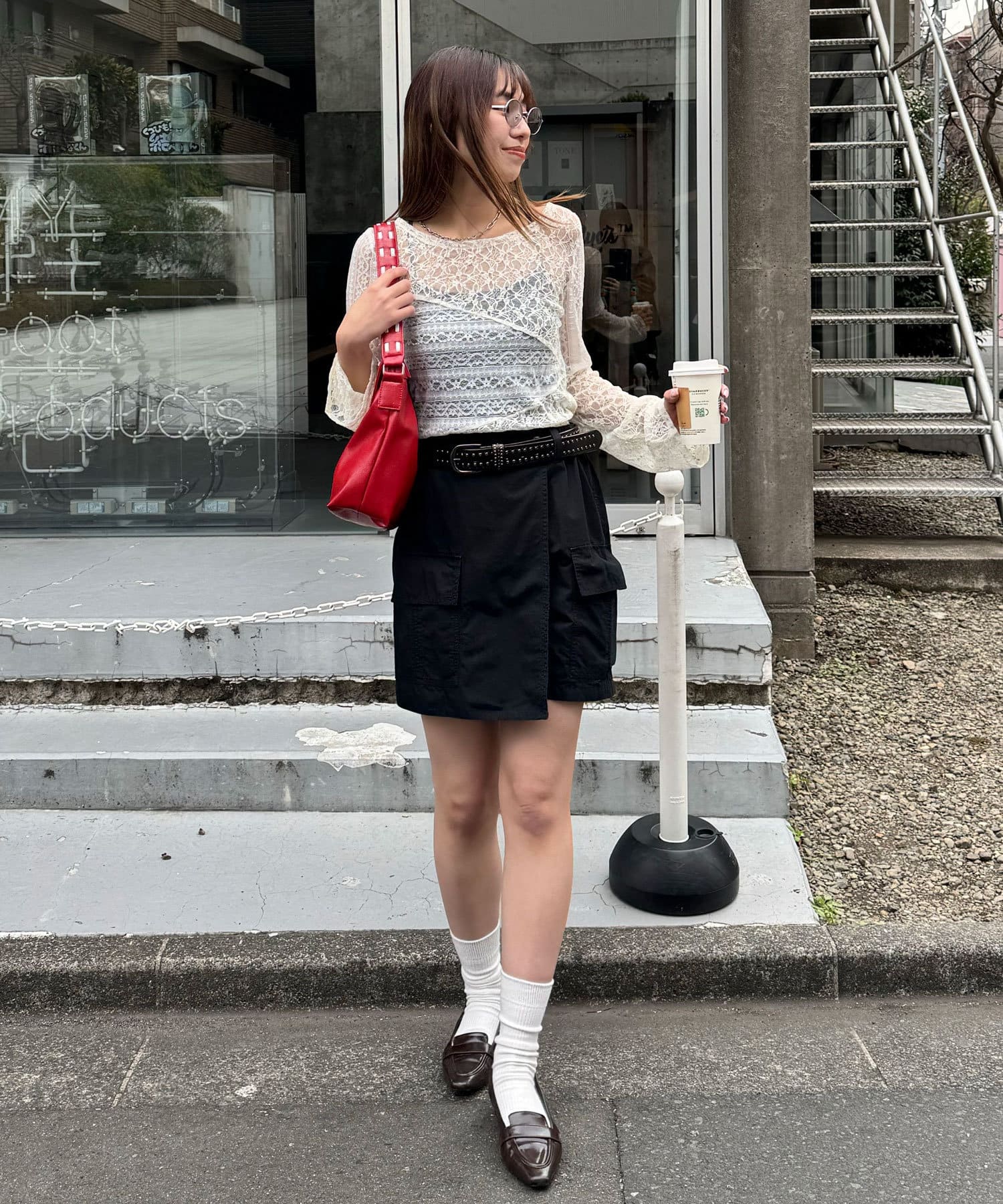 少し細みのシルエットになるので、太めのパンツや裾の広がっているスカートにとても合います!