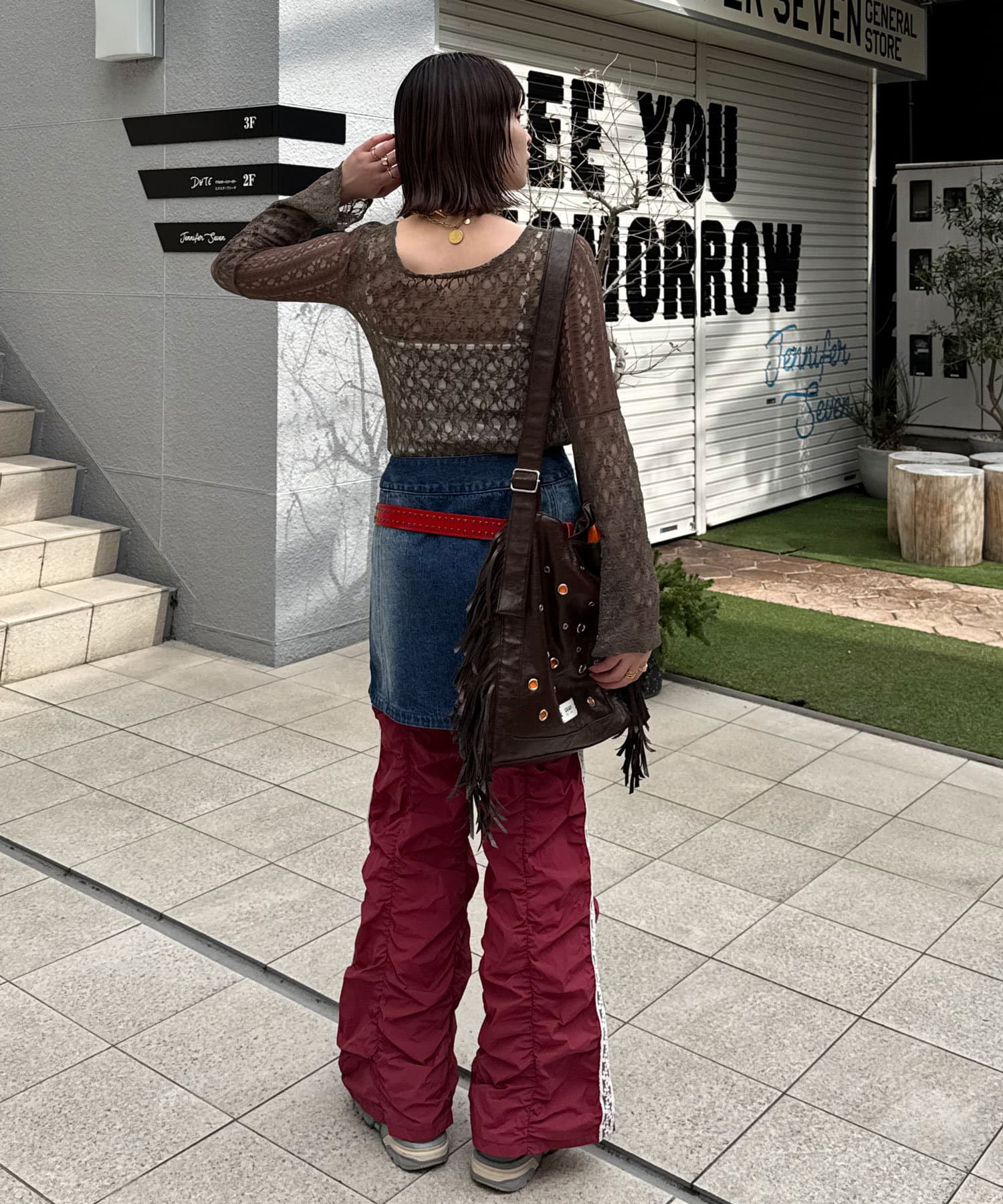 アースカラーだからいっきにボヘミアンぽさが出て、めちゃくちゃ好みでした。デニムにも、個人的にはスウェットパンツやトラックパンツに合わせても可愛いと思います。