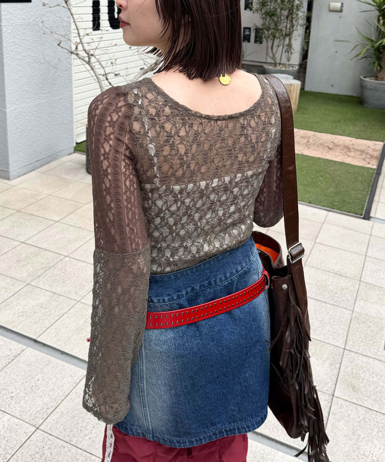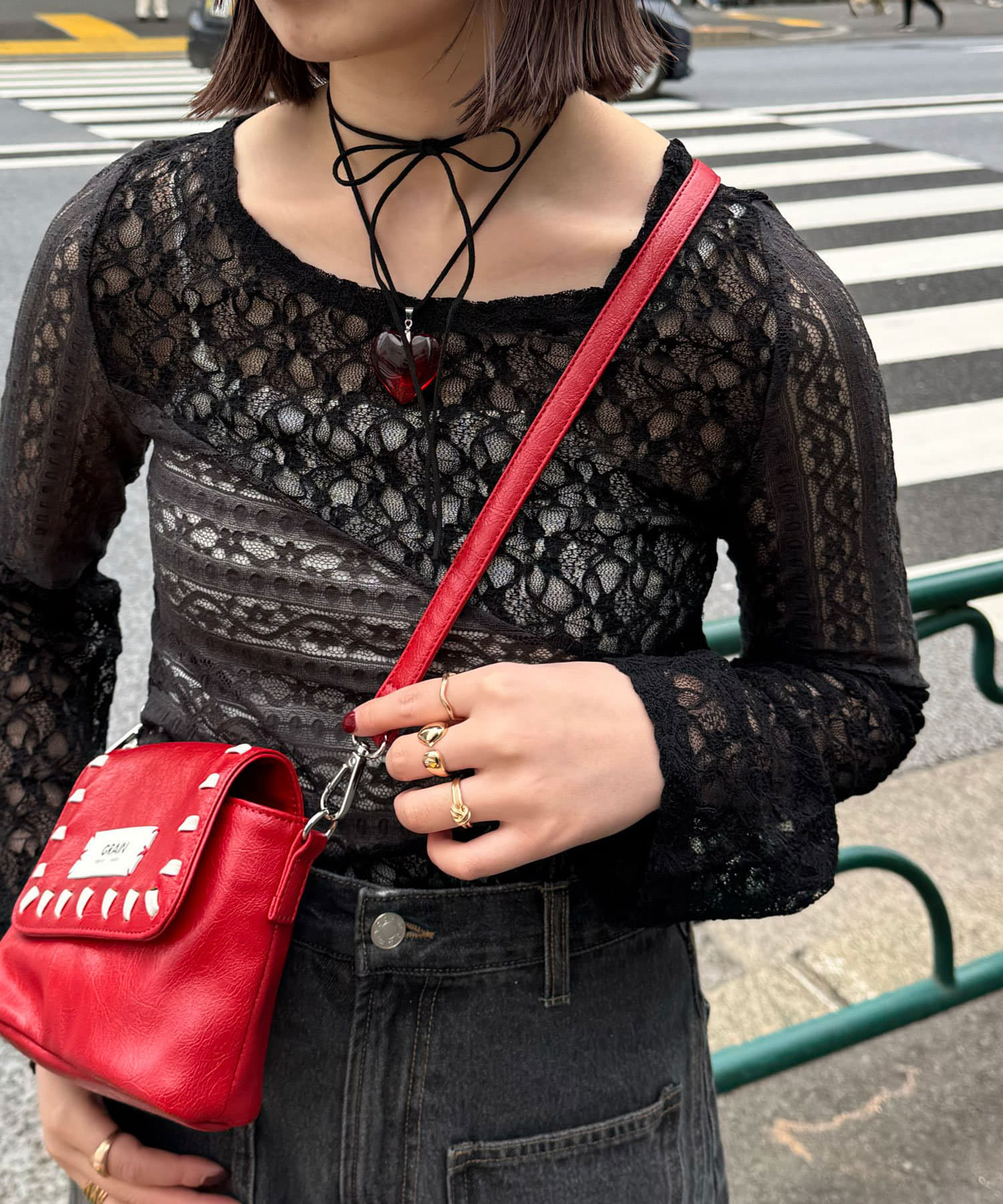 ●デリケートなレース素材を使用しております。表面の粗い物に擦ったりバックやベルト、先の鋭い物に引っ掛けますとささくれや糸が浮き易く、切れる事もあります。お取り扱いには十分にご注意ください。