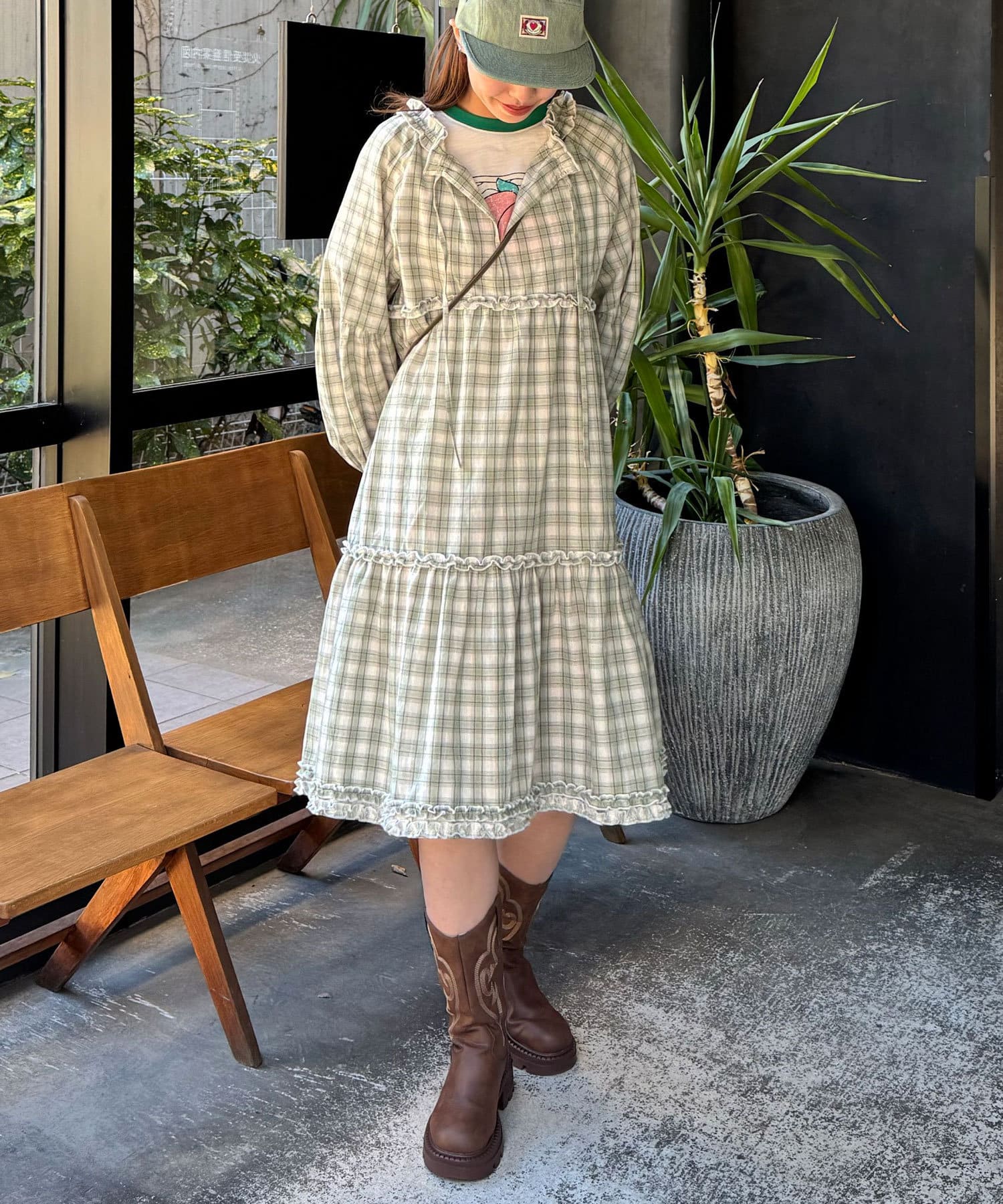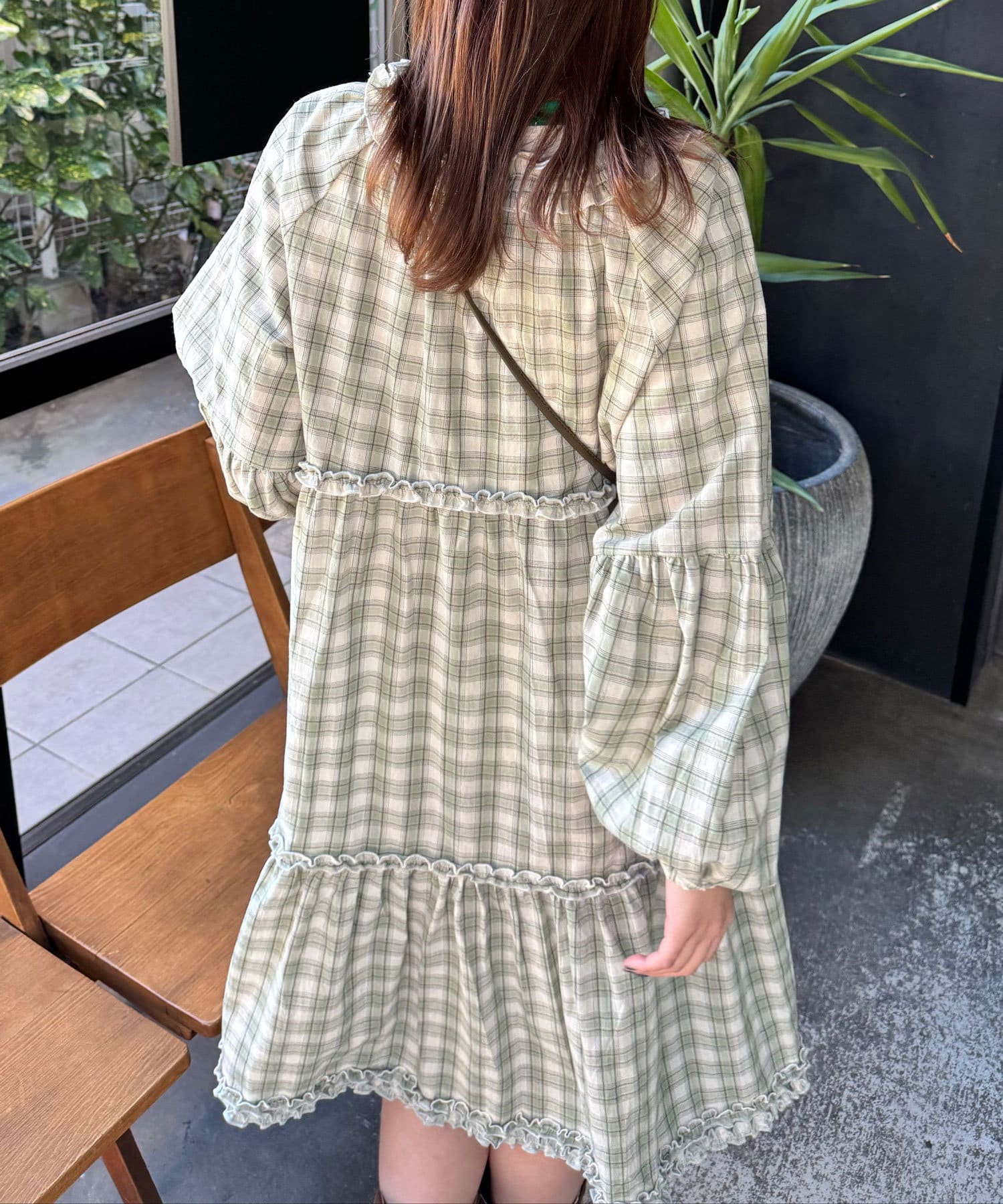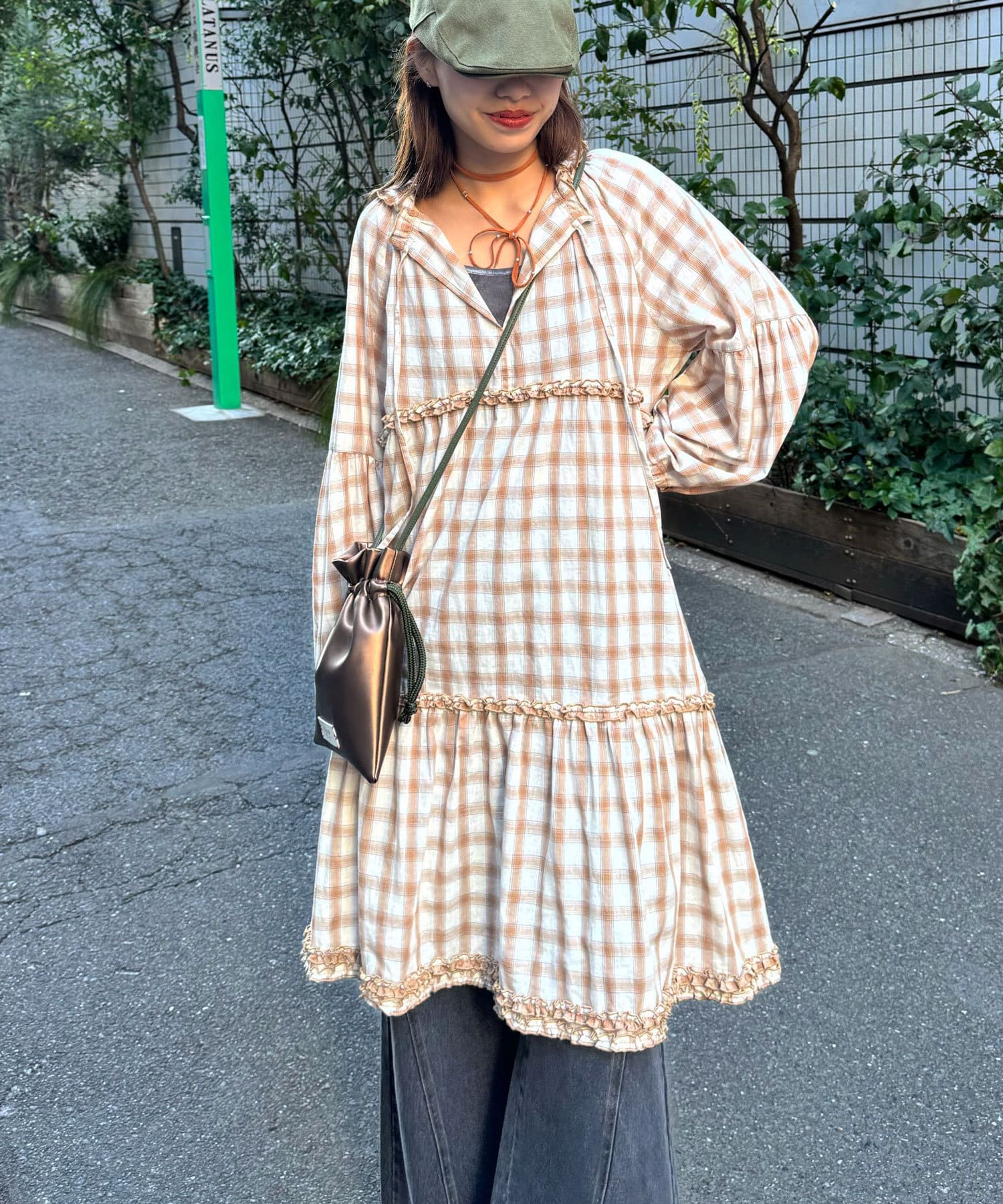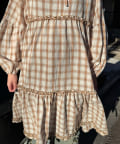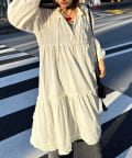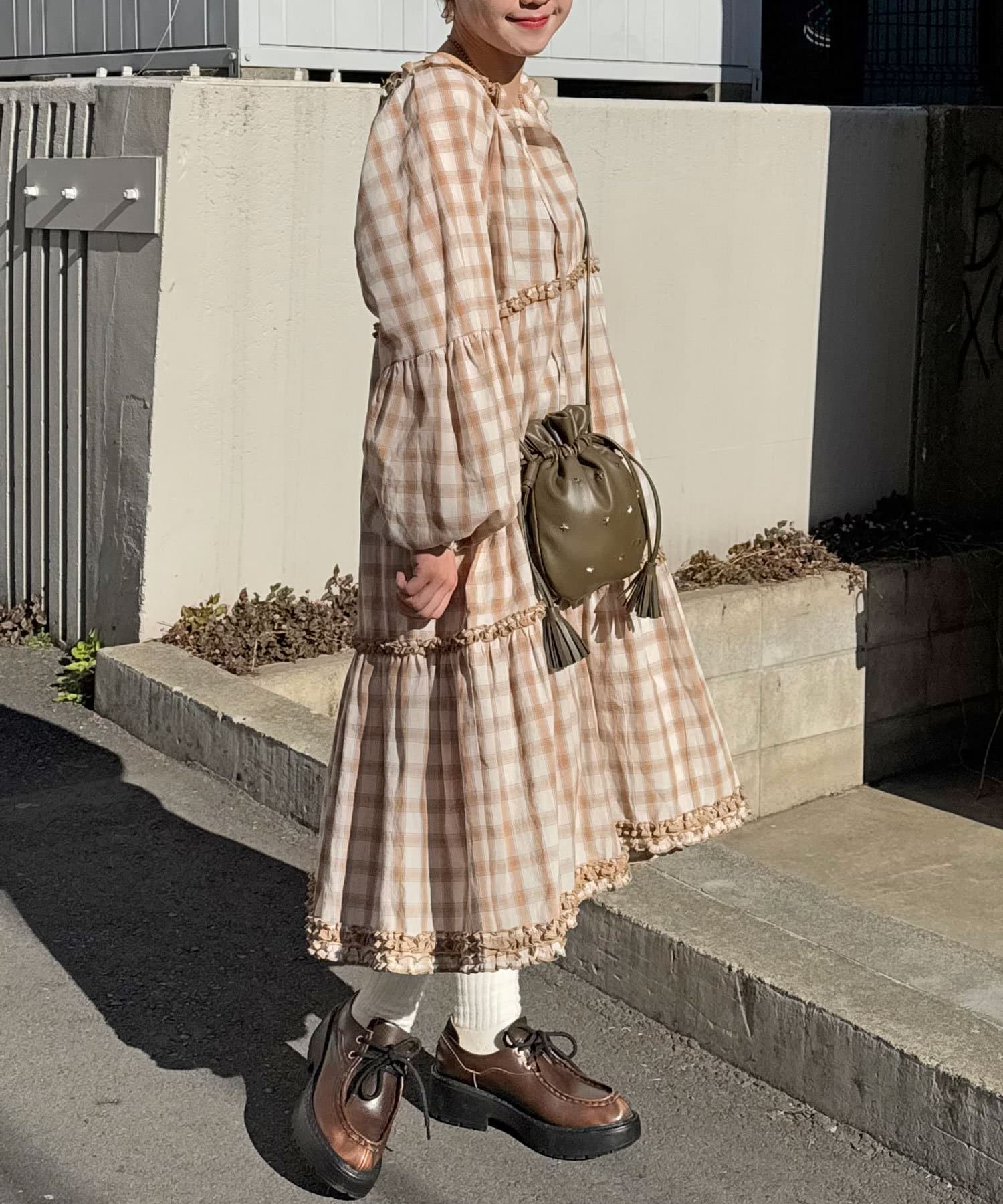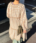 ふんわりとしたシルエットと優しい色合いが魅力のワンピース。