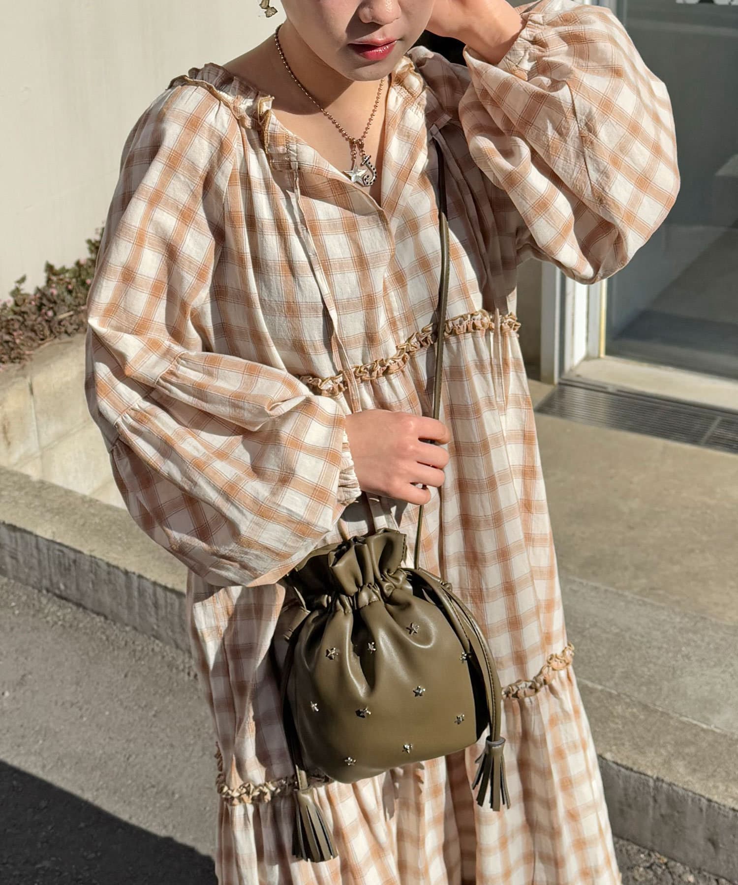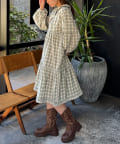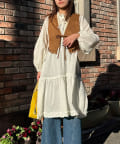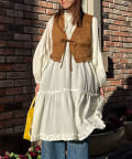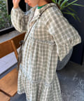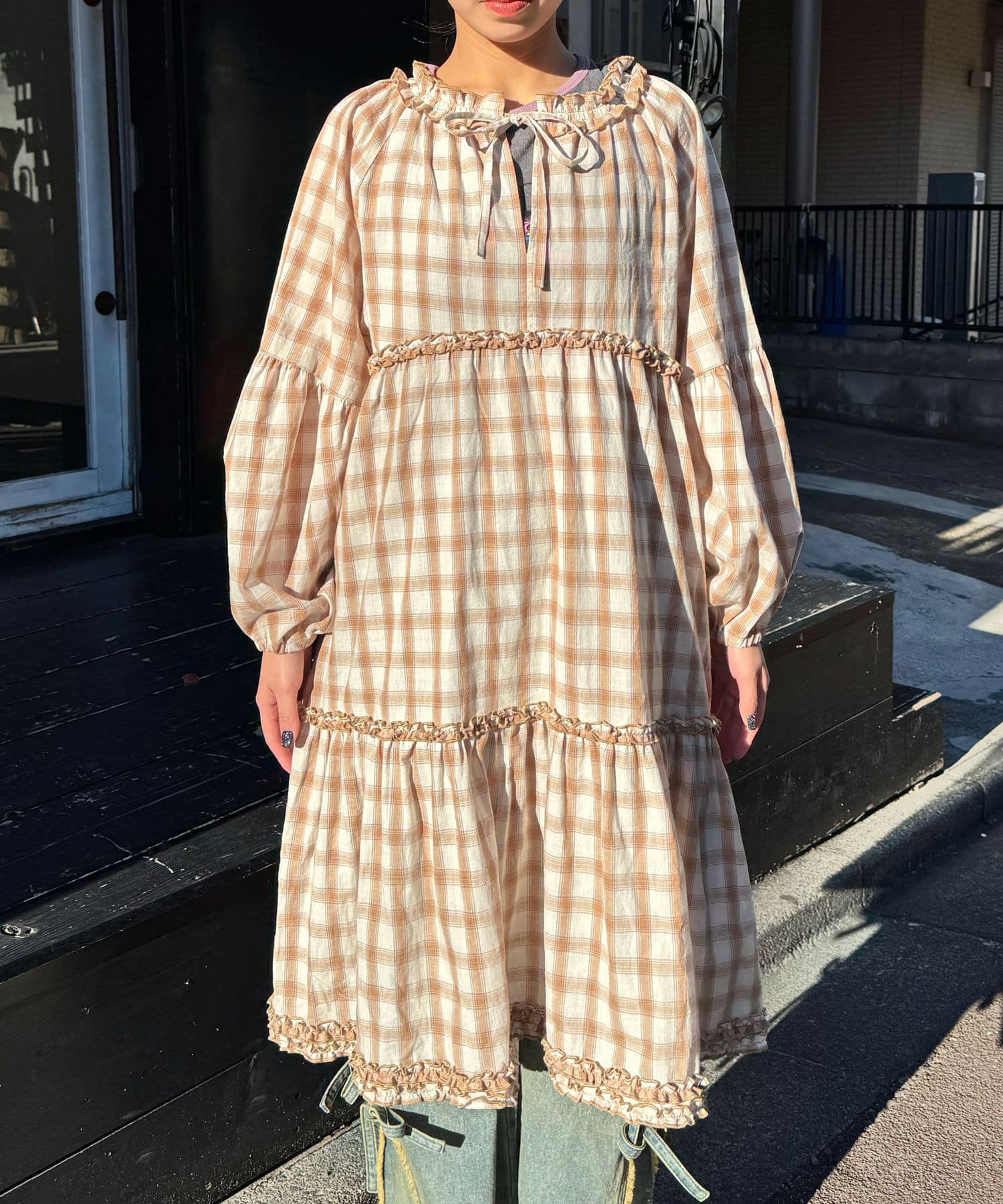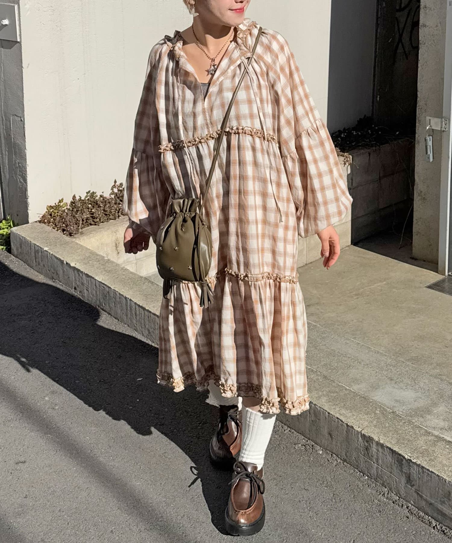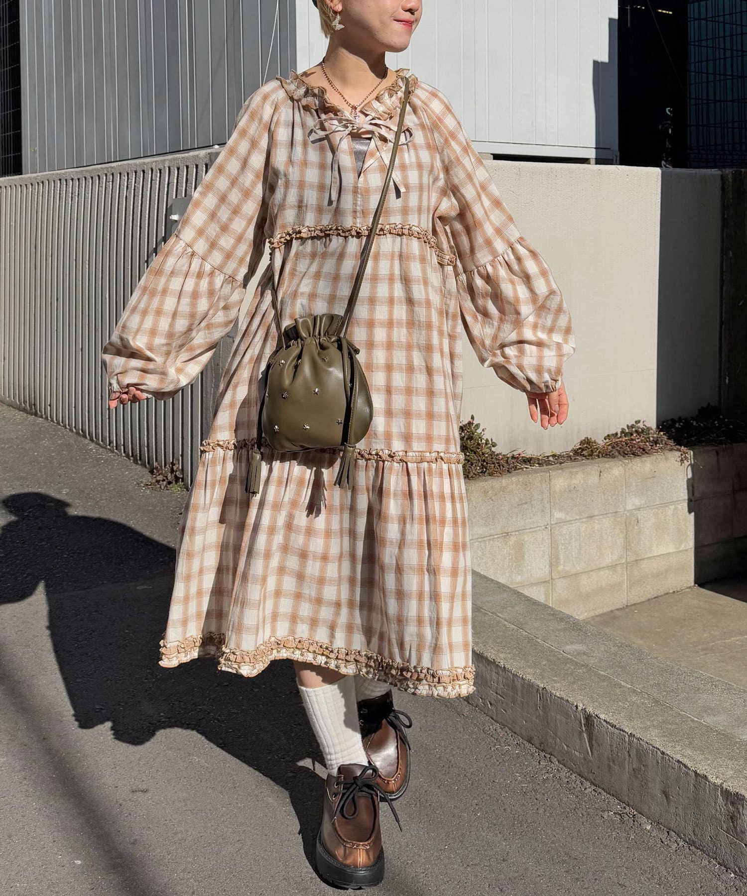ふんわりとしたシルエットと優しい色合いが魅力のワンピース。
