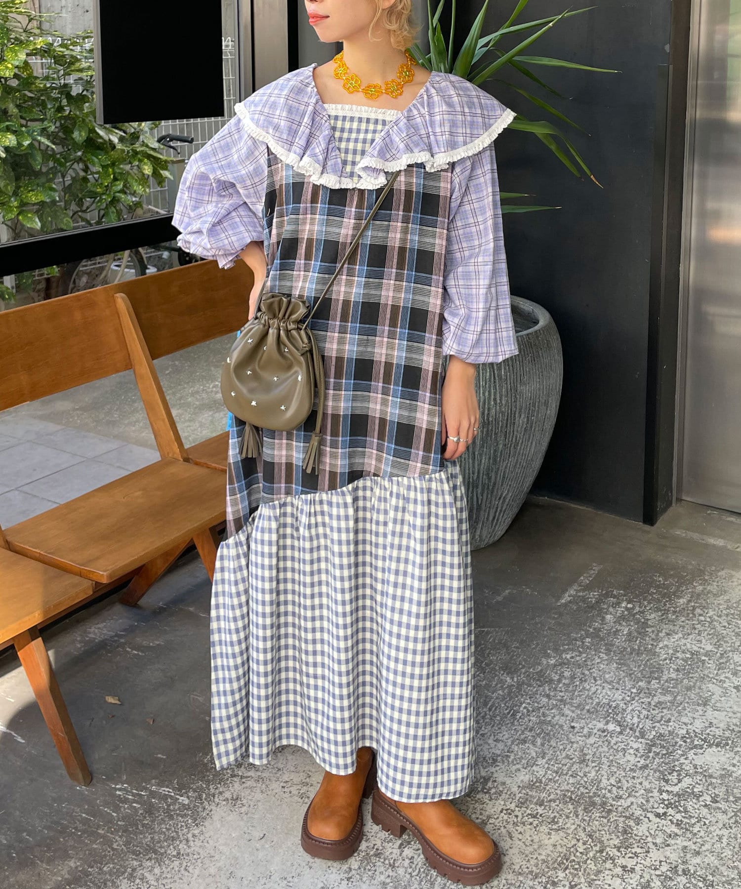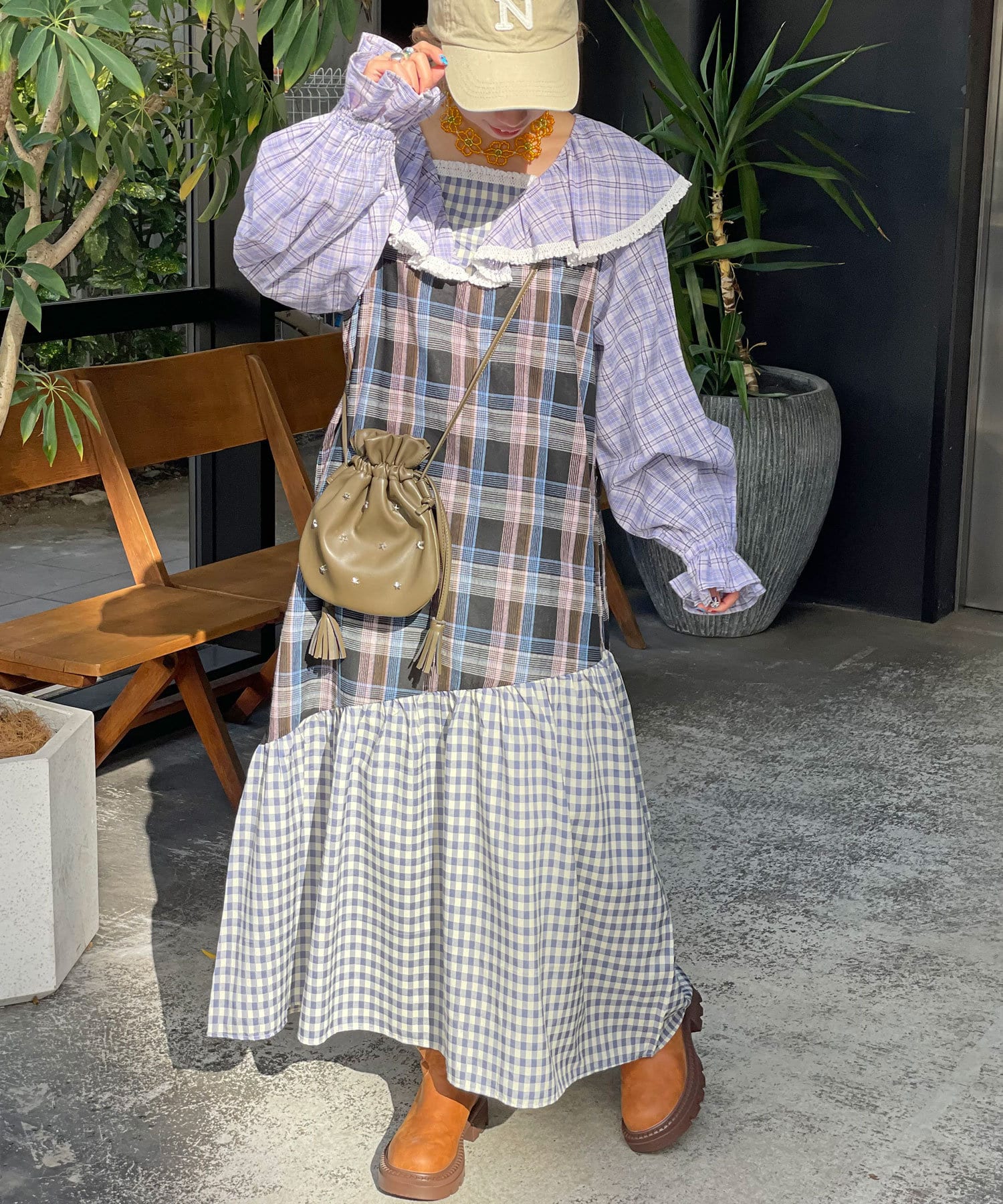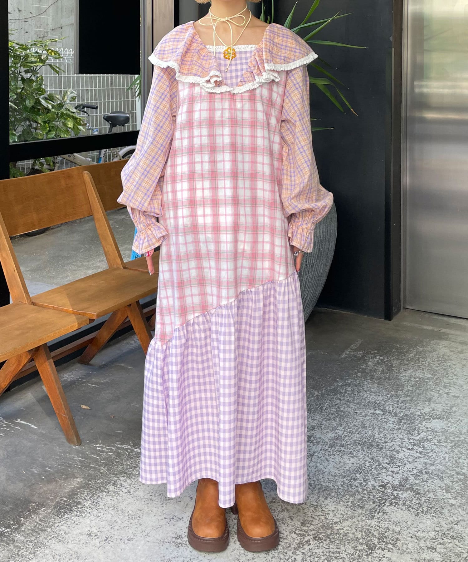 【Ciaopanic】H.Sパッチワークチェックロングワンピース