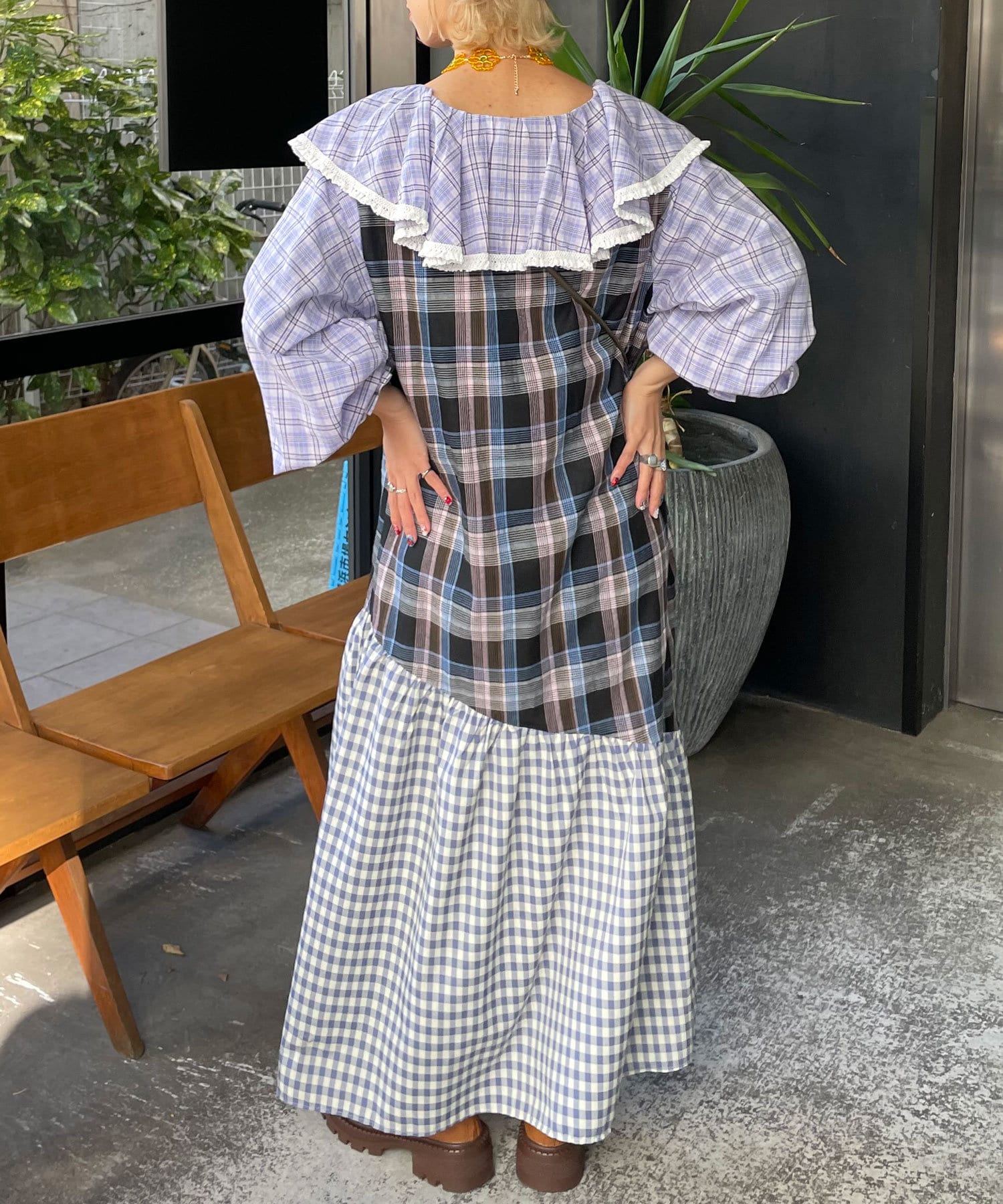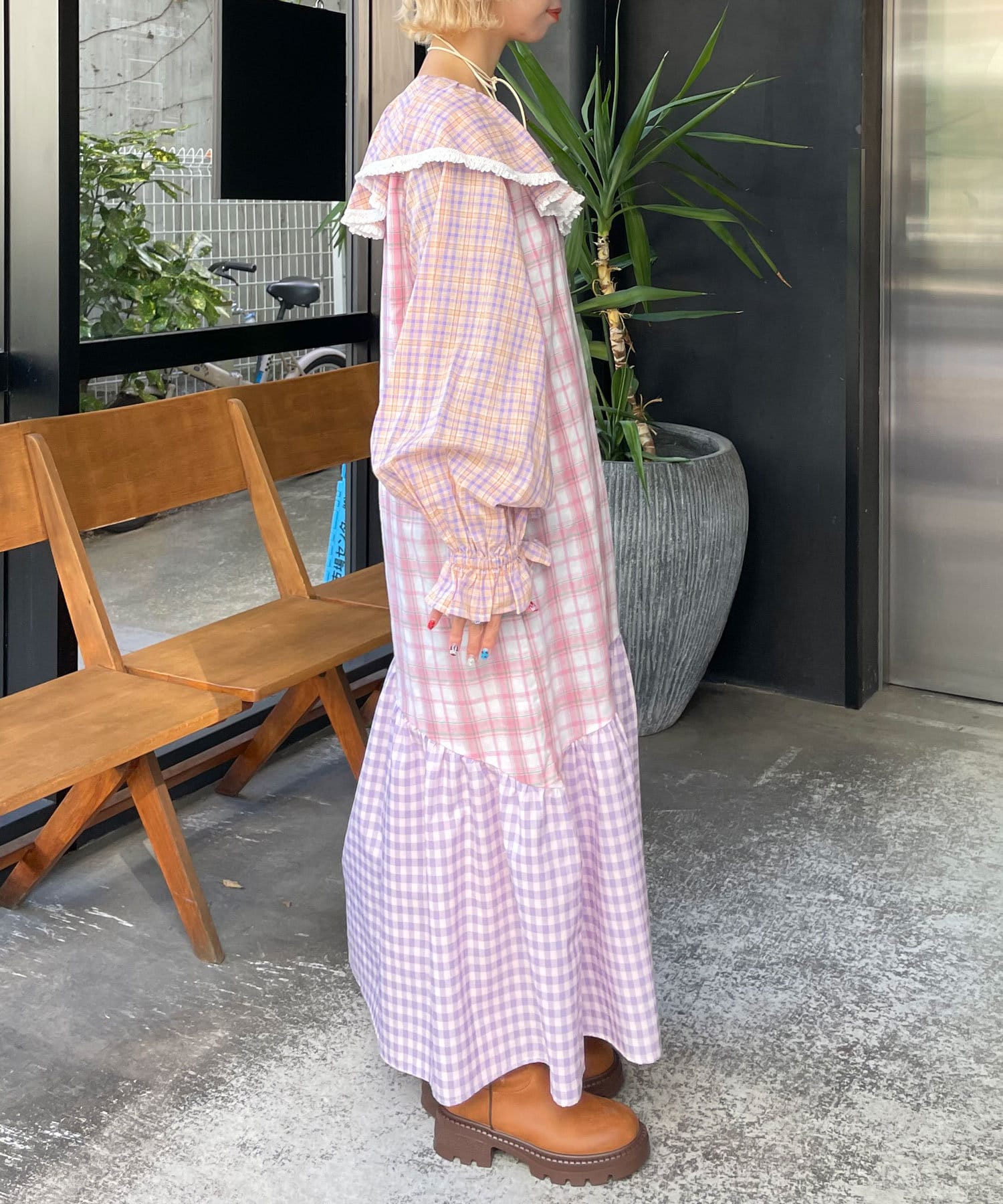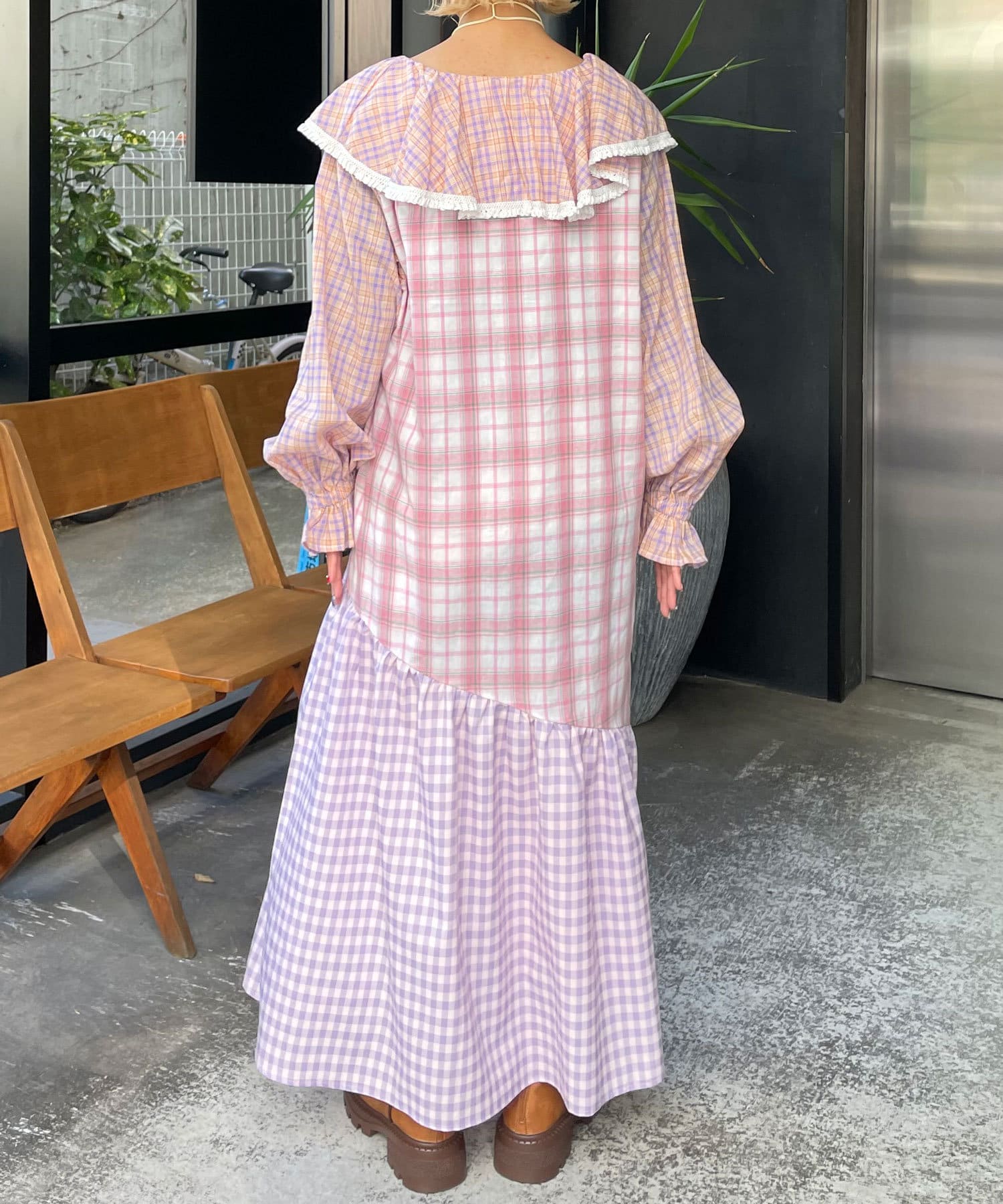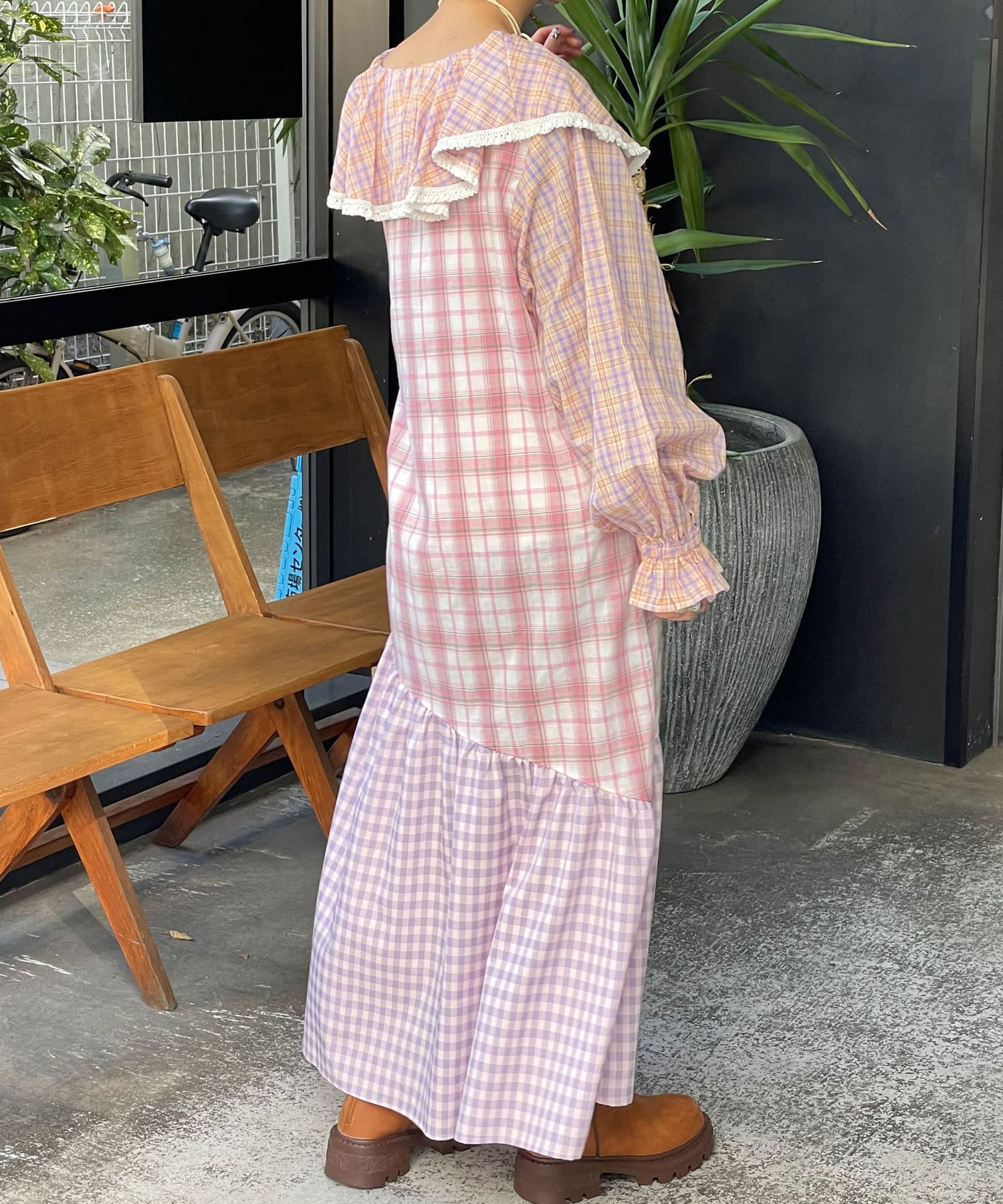 【Ciaopanic】H.Sパッチワークチェックロングワンピース
