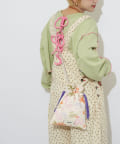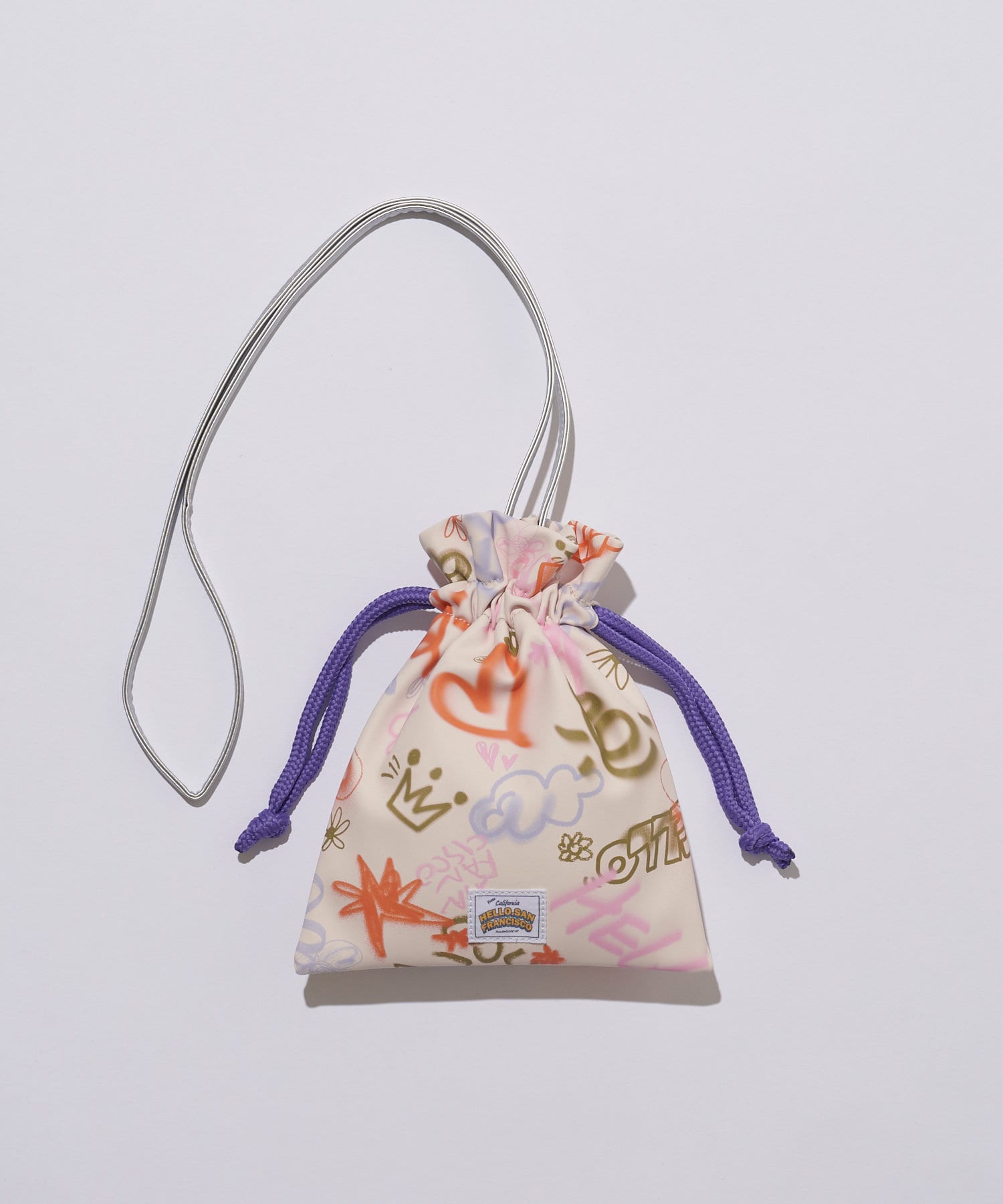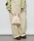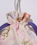 手書き風のポップなイラストが目を惹く巾着ショルダーバッグ