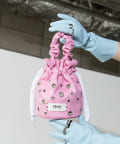 開け閉めが簡単な巾着型で、財布やポーチなどの必需品がしっかり入る収納力も魅力。