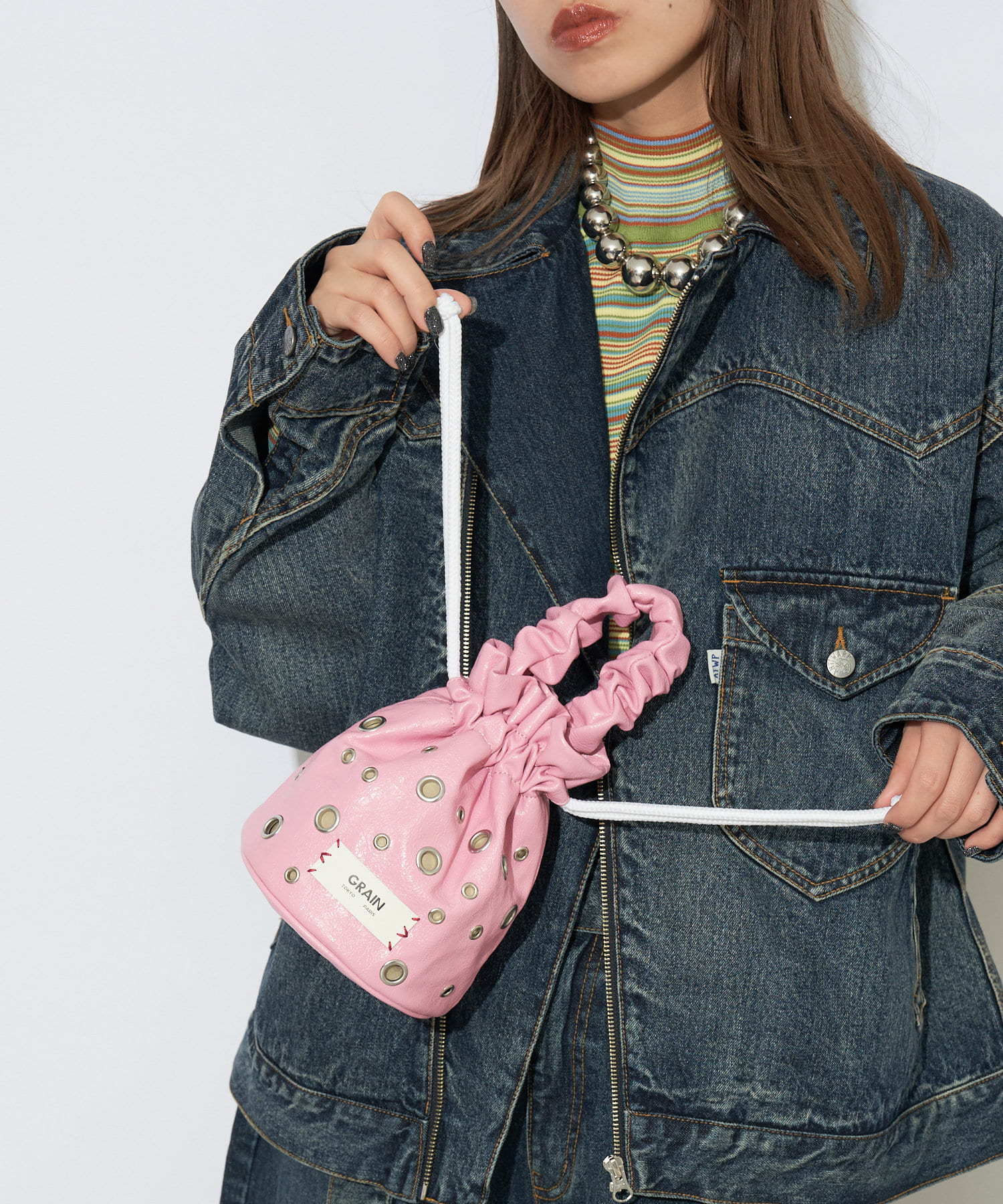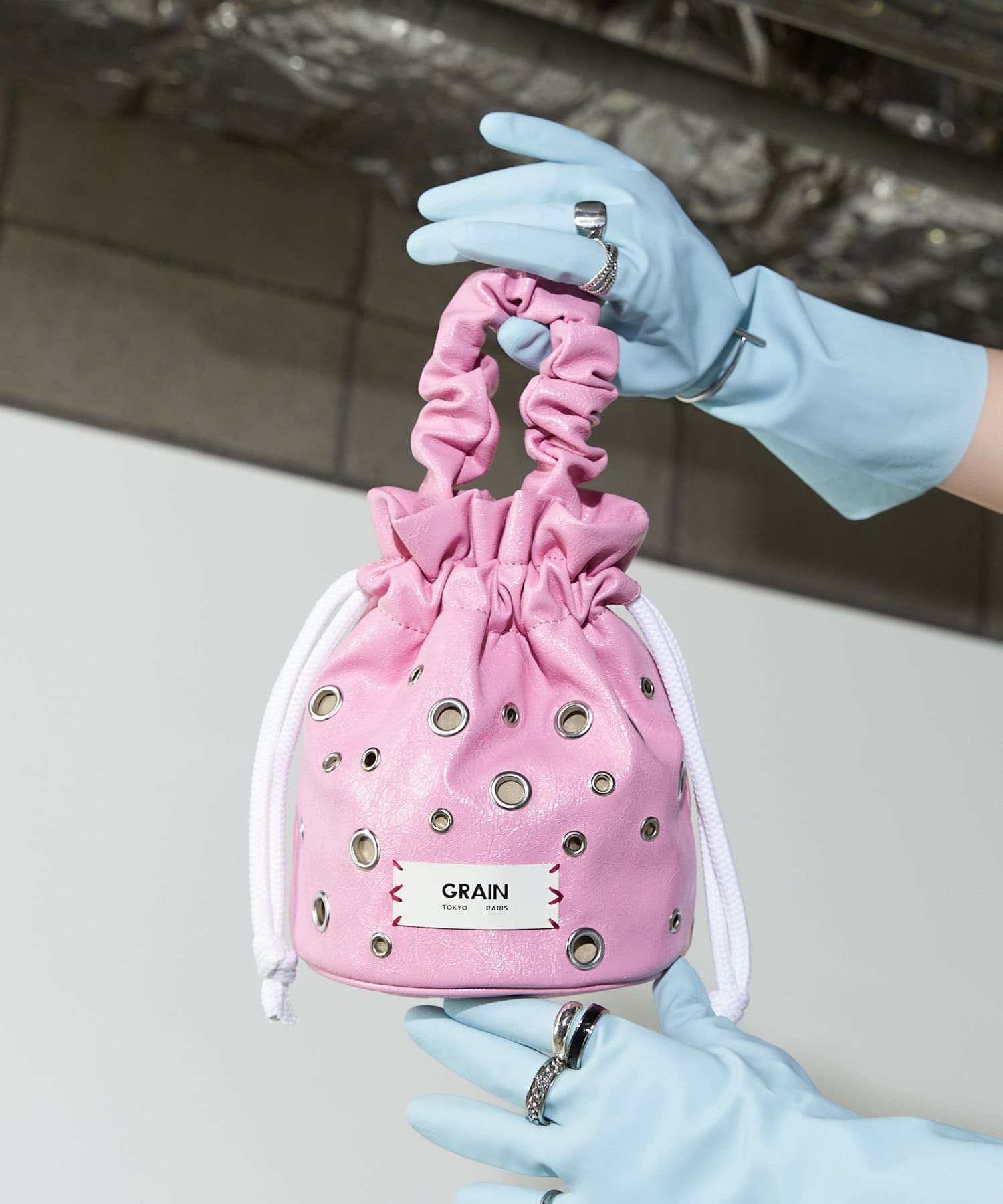 【GRAIN/グレイン】ハトメギャザーハンドル巾着ラウンドバッグ