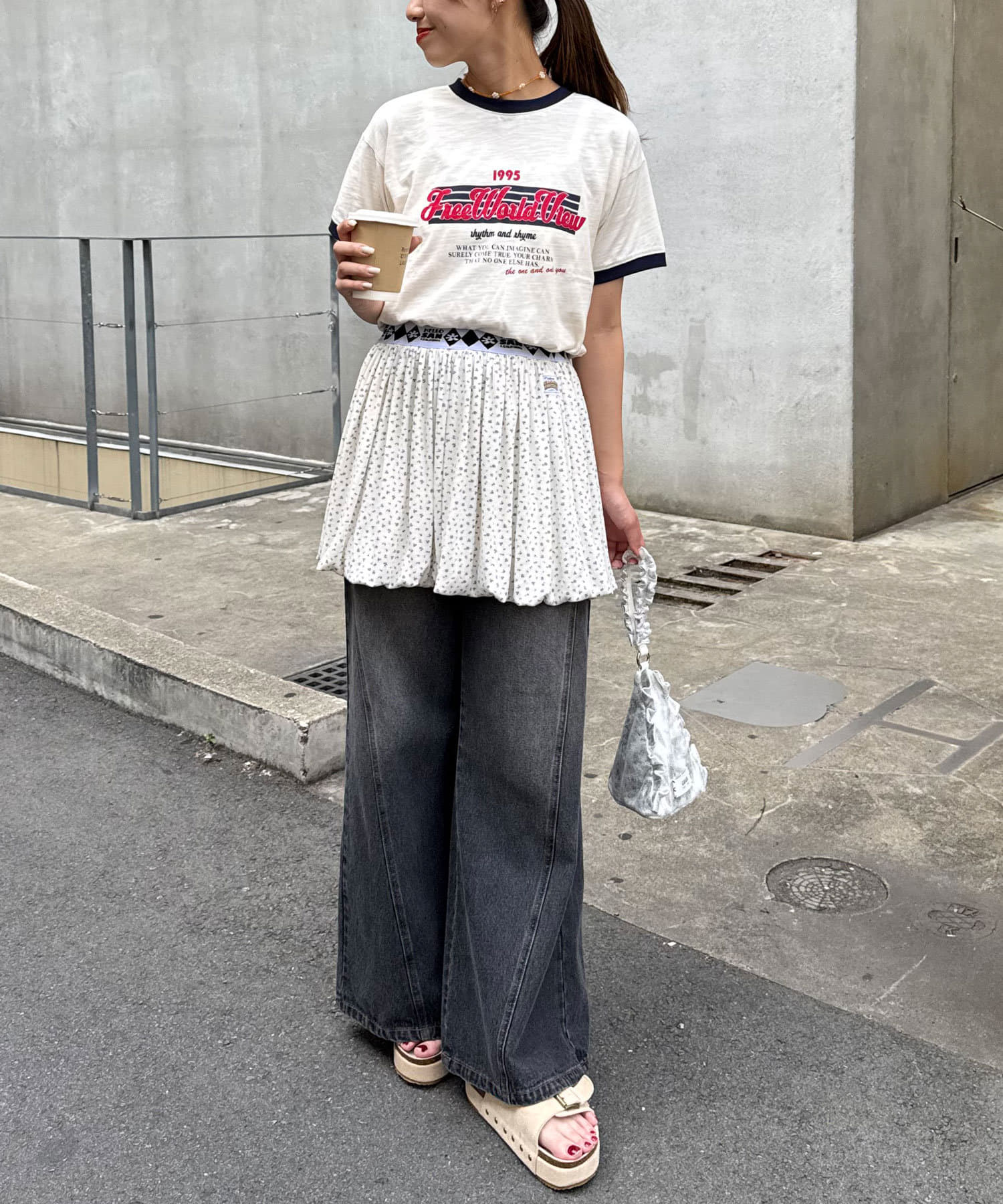 シンプルなトップスやTシャツと合わせるだけで、即おしゃれなコーディネートが完成!