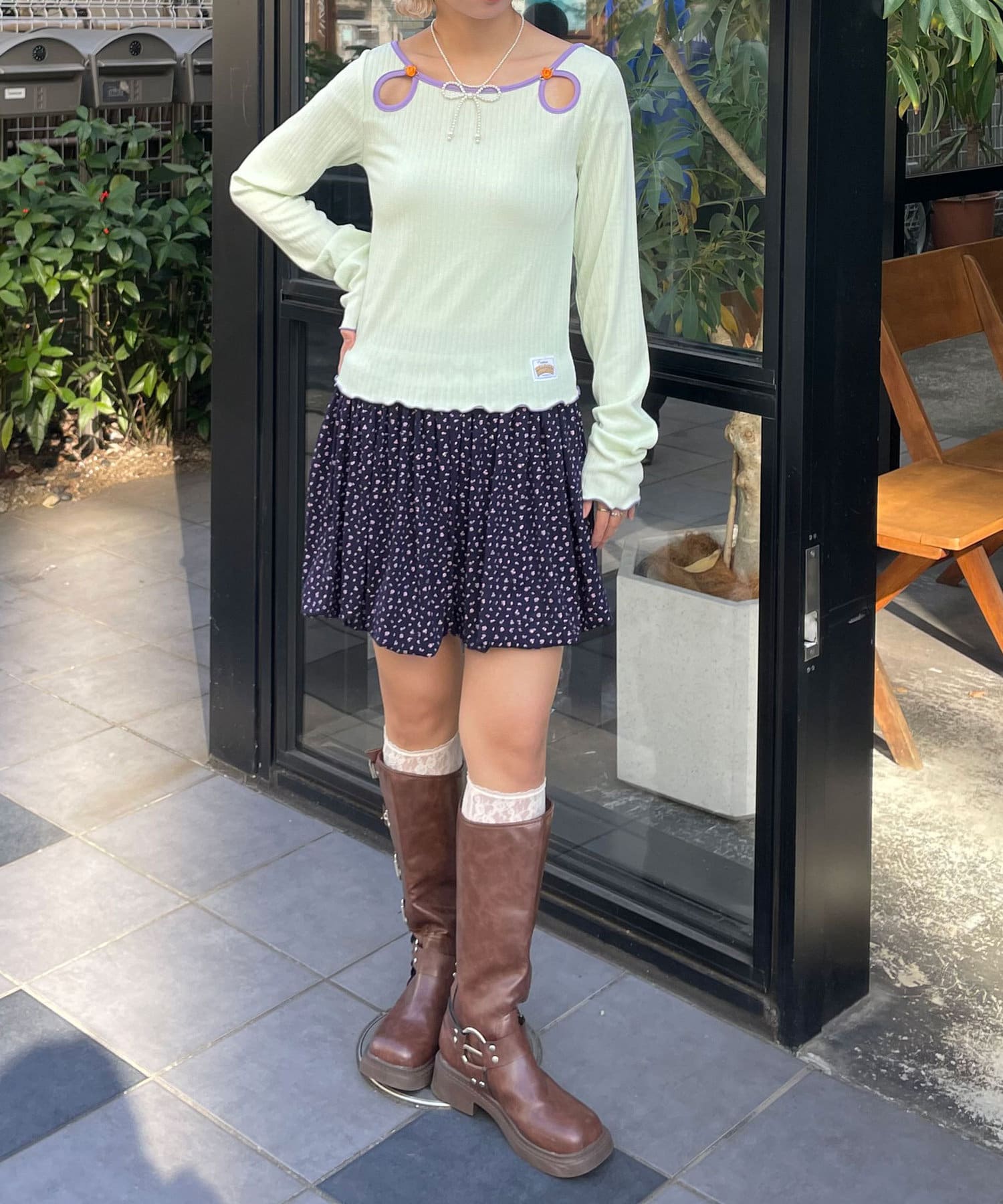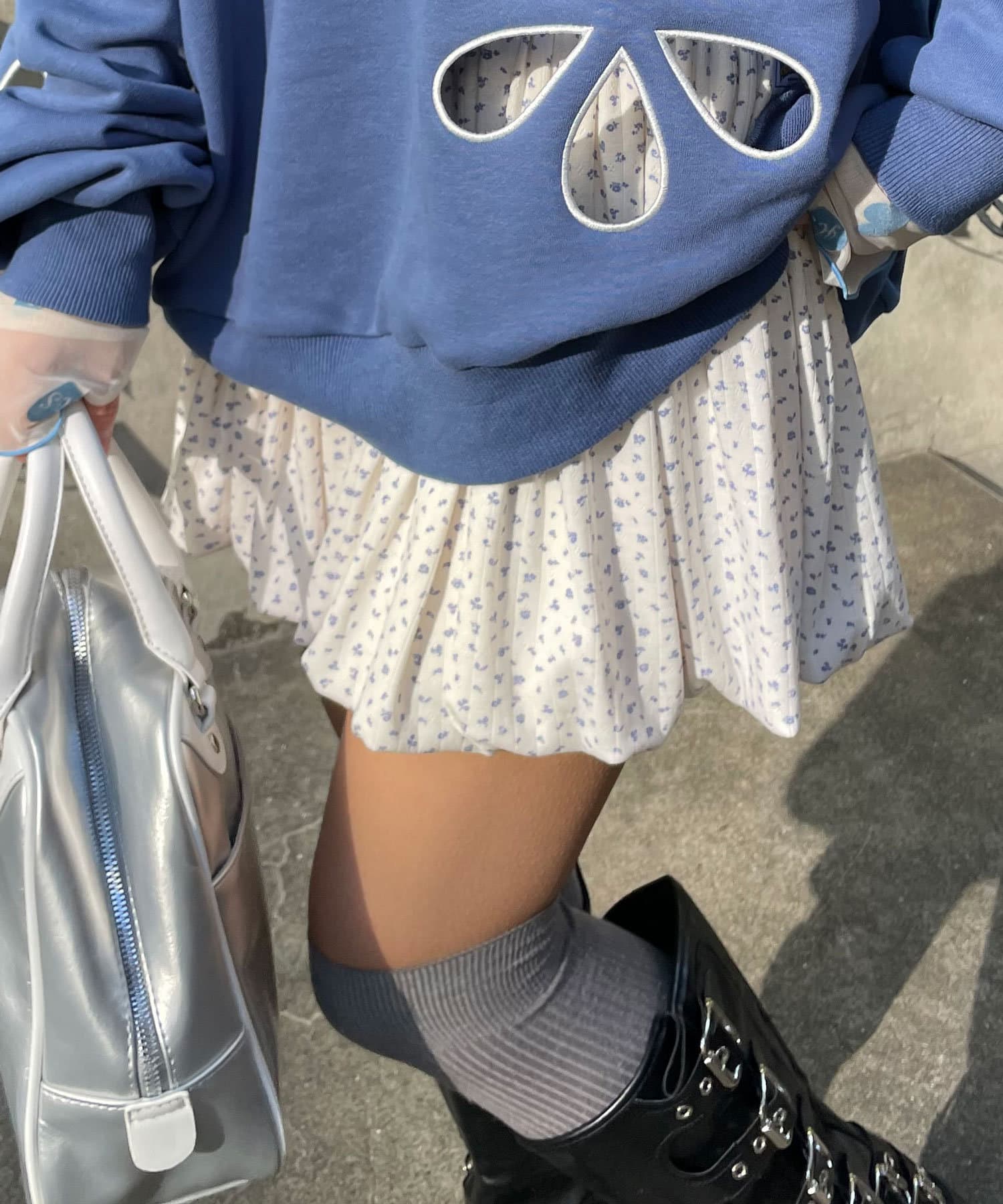 ガーリーで可愛さ満点の小花柄ミニスカート。