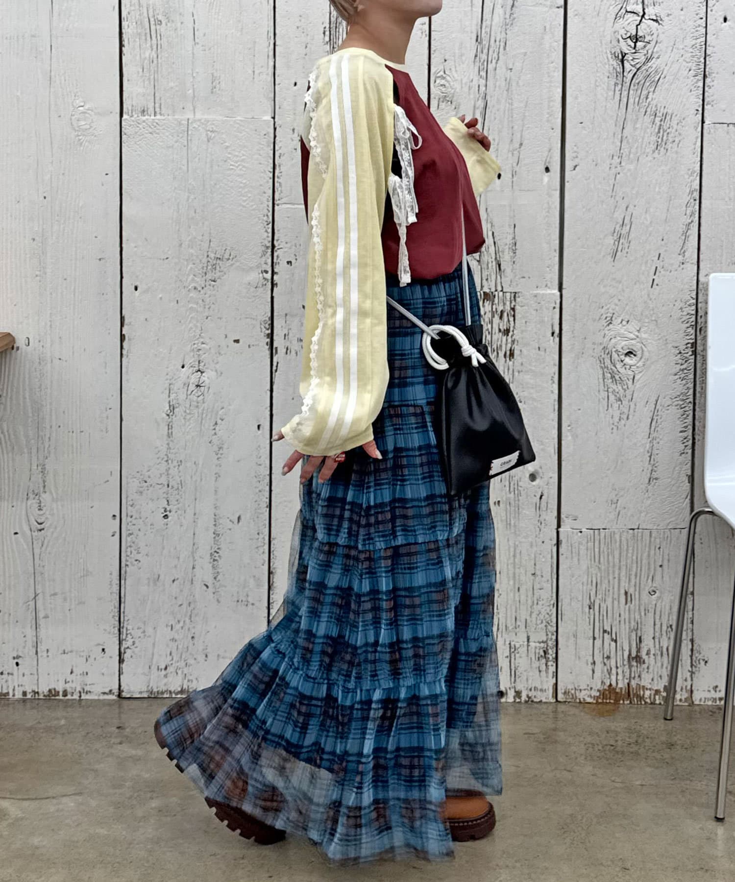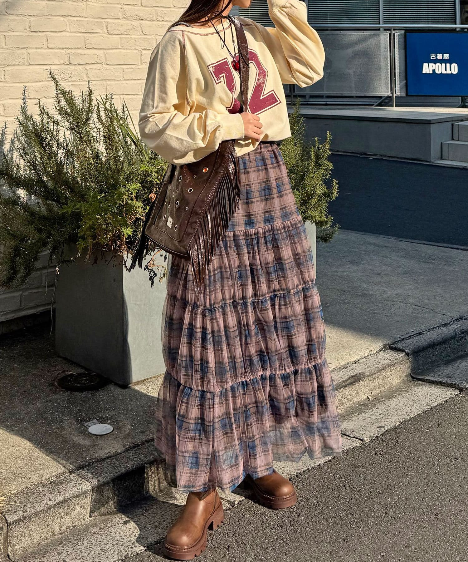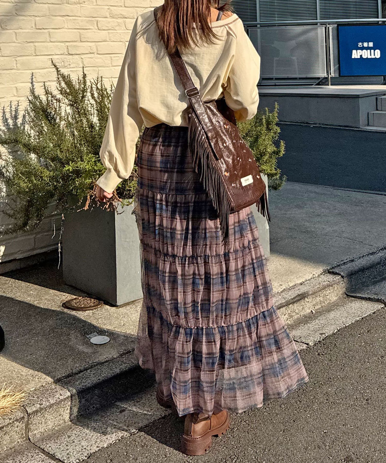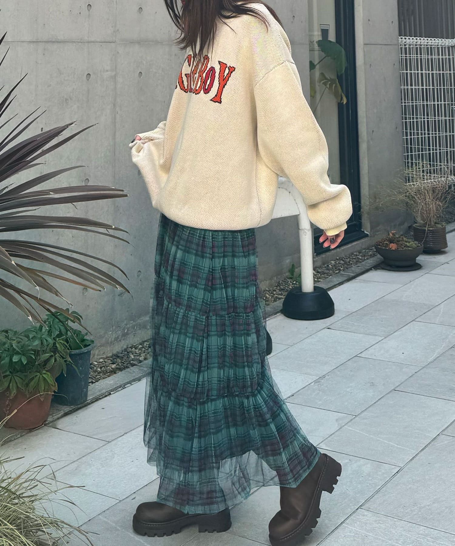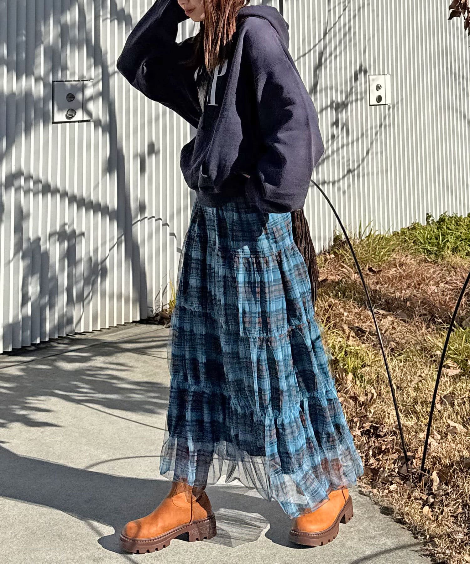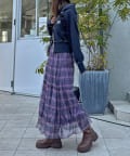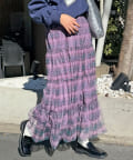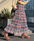 ふんわり広がるチュールティアードバルーンチェックスカート。