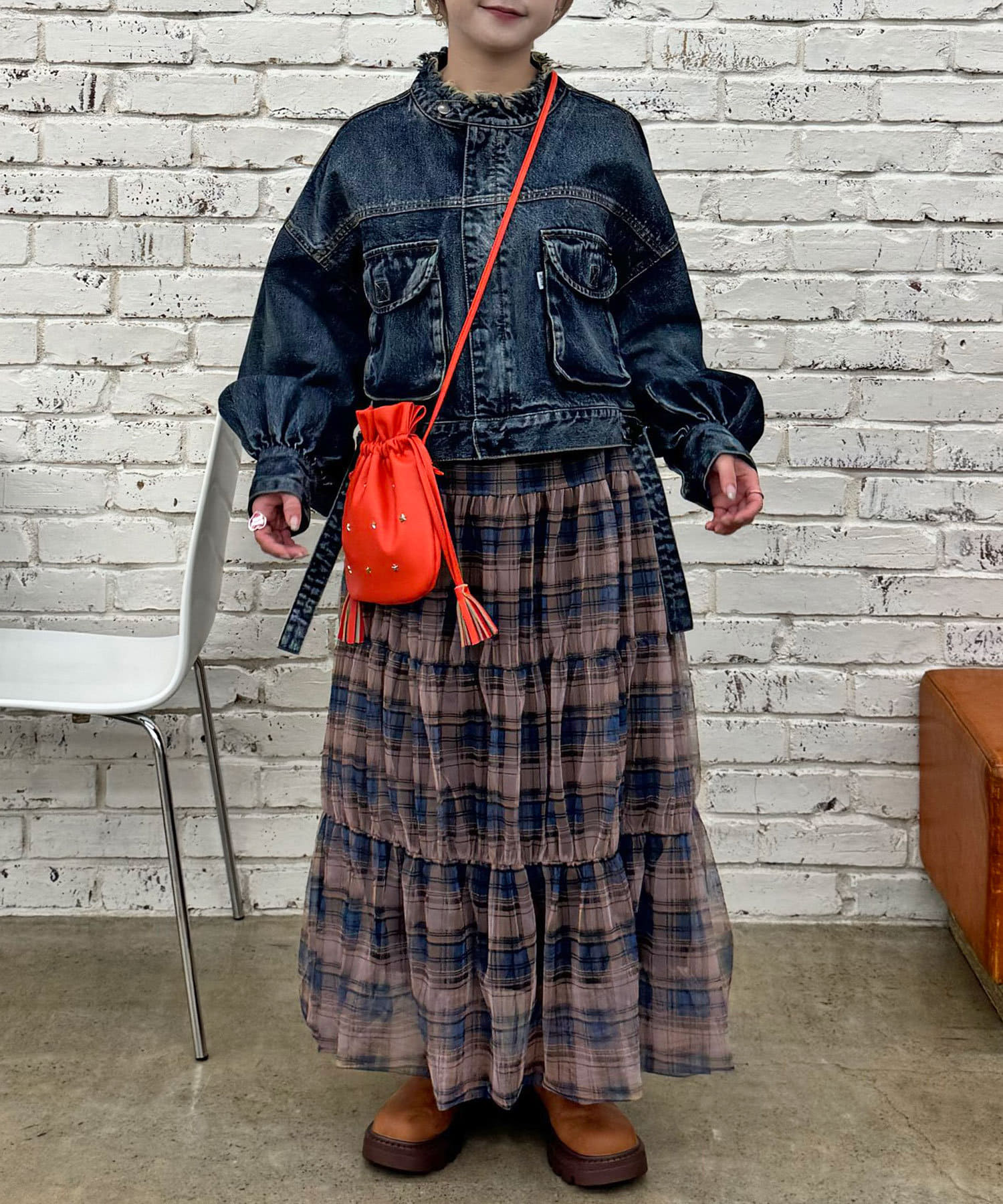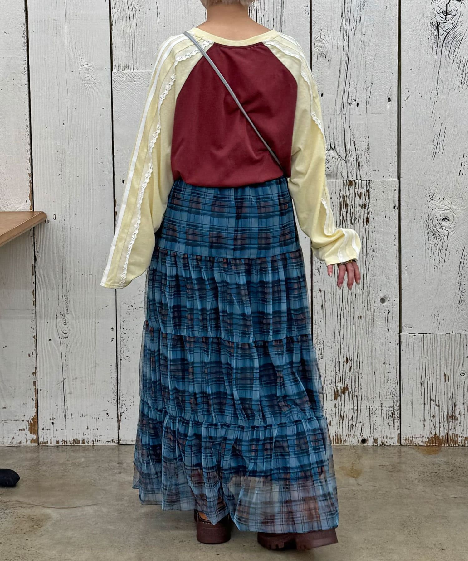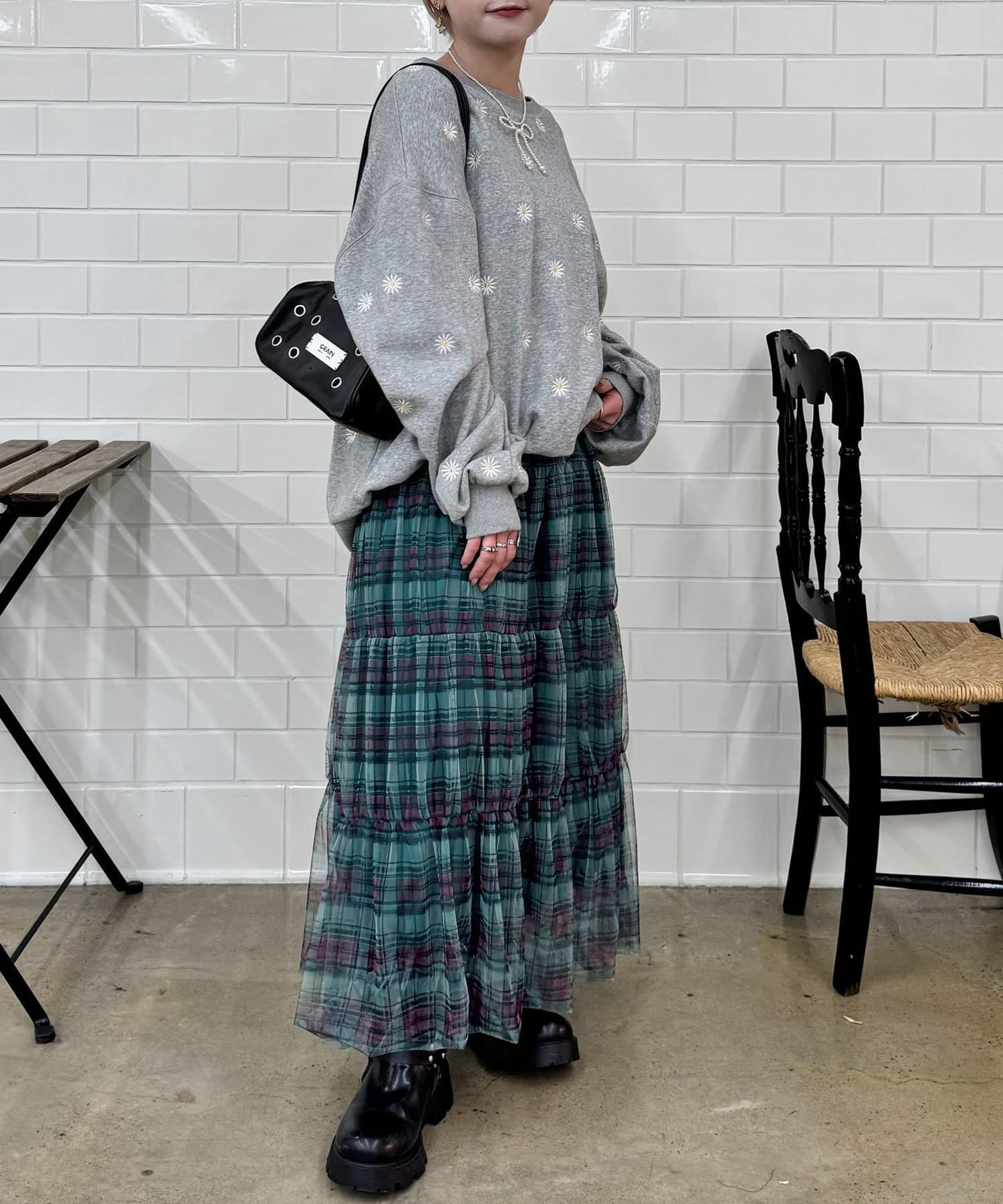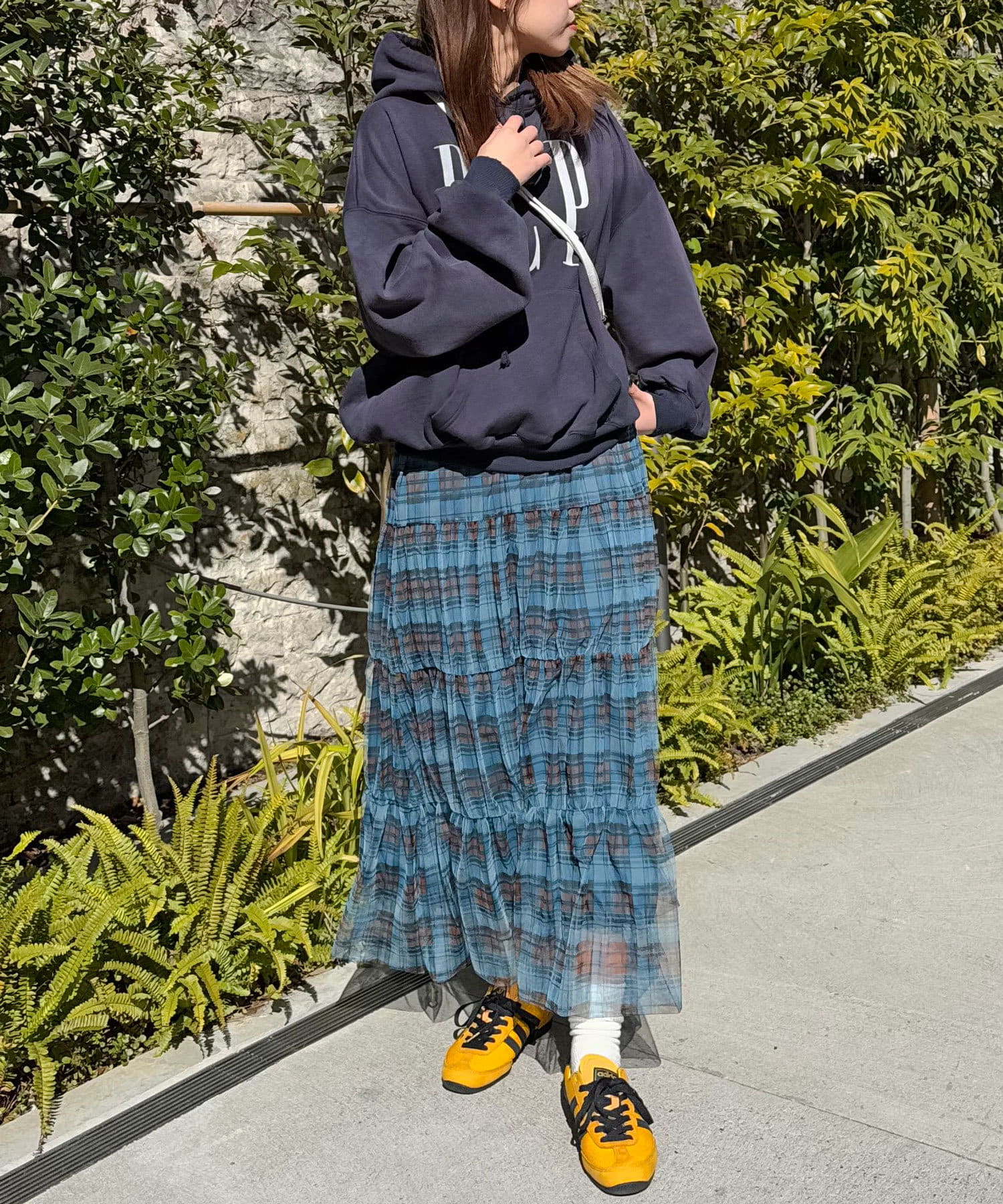 ふんわり広がるチュールティアードバルーンチェックスカート。