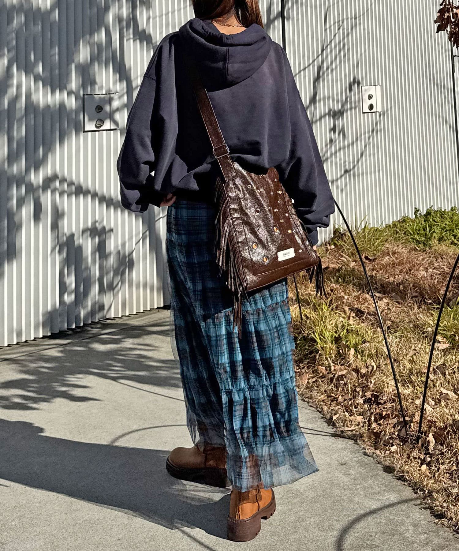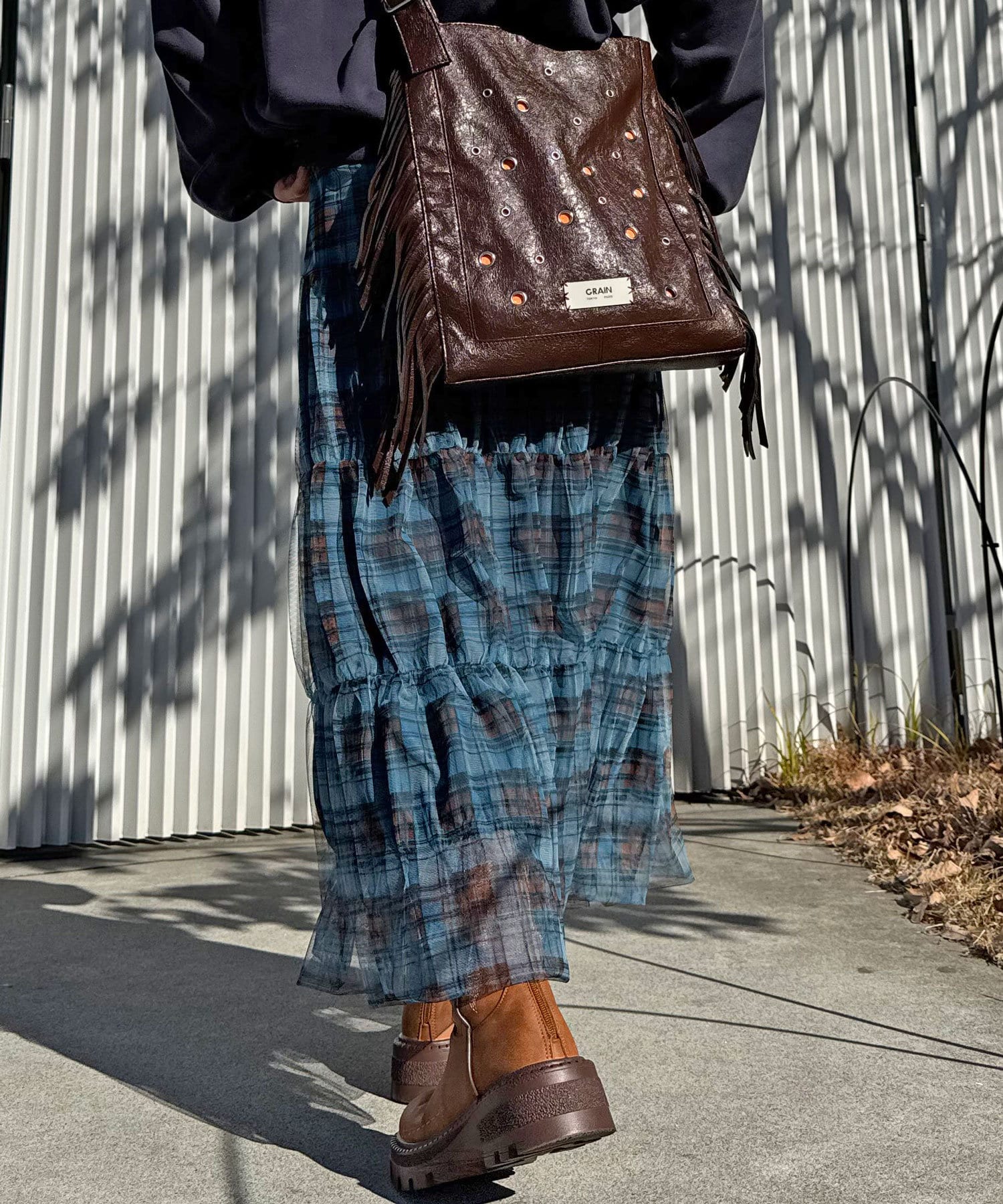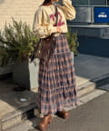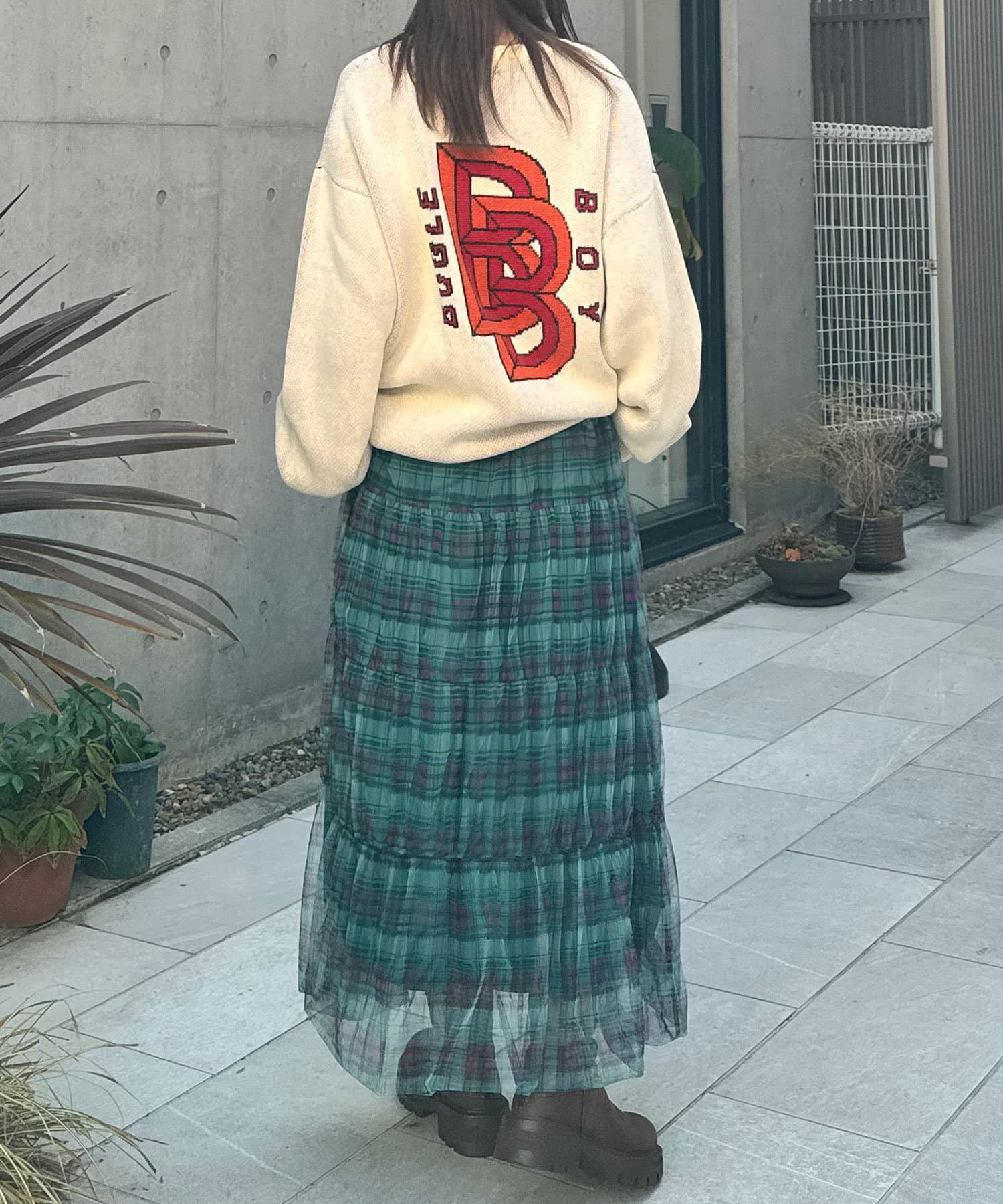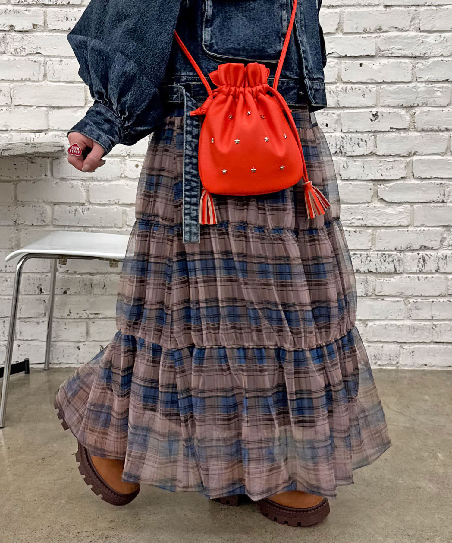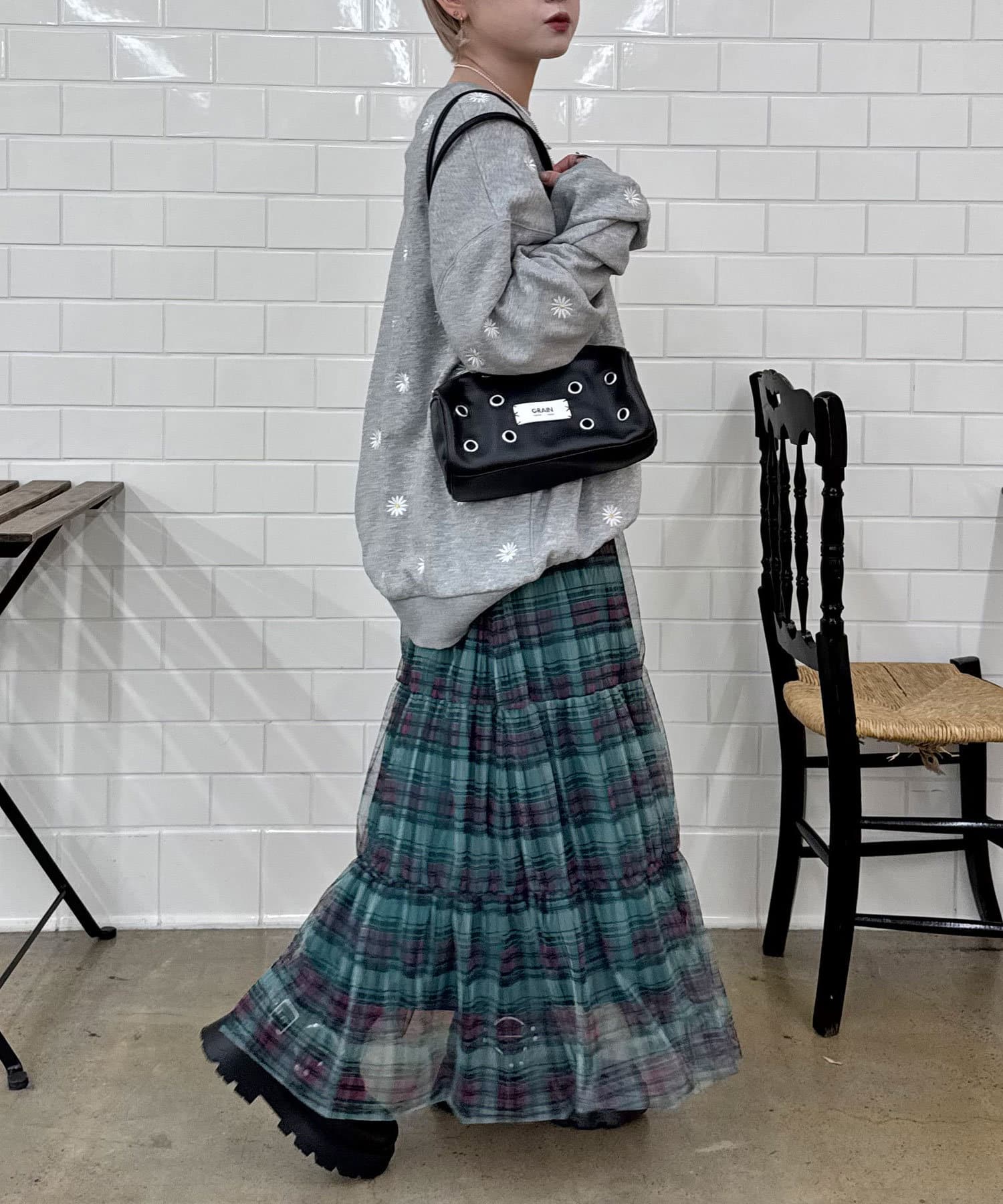 ふんわり広がるチュールティアードバルーンチェックスカート。