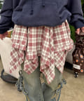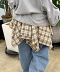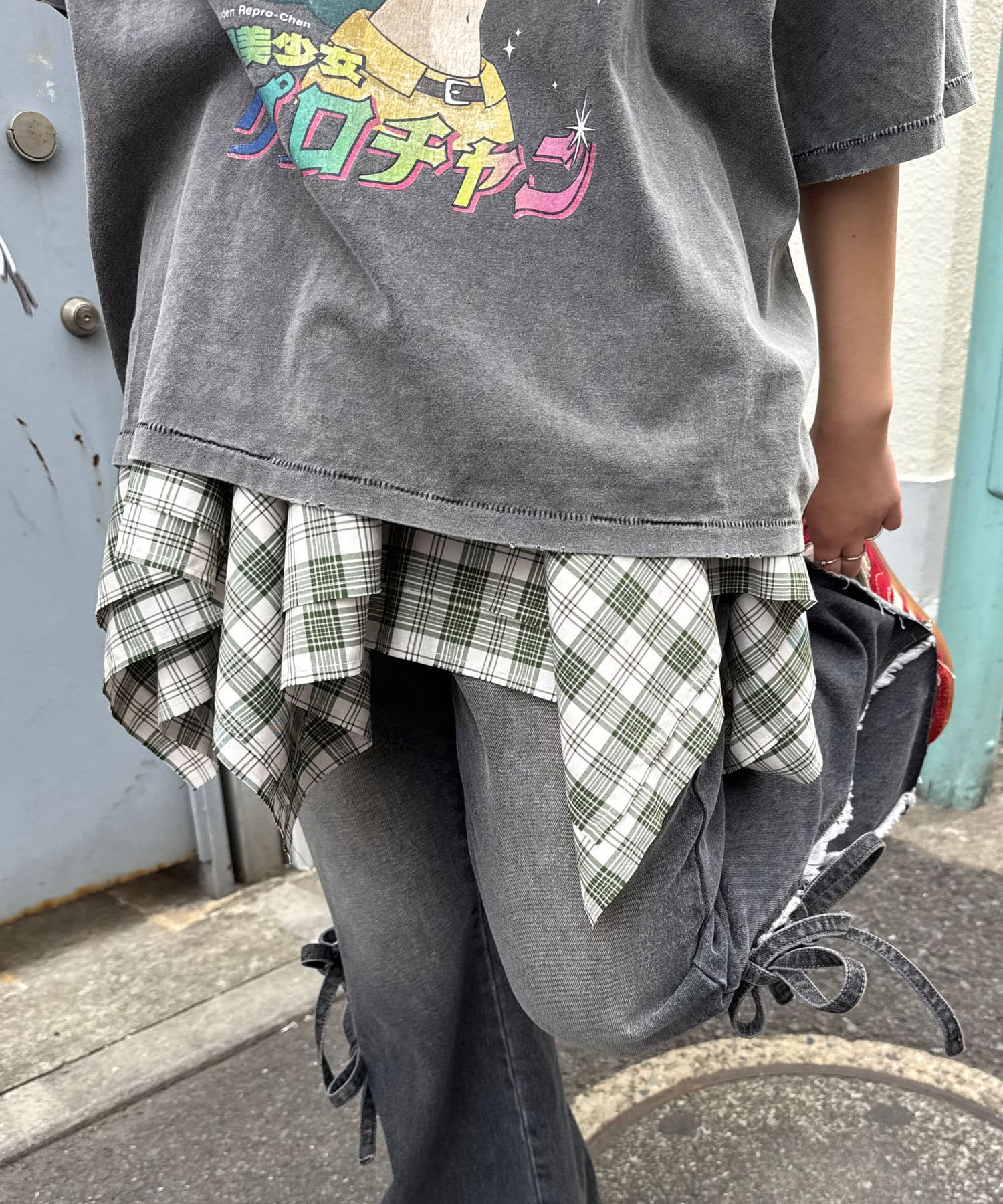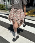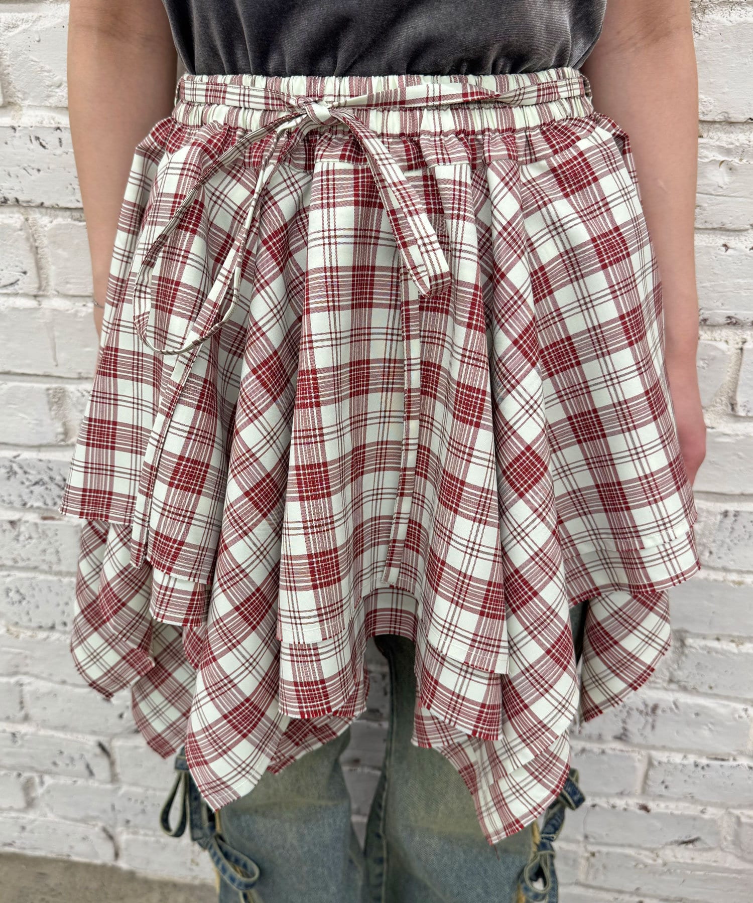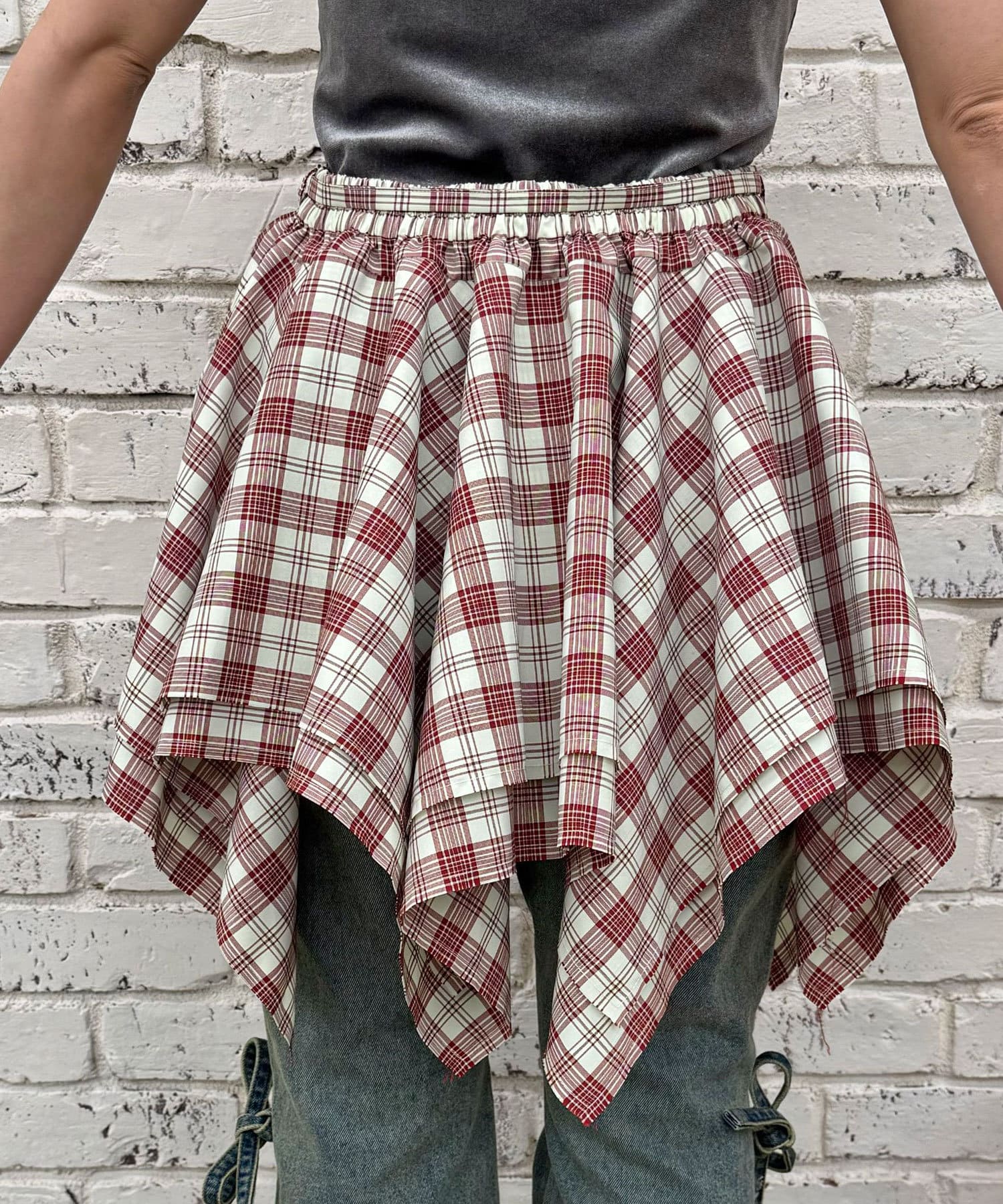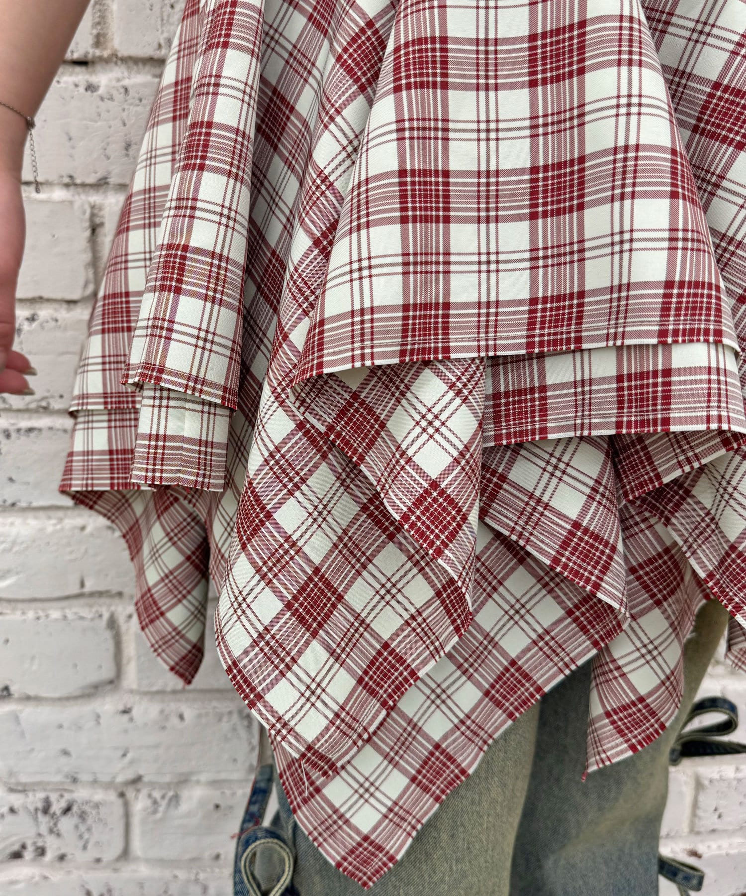 チェック柄と斜めにカットされたイレヘムデザインが、カジュアルだけどちょっと差をつけるスタイルに仕上げてくれます。