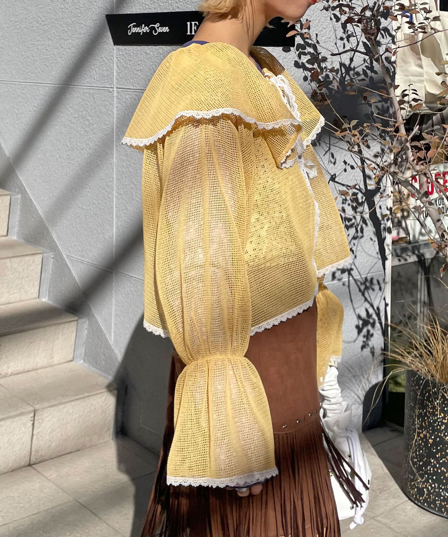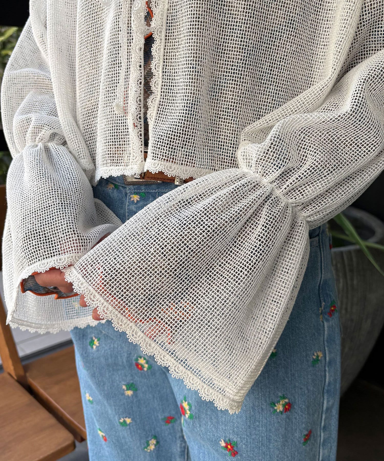 トレンドの透け感が楽しめるメッシュ素材のレースボレロブラウスが登場!