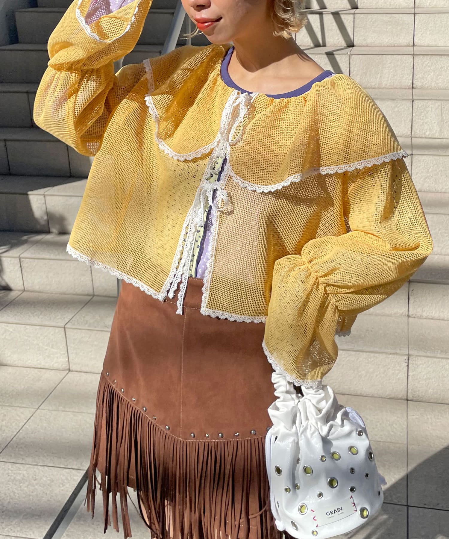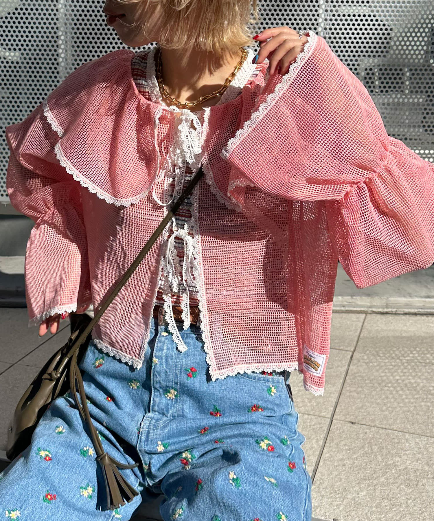 「可愛い」と「おしゃれ」を両立!メッシュレースボレロブラウス