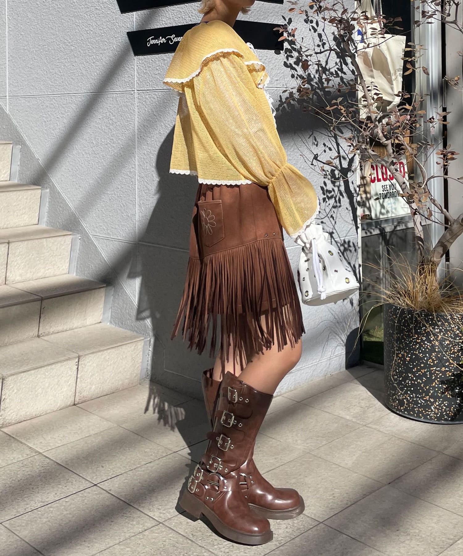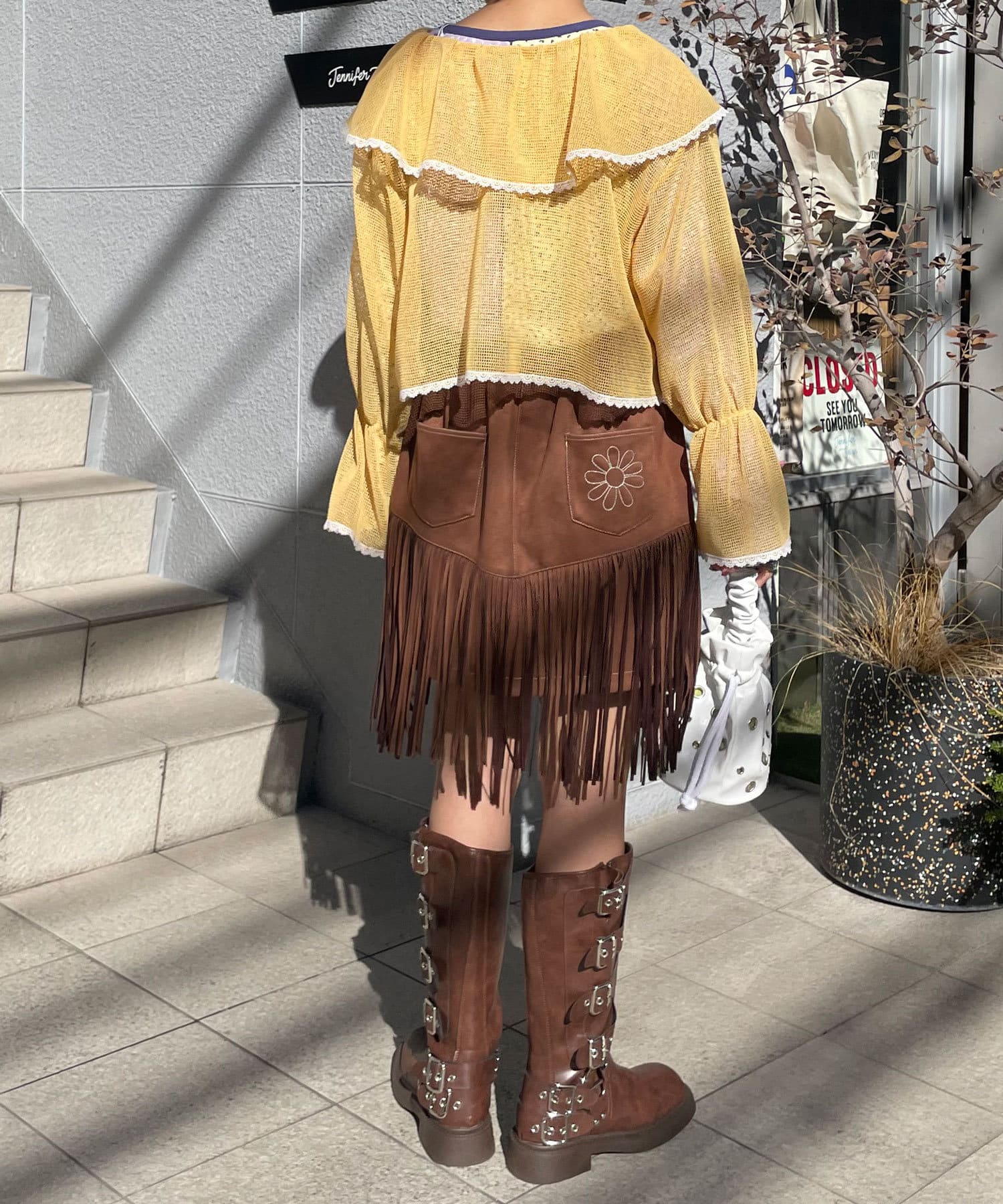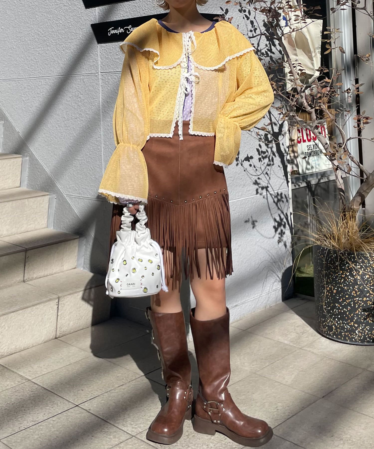 ブラウスやキャミソールとレイヤードするだけで、おしゃれ上級者に。