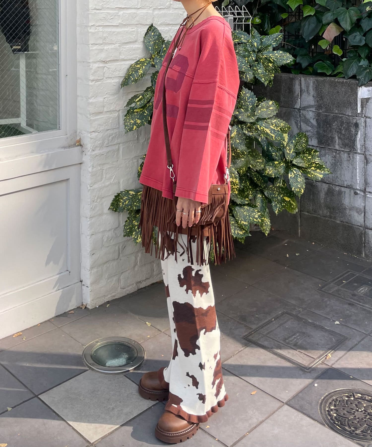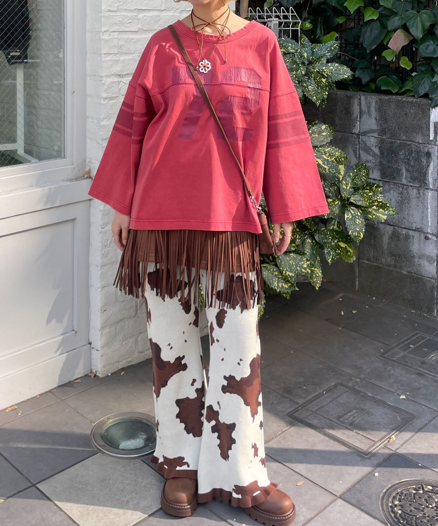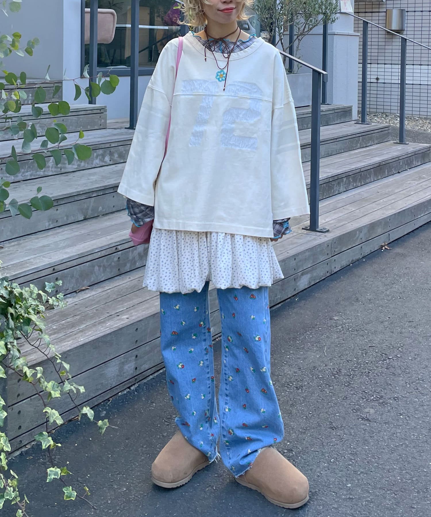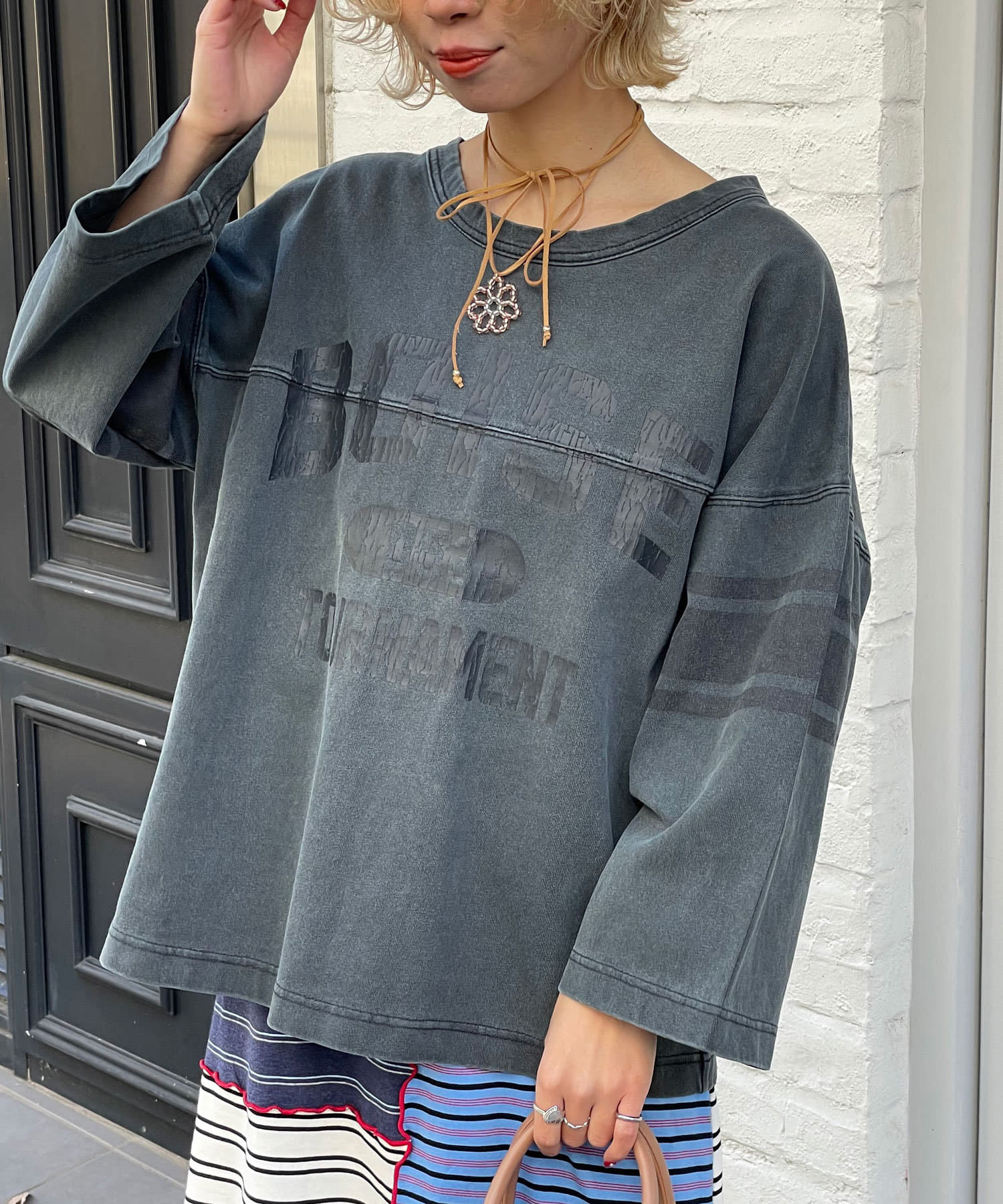 フェード感のあるカラーとロゴプリントが、カジュアルコーデに遊び心をプラス。