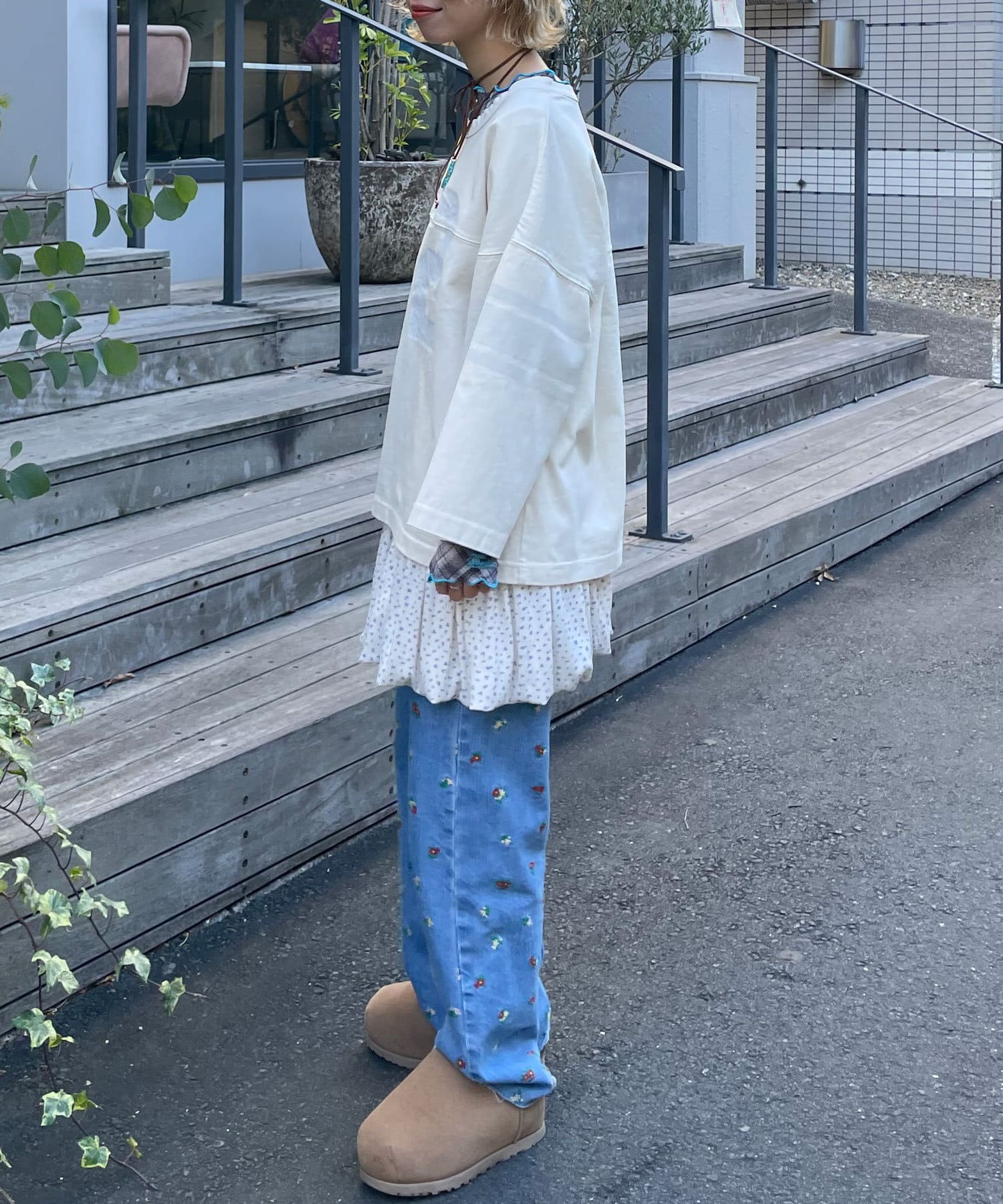 デニムやカーゴパンツを合わせたアメカジスタイルがおすすめ。