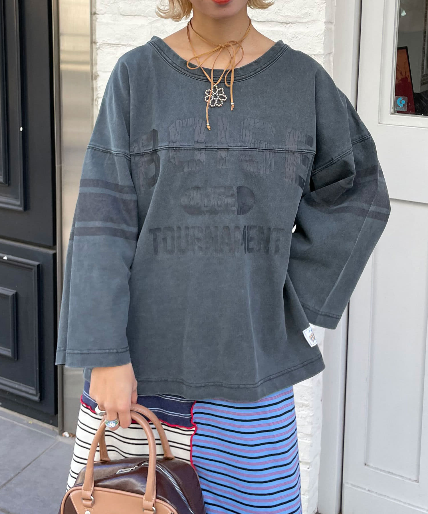 アメカジスタイルに欠かせない、フットボールシャツ風のトップスが登場。