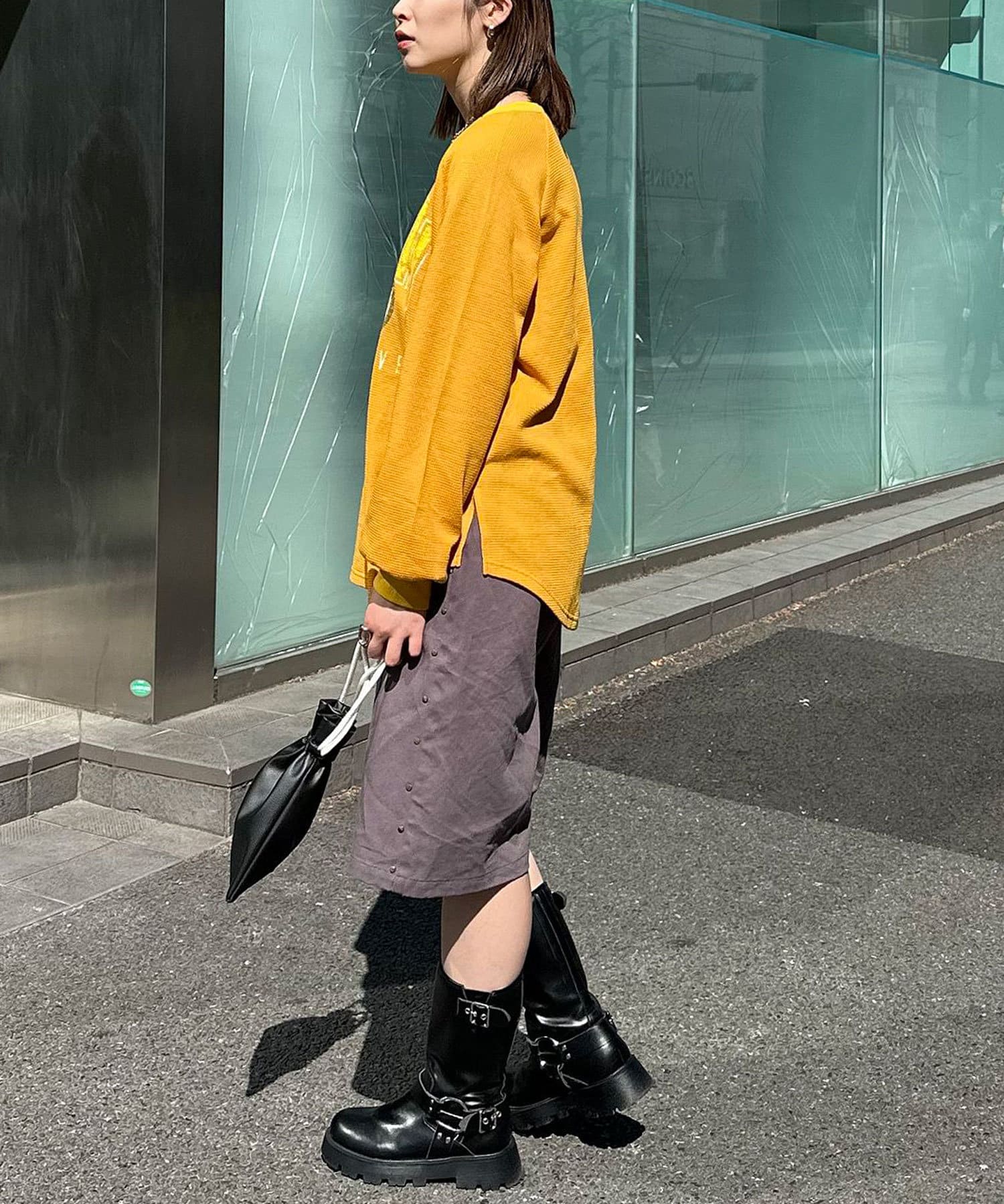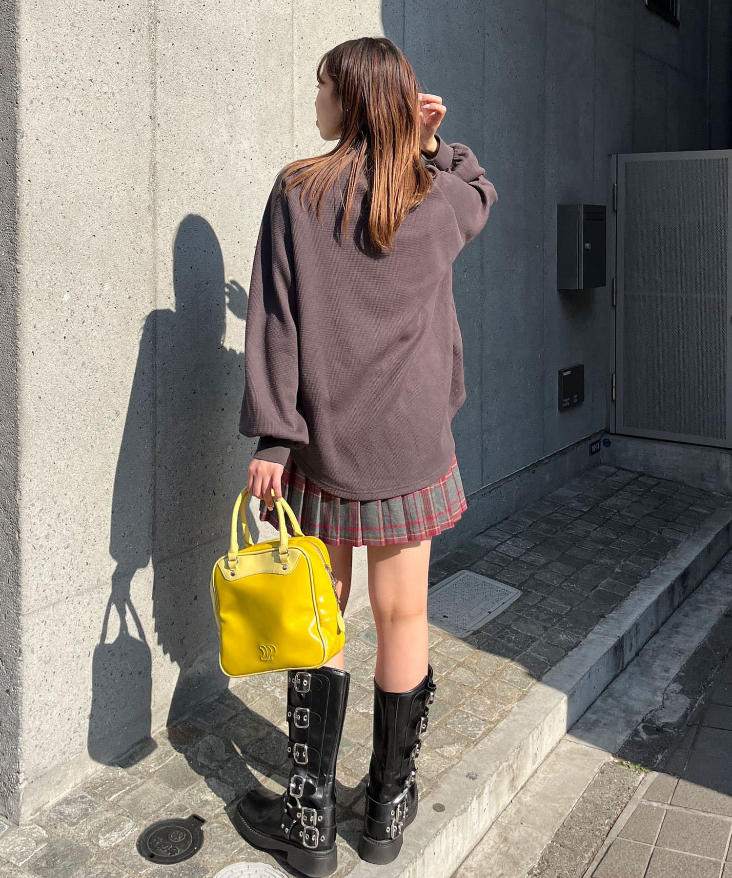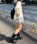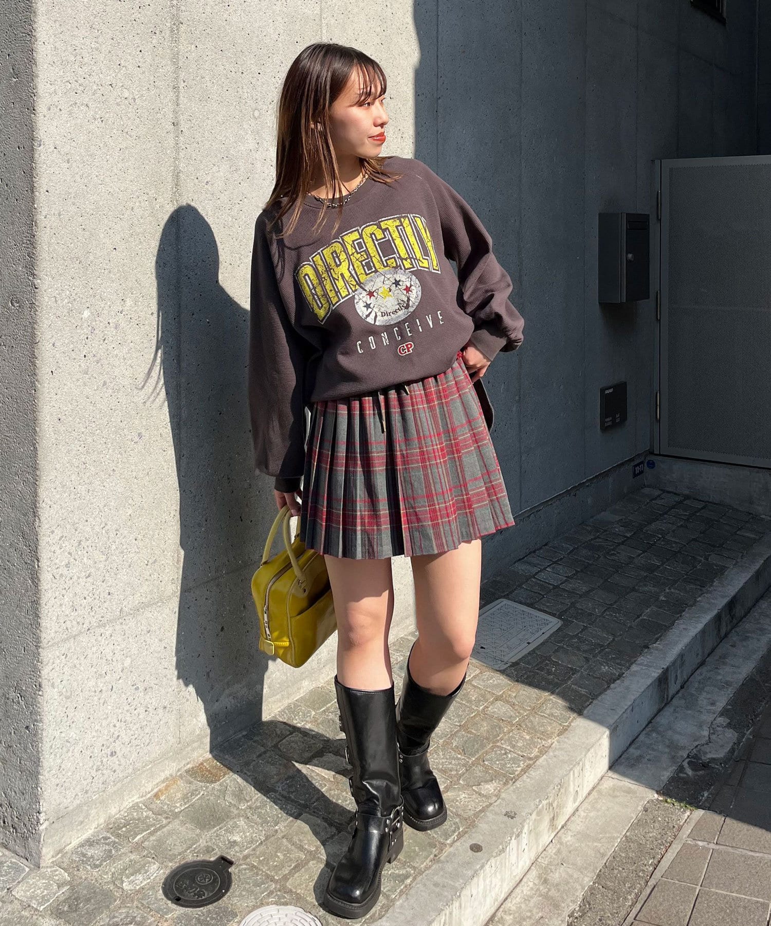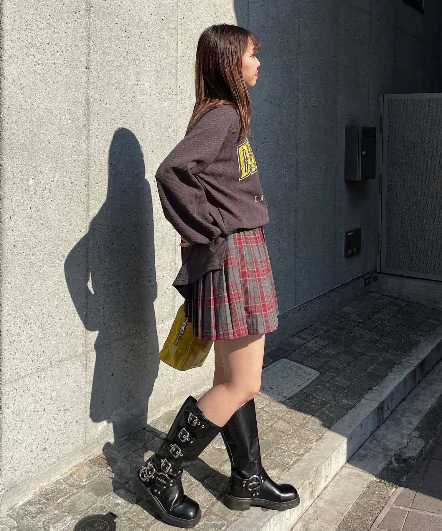 プリーツスカートやブーツを合わせれば、トレンド感のあるガーリーコーデが完成。