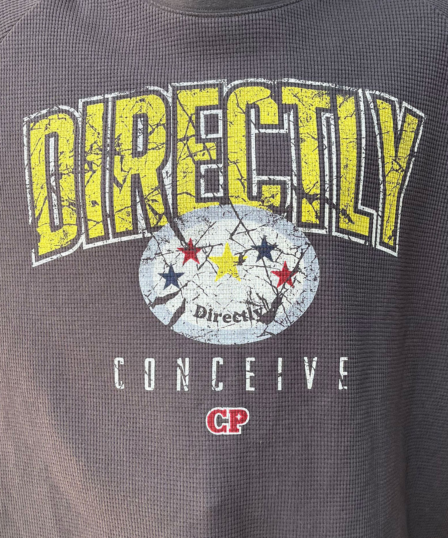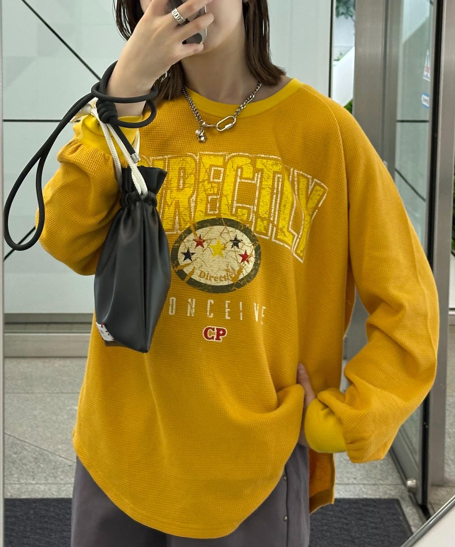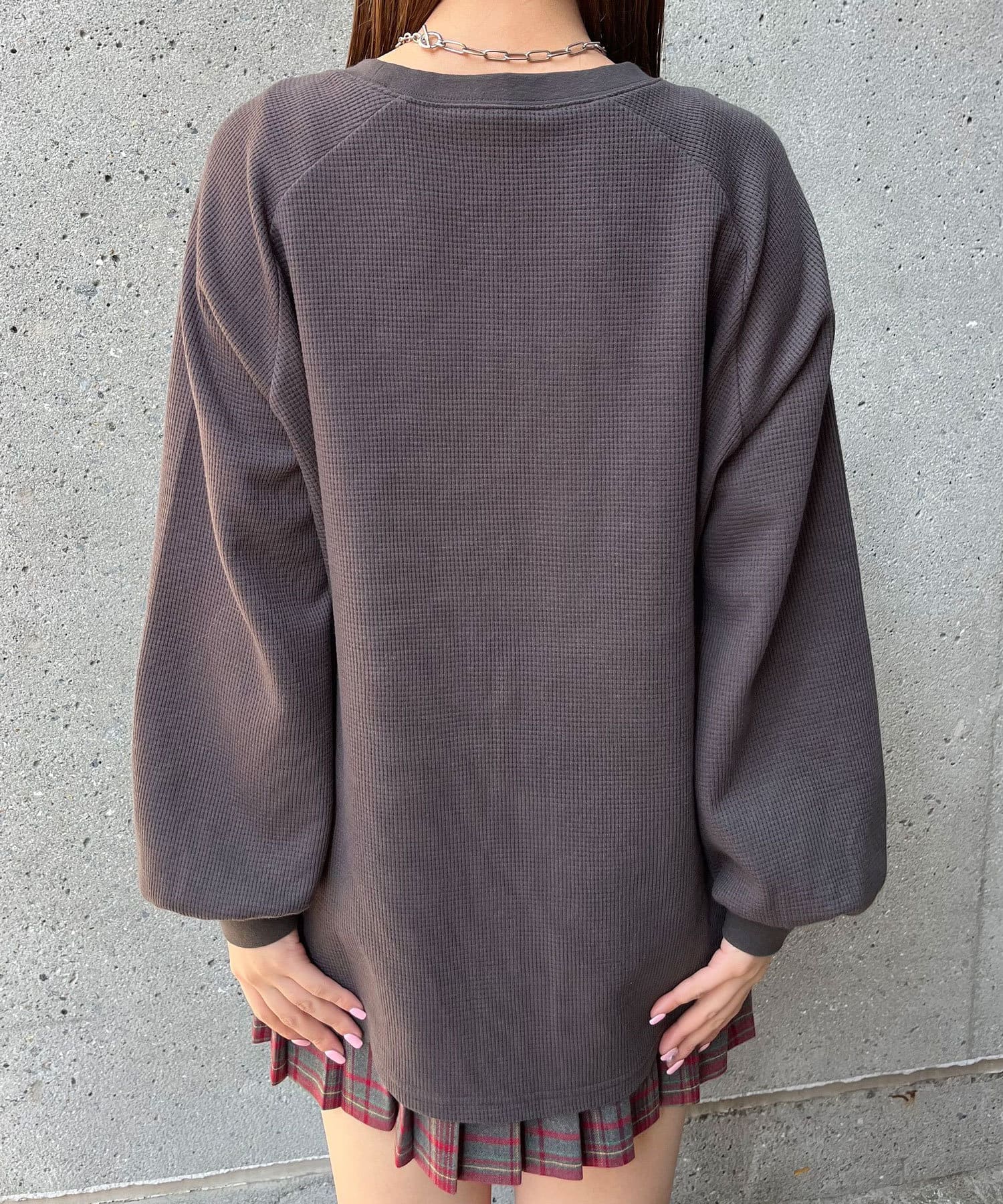 フロントの擦れプリントがレトロ可愛い!ワッフル素材のロンTが新登場!